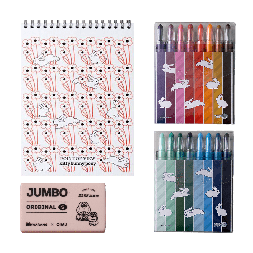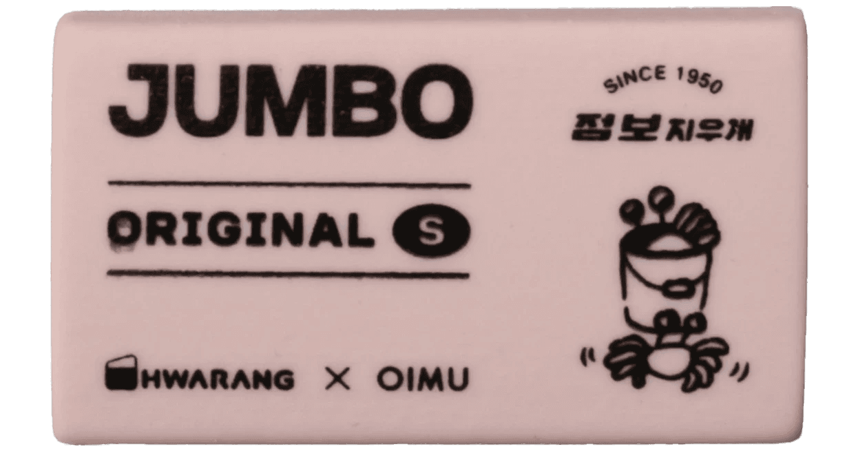 화랑고무의 디자인 유산을 오이뮤의 시선으로 재해석한 점보 오리지널 지우개요. 각기 다른 일러스트를 구경하는 것도 즐거워요.