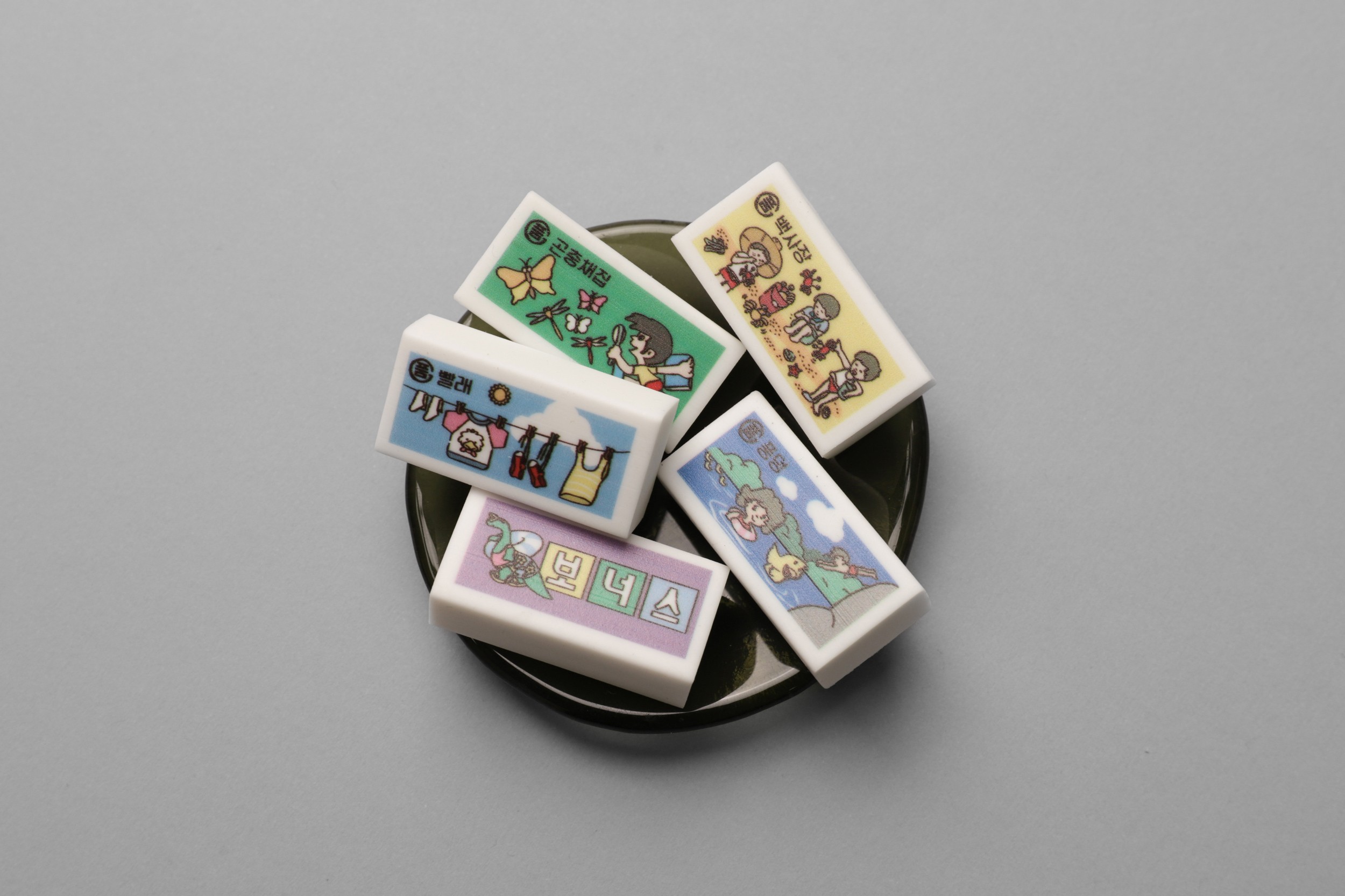 화랑고무의 점보 지우개가 가진 디자인 유산을 한 세대 더 이어 나가는데 집중했어요. 각기 다른 일러스트가 담긴 지우개를 하나씩 모으다 보면 수집의 가치도 느낄 수 있을 거예요.