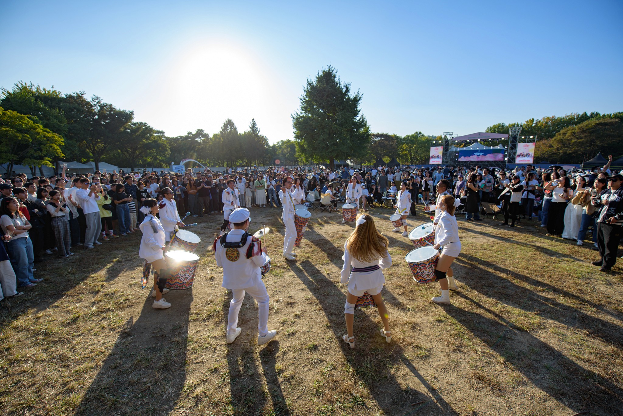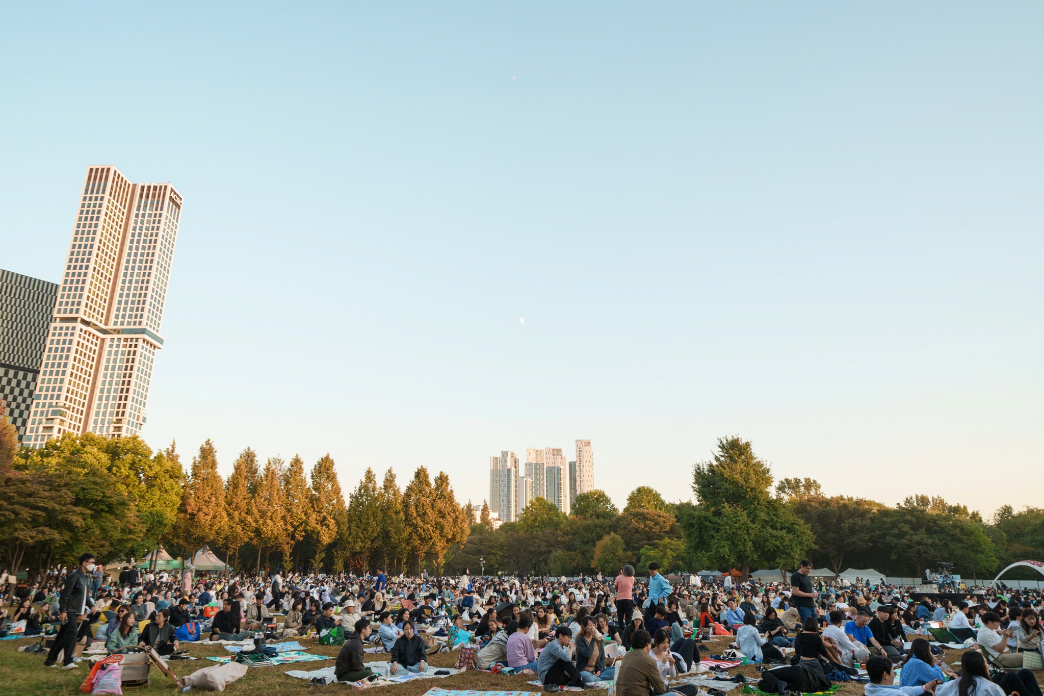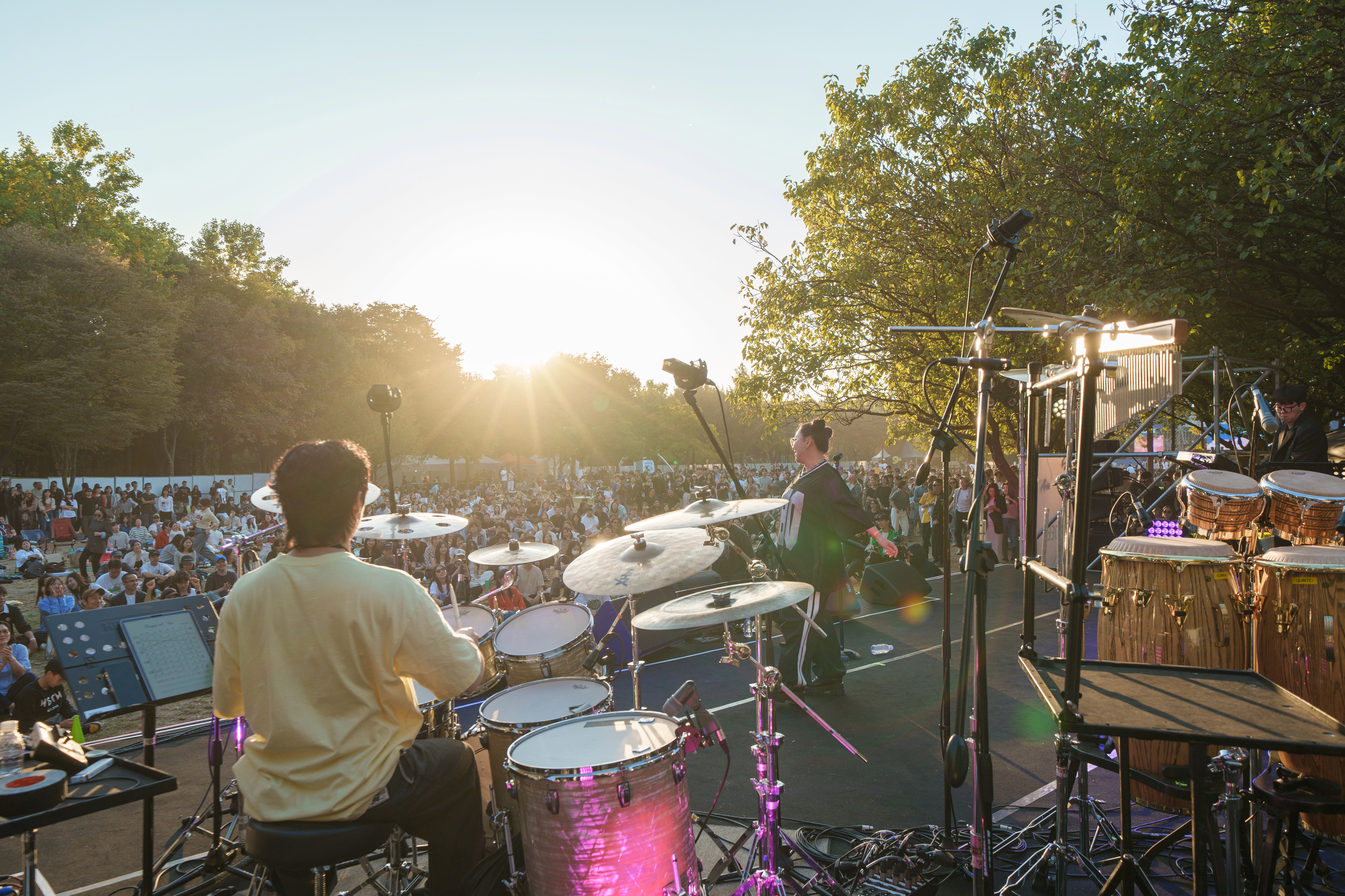 서울숲재즈페스티벌은 카메라만 들면 작품이 되는 자연이 만든 무대 위의 축제입니다. 사방이 풀로 뒤덮여 있고, 아늑한 서울숲만의 정취가 있죠. 도심 속 드물게 만나는 진짜 숲인 서울숲은 면적이 15만 평에 달하고 가을이면 붉게 물들어 더욱 아름다운 공간이에요. 저희 메인 스테이지 이름이 '선셋 포레스트' 인데요, 해질녘 메인 스테이지 뒤로 펼쳐지는 노을이 정말 아름다워요.