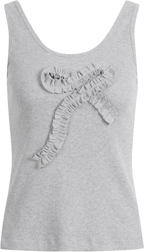 유니크한 리본 자수 디테일의 슬리브리스 티셔츠