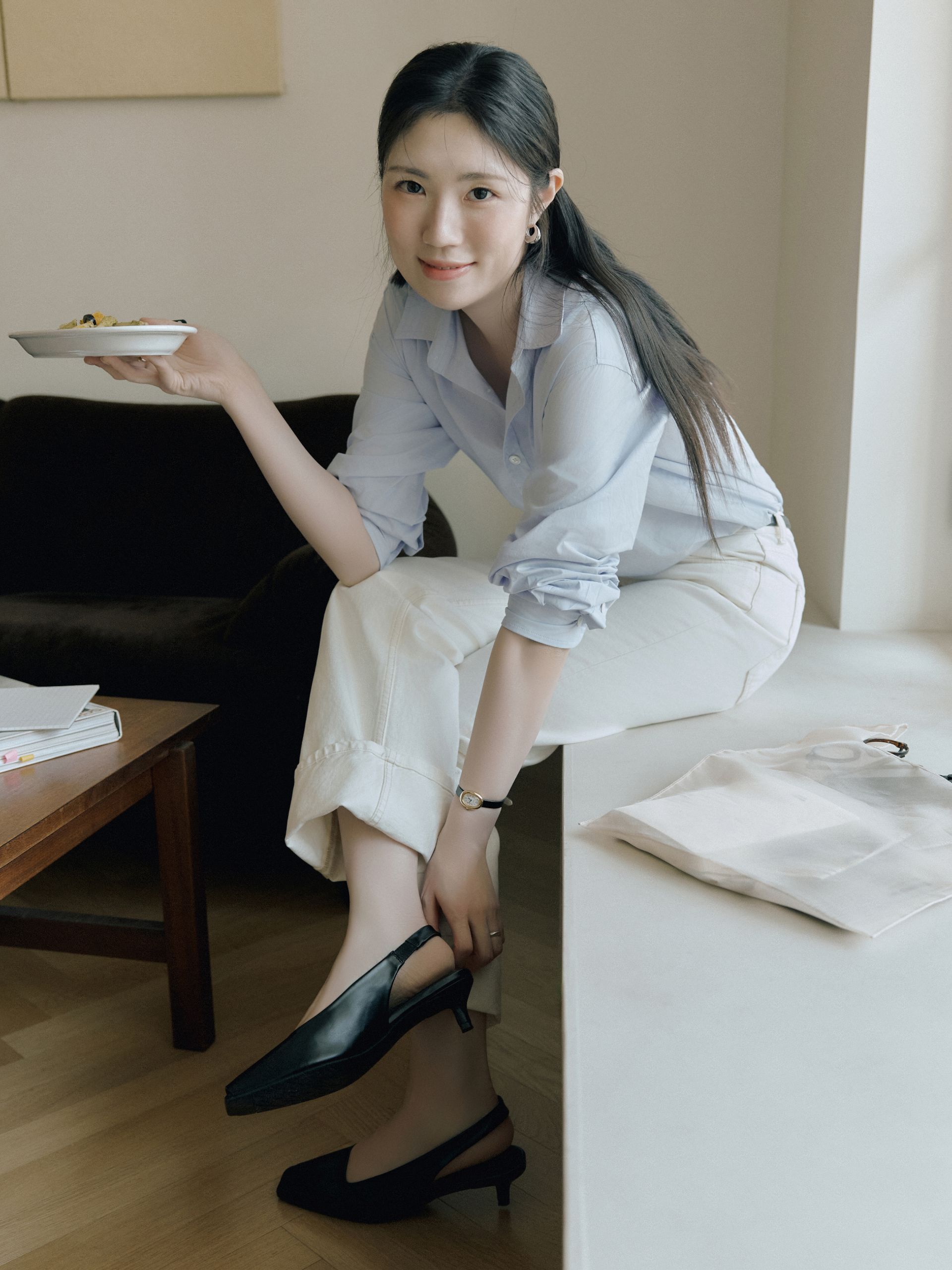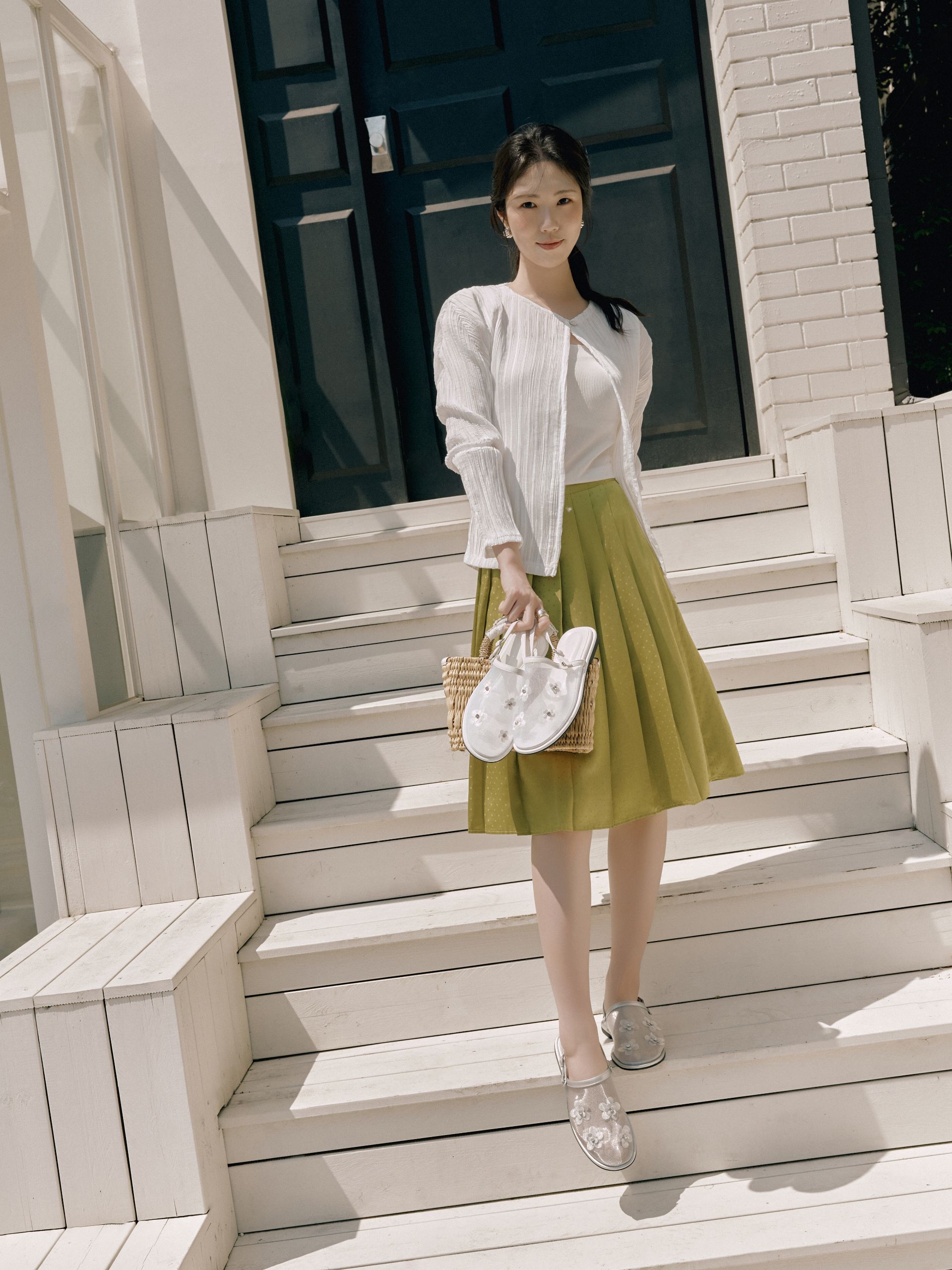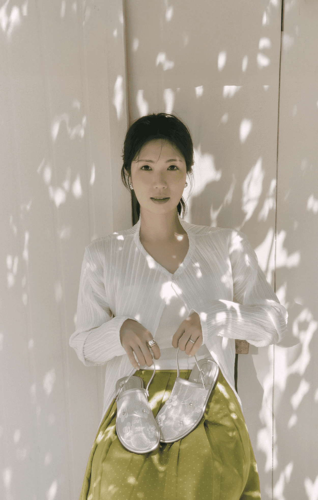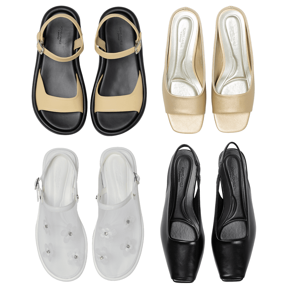 여름 컬렉션인 만큼 데일리룩은 물론 휴양지에서도 어울리는 아이템들로 구성했어요. 2000년대 감성을 담은 클래식 디자인의 크루도 뮬은 룩의 완성도를 높여주고, 자르딘 플로르 샌들은 발끝까지 사랑스럽게 연출되어서 특히 애정하는 아이템이에요.