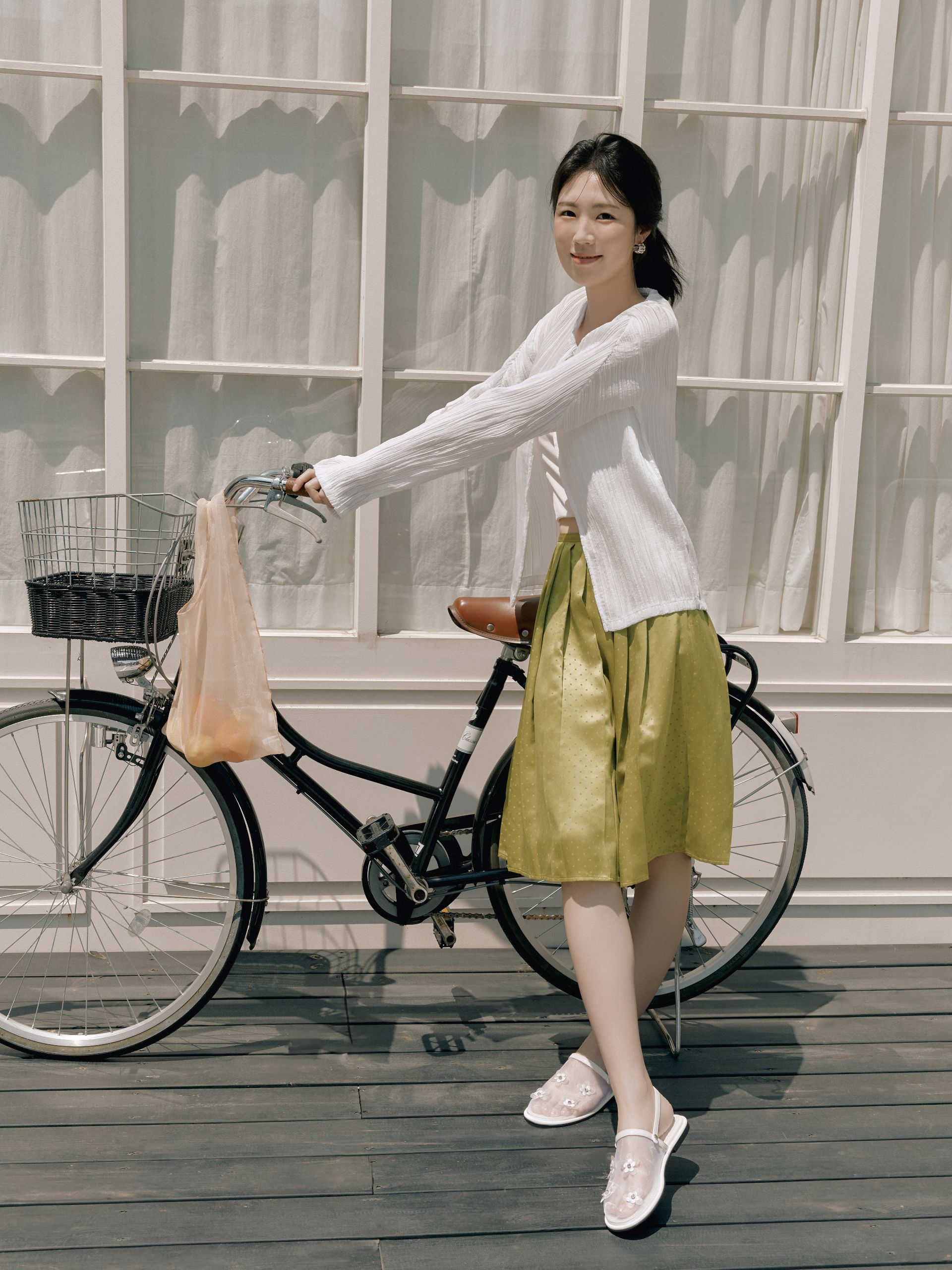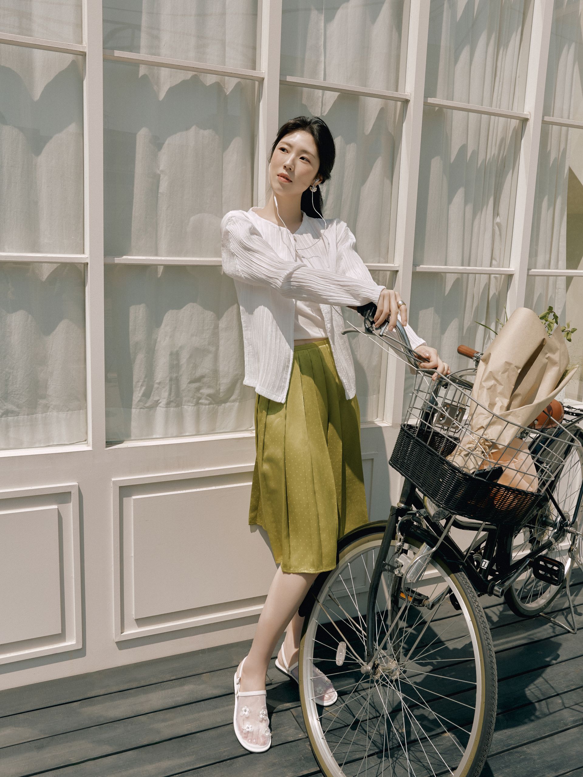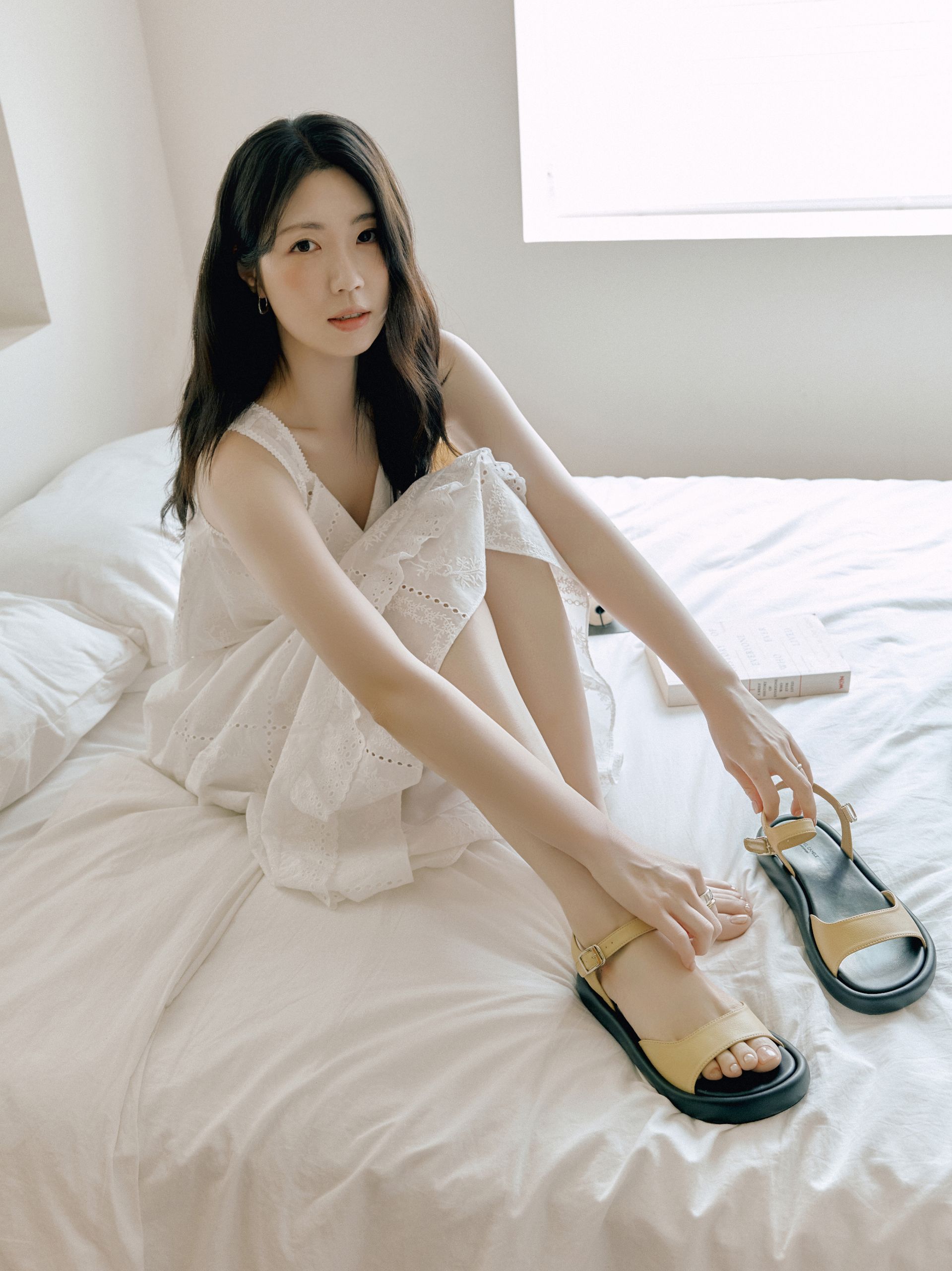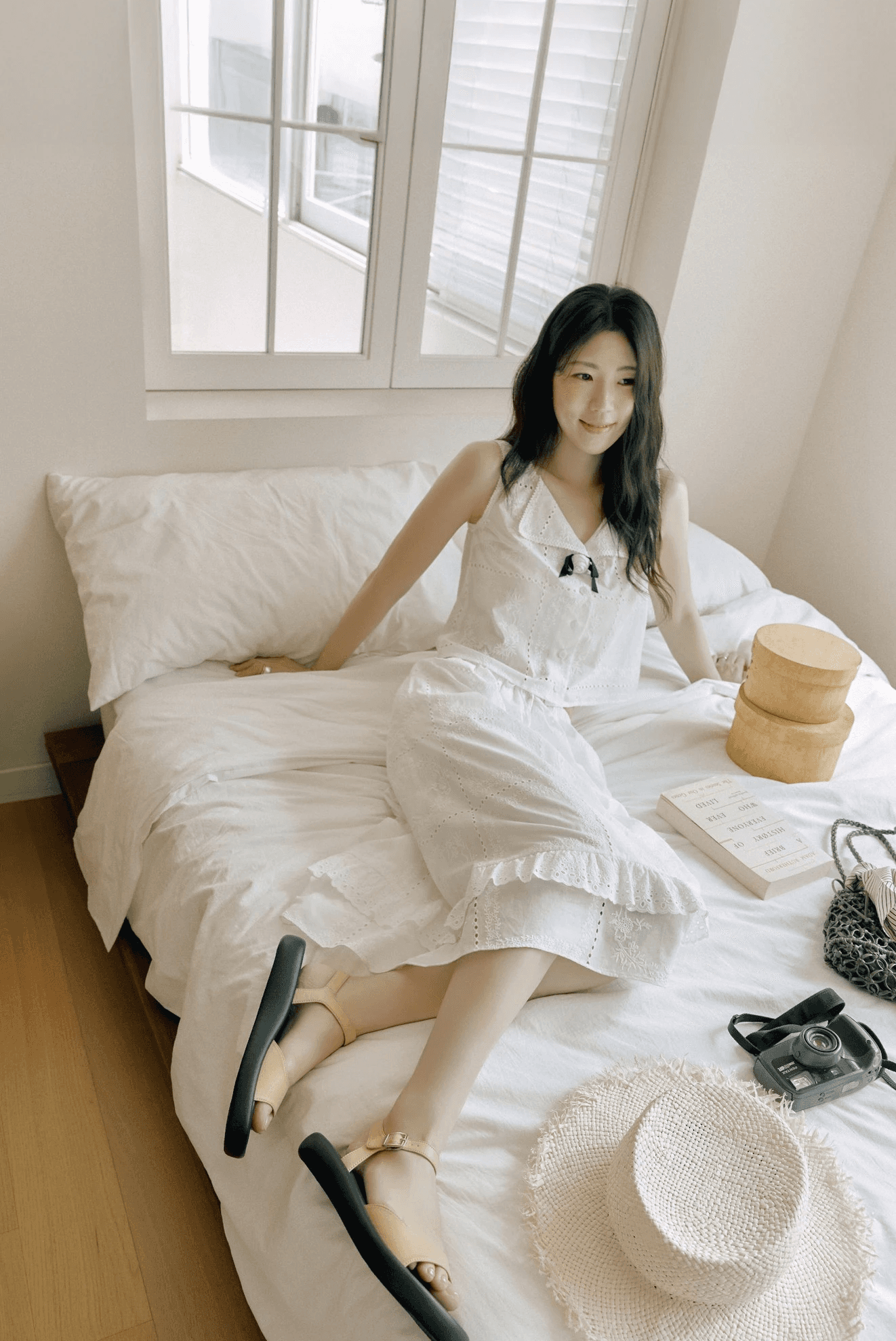 여름 컬렉션인 만큼 데일리룩은 물론 휴양지에서도 어울리는 아이템들로 구성했어요. 2000년대 감성을 담은 클래식 디자인의 크루도 뮬은 룩의 완성도를 높여주고, 자르딘 플로르 샌들은 발끝까지 사랑스럽게 연출되어서 특히 애정하는 아이템이에요.