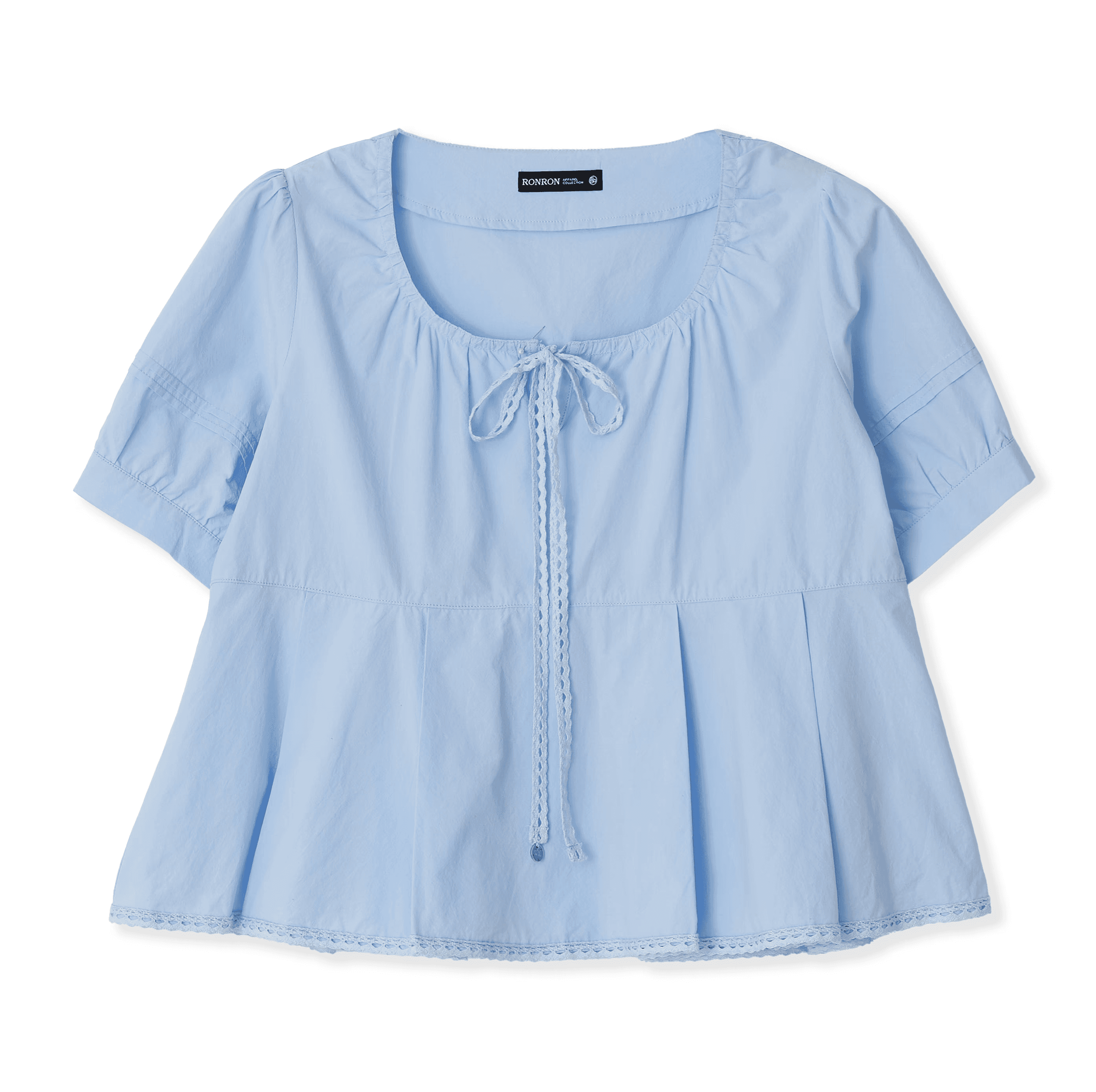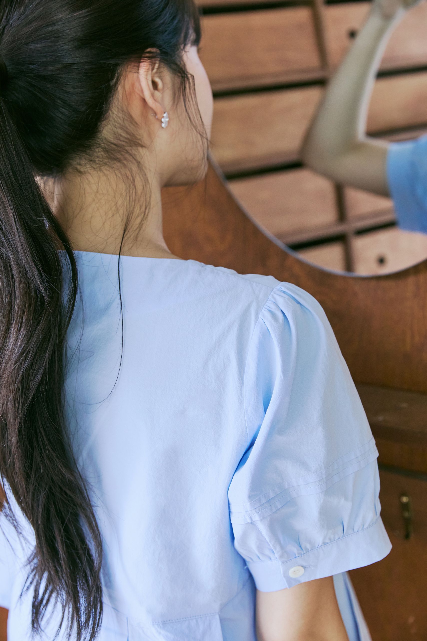 여러 디테일이 돋보이는 스퀘어넥 블라우스