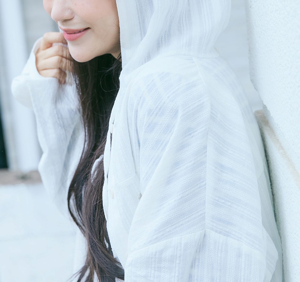 시스루 소재로 가볍게 걸치기 좋은 후드 블라우스