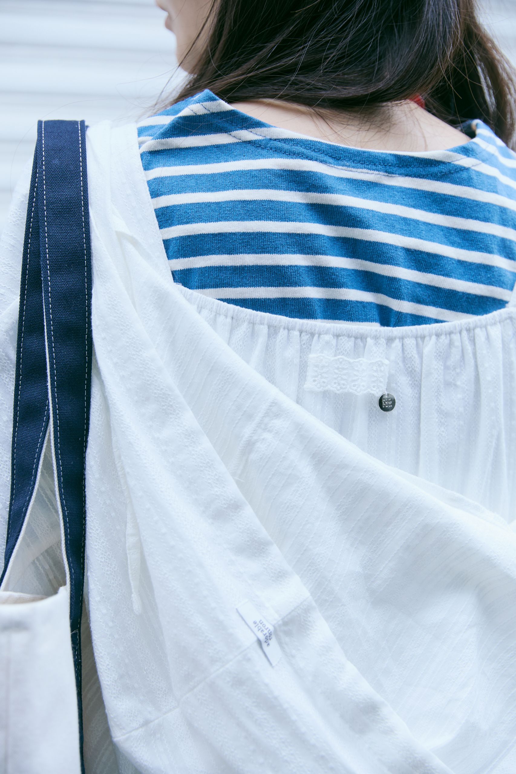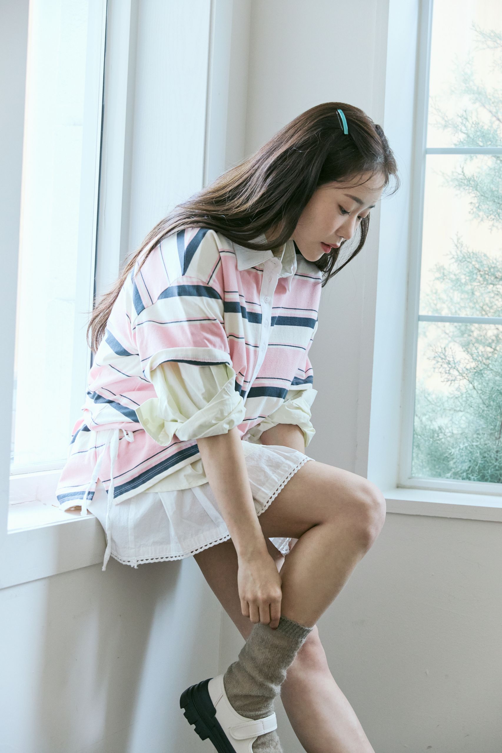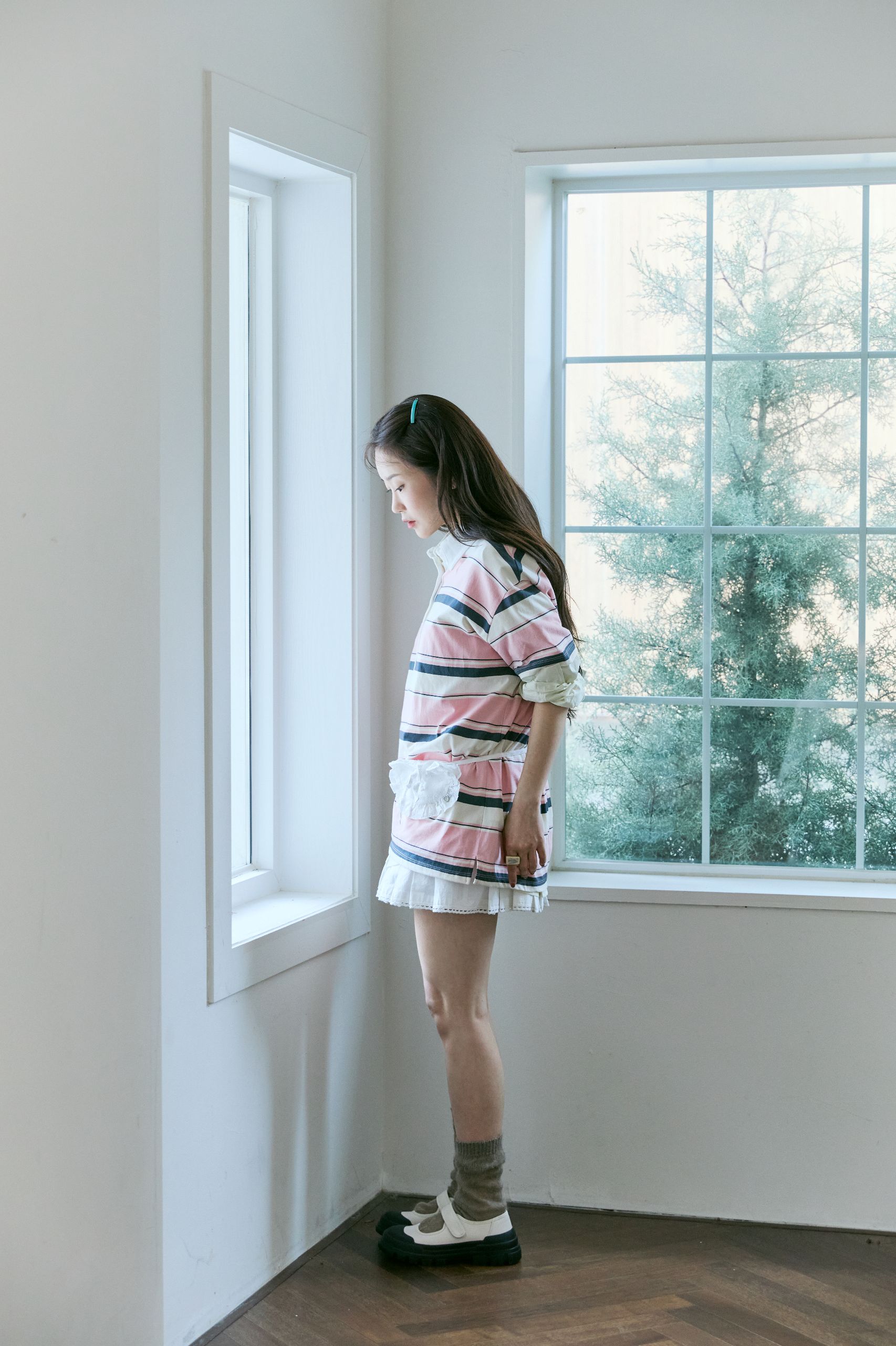 '영원한 소녀'라는 테마 아래, 시간이 지나도 변치 않고 간직되는 순수하고 사랑스러운 감성을 담아내는데 집중했어요. 아일렛 원단과 러플 디테일 등 로맨틱한 요소들을 활용하면서도, 캐주얼하게도 연출할 수 있도록 실루엣에 차별점을 두었습니다.