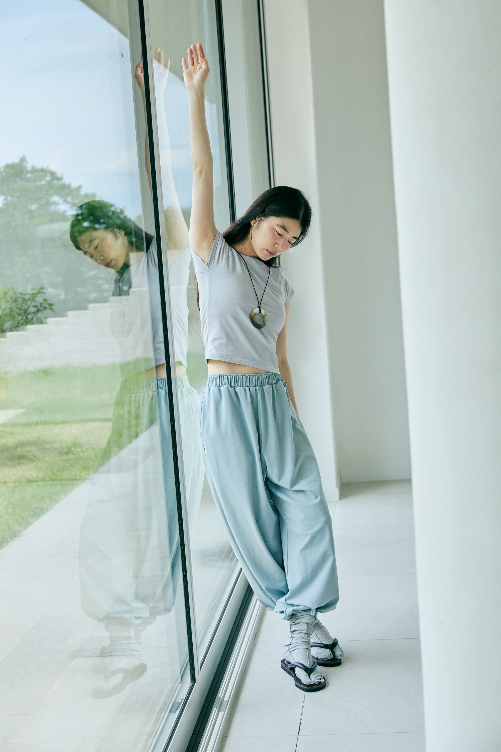 가벼운 착용감과 은은한 광택을 자랑하는 FLOWING PANTS를 추천해요. 요즘처럼 습도가 높은 날씨에 알맞은 제품이에요. 무엇보다 건조가 빨라 세탁이 잦은 여름철에 특히 실용적입니다.