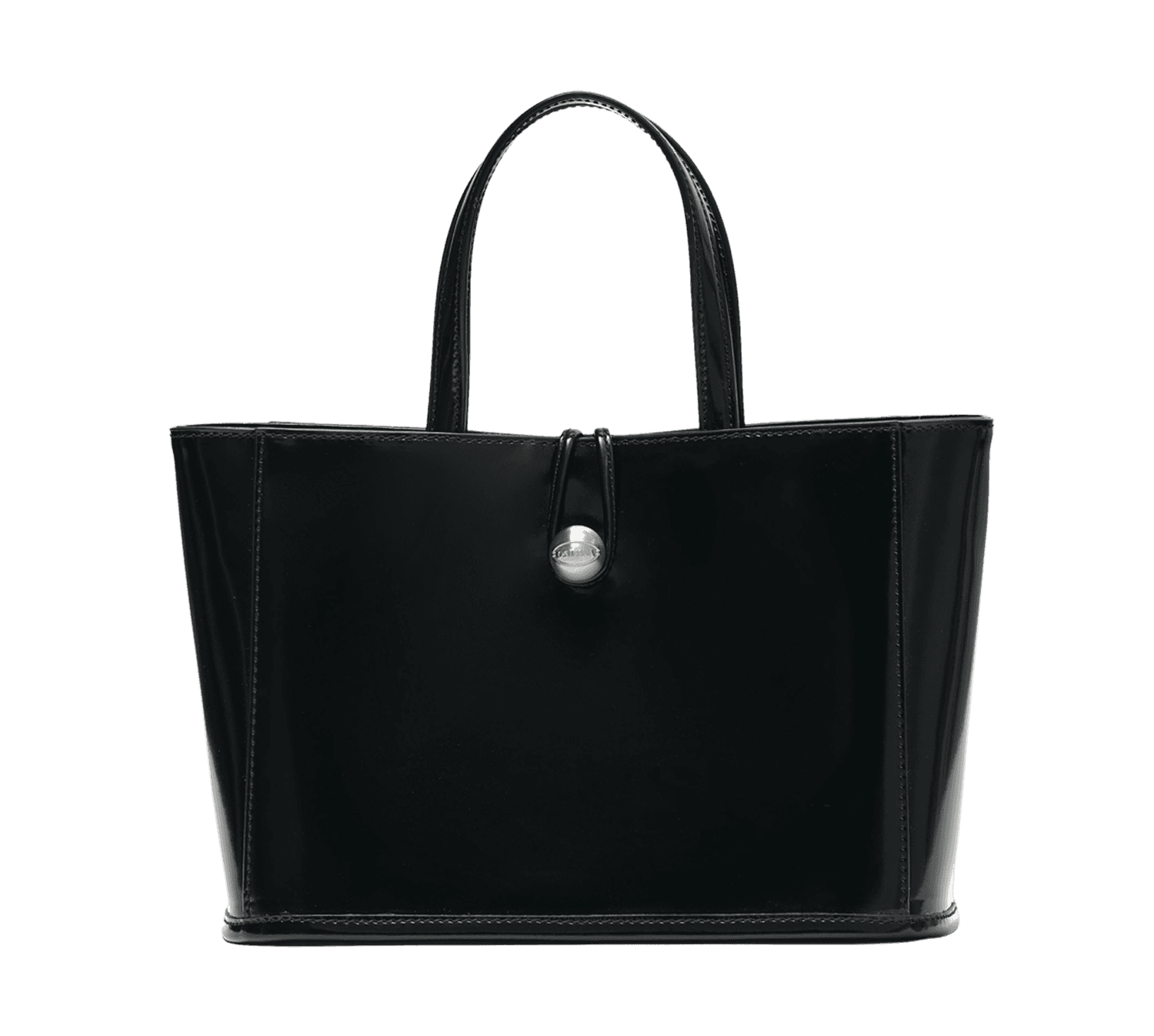 복스 가죽과 빈티지한 로고 볼 장식의 토트백