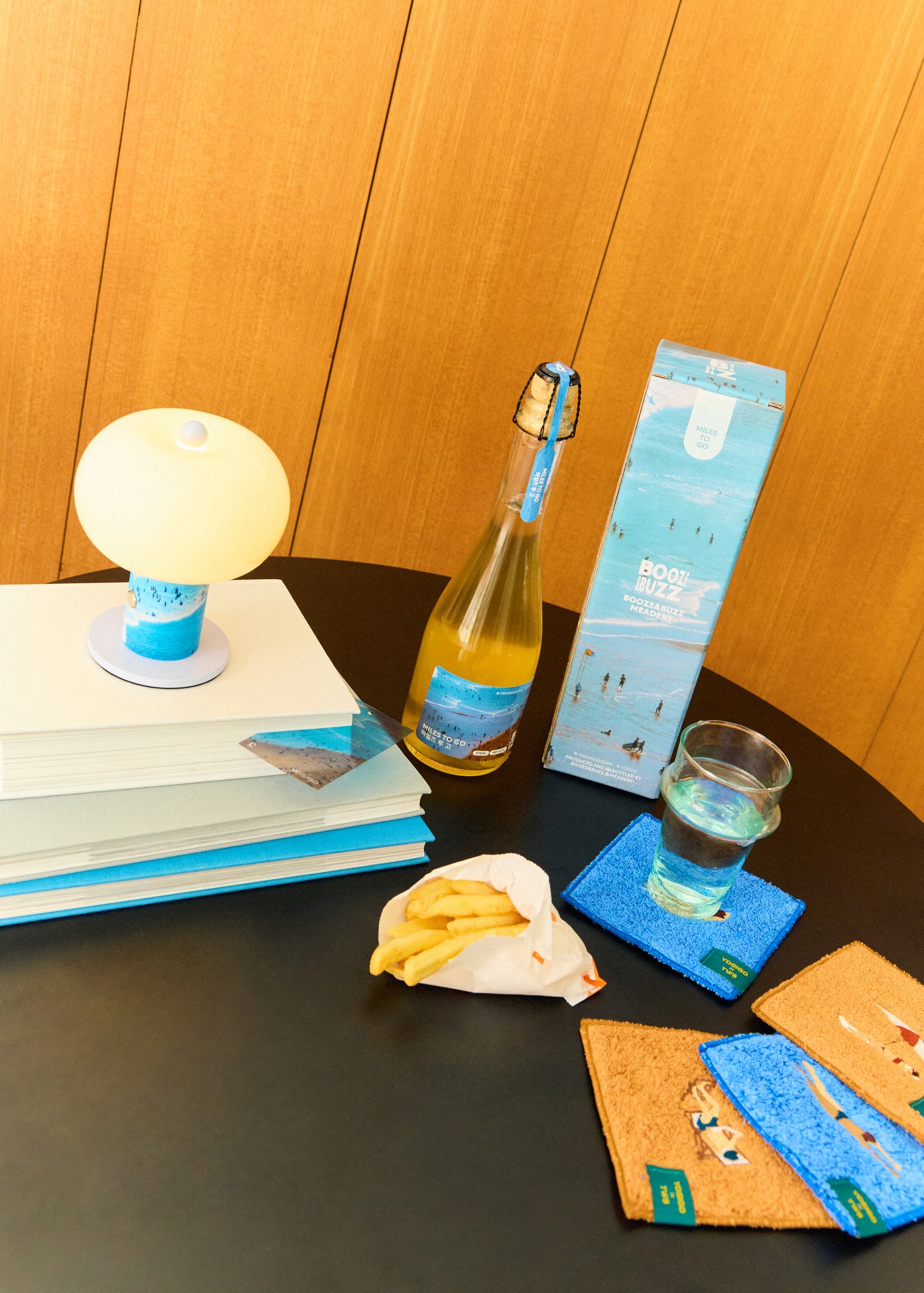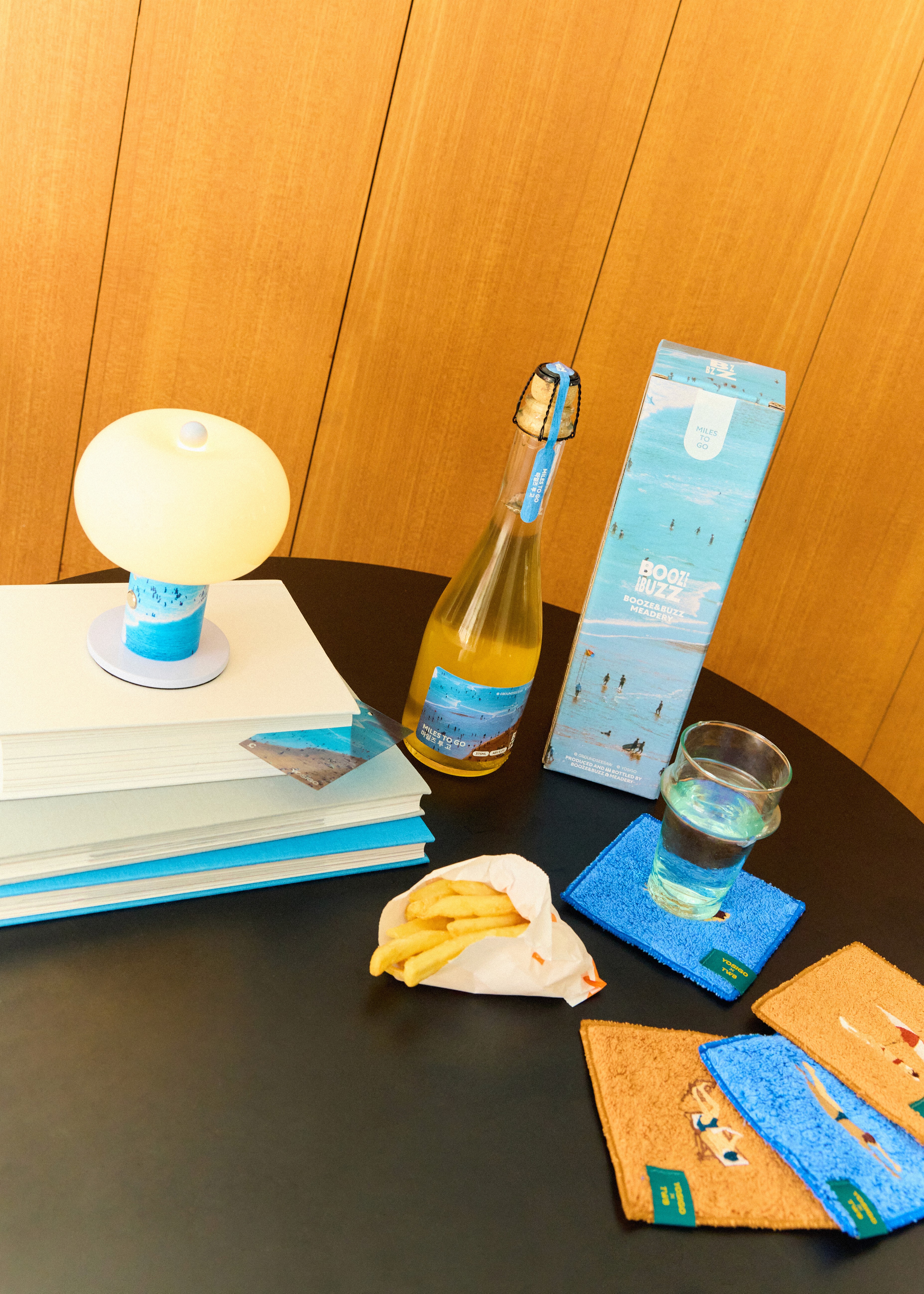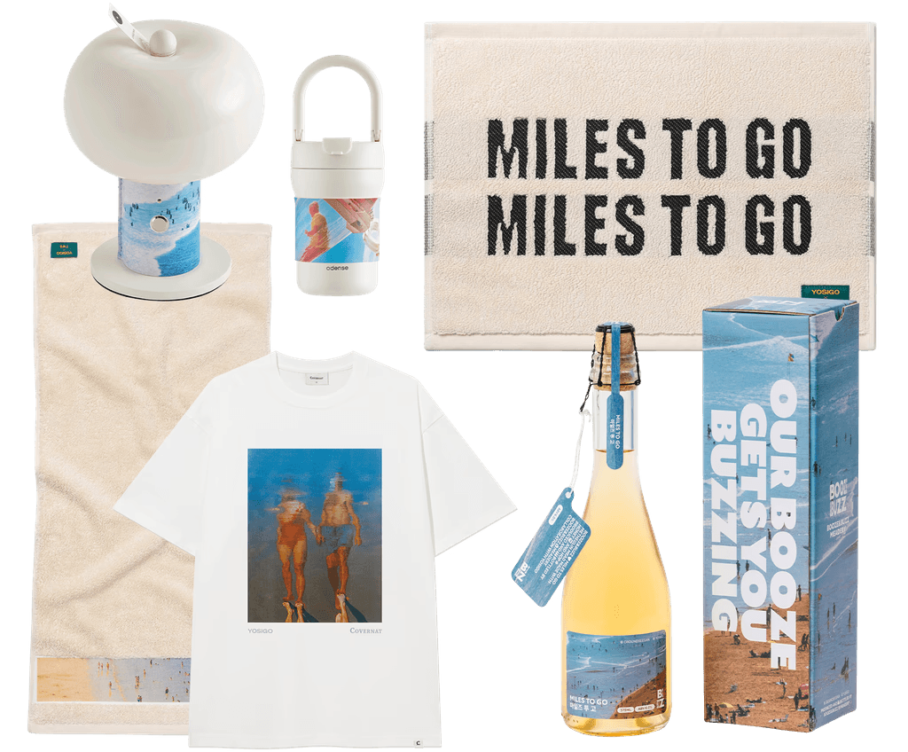 제 작업과 닿아 있는 아이템들로 특별한 애정을 담아 기획했어요. 귀여운 램프는 사진 작업에서 가장 중요한 빛을 떠올리게 하고, 타월은 해변이나 여름을 연상시키죠. 매일 입기 좋은 티셔츠도 준비했고요. 개인적으로 와인은 축하와 기쁨을 상징하거든요. 꼭 추천하고 싶은 와인도 있답니다.