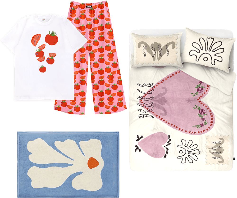 뚜누 홈 시리즈는 예술적 감성과 편안함이 공존하는 공간을 완성합니다. 풍부한 색감과 자유로운 아트워크가 돋보이는 협업 컬렉션을 선보입니다.