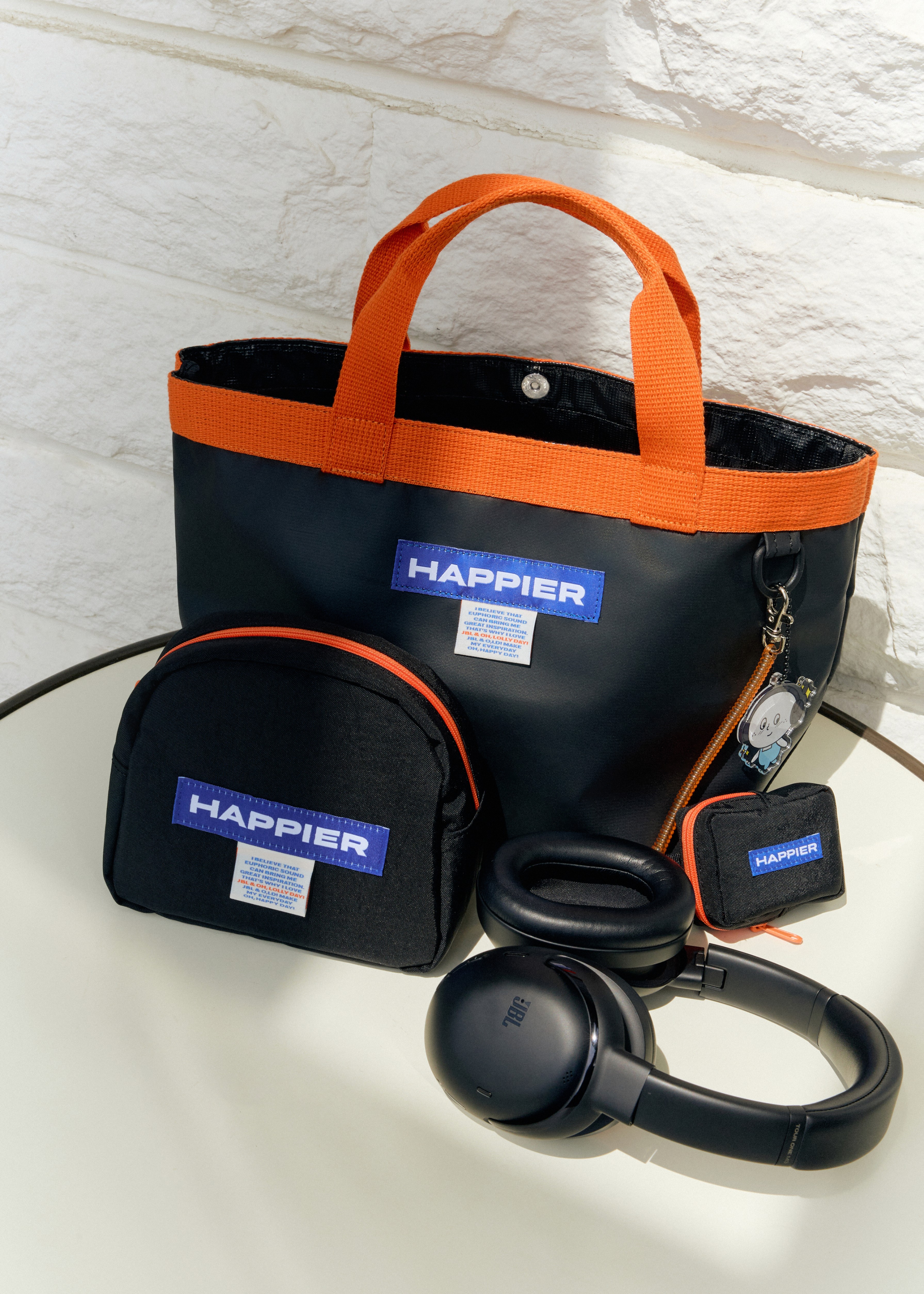 오롤리데이의 HAPPIER 라인과 협업해 JBL 전용 굿즈를 제작하게 되었어요. 29CM에서도 많은 사랑을 받고 있는 스트롱 토트백, JBL 헤드셋과 트랜스미터가 쏙 들어가는 파우치 2종 그리고 오롤리데이의 마스코트 못나니즈 키링까지, 아낌없는 구성으로 만들어 보았어요. JBL의 상징인 팝한 오렌지와 블랙의 색 조합 또한 매력적이죠. 구성부터 패키지까지 모든 부분에 심혈을 기울인 만큼 선물 아이템으로도 추천합니다.