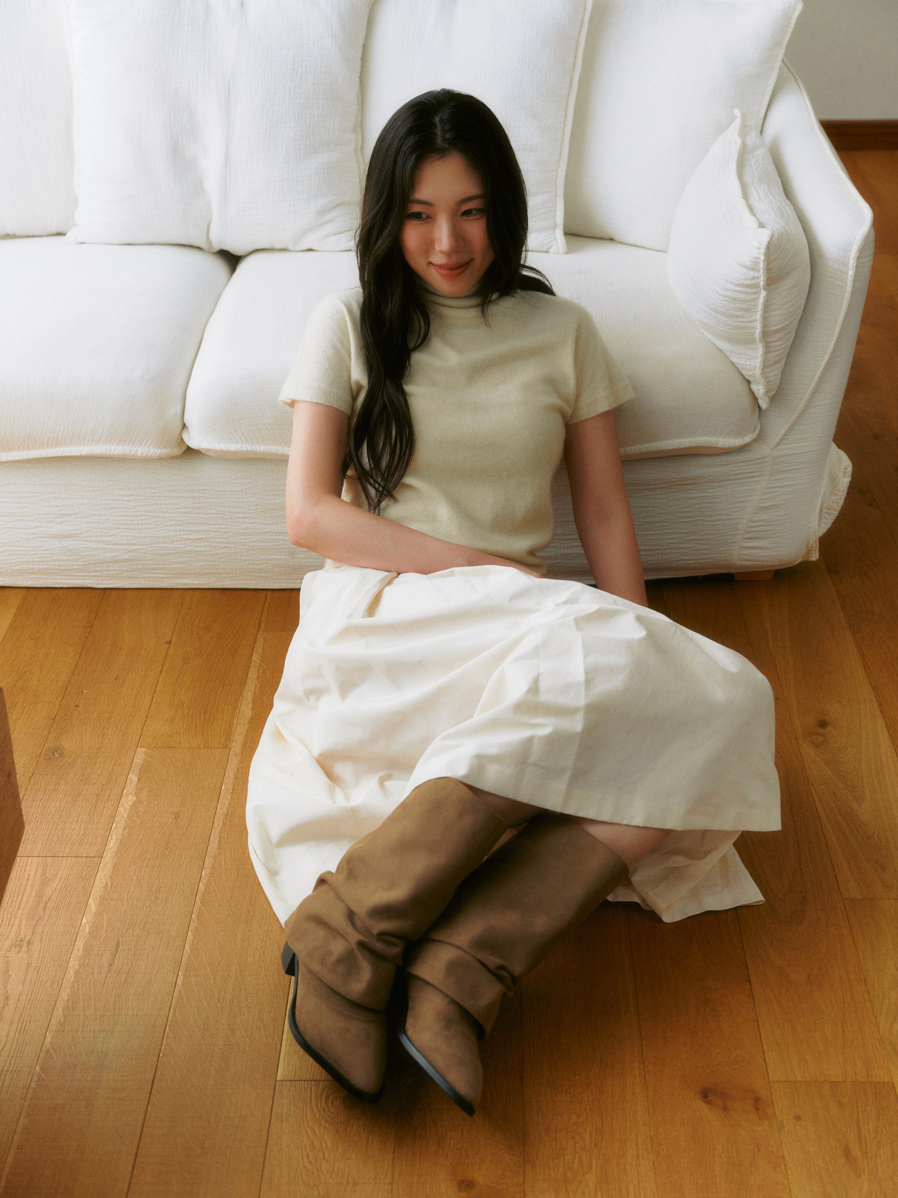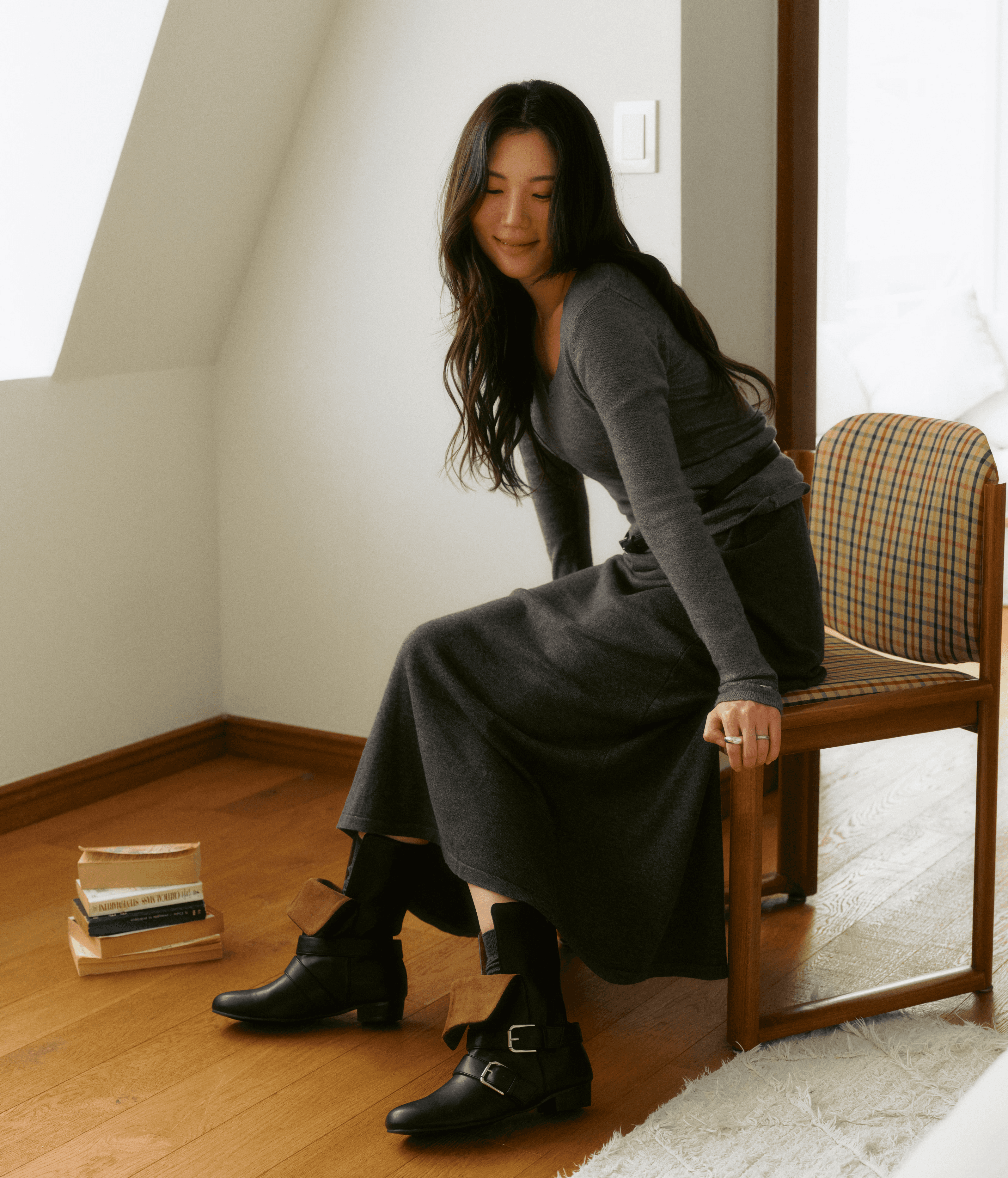 일상에서 자주 손이 갈 만한 라인업으로 구성되어 있어요. 모든 상품에 애정을 담아 작업을 했기에 하나를 고르기가 힘들지만, 트렌드와 실용성, 스타일까지 모두 갖춘 ‘라운드 토우 와이드 솔트 롱 부츠’를 추천하고 싶은 마음이 가장 크네요.