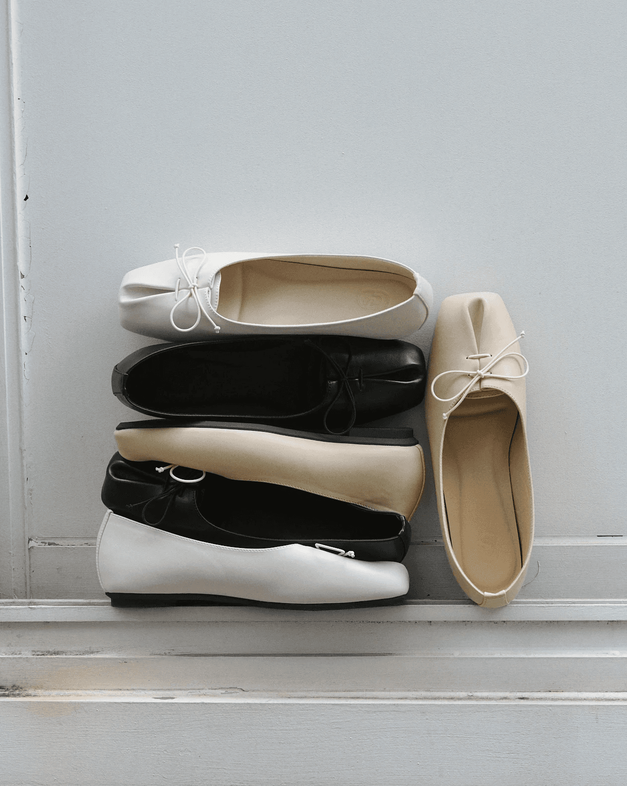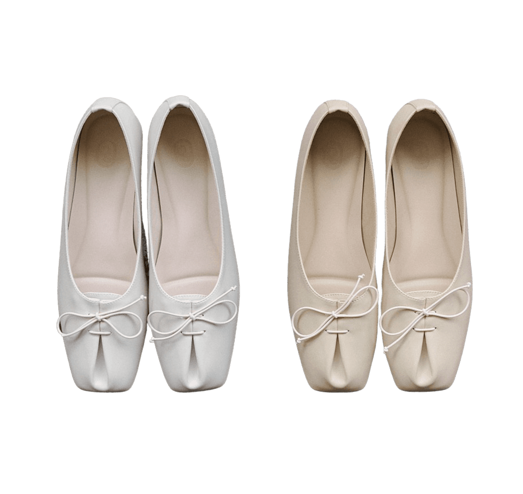 우아한 리본과 핀턱 디테일의 플랫 슈즈