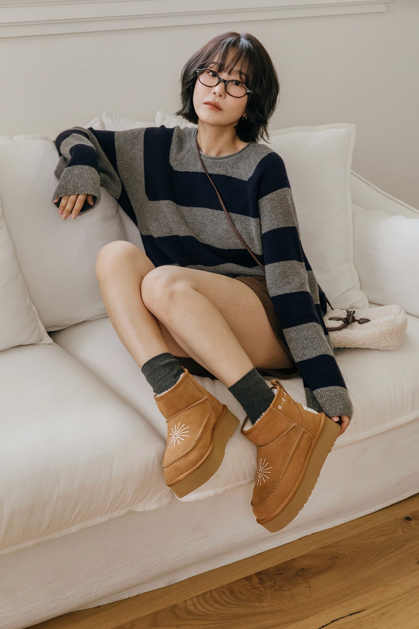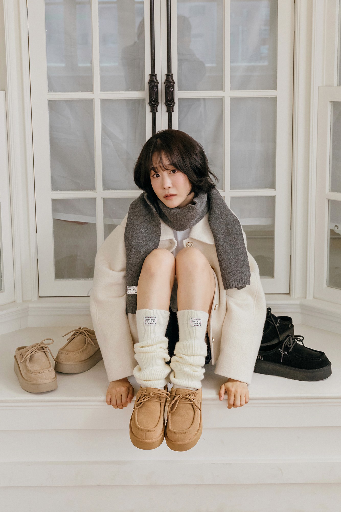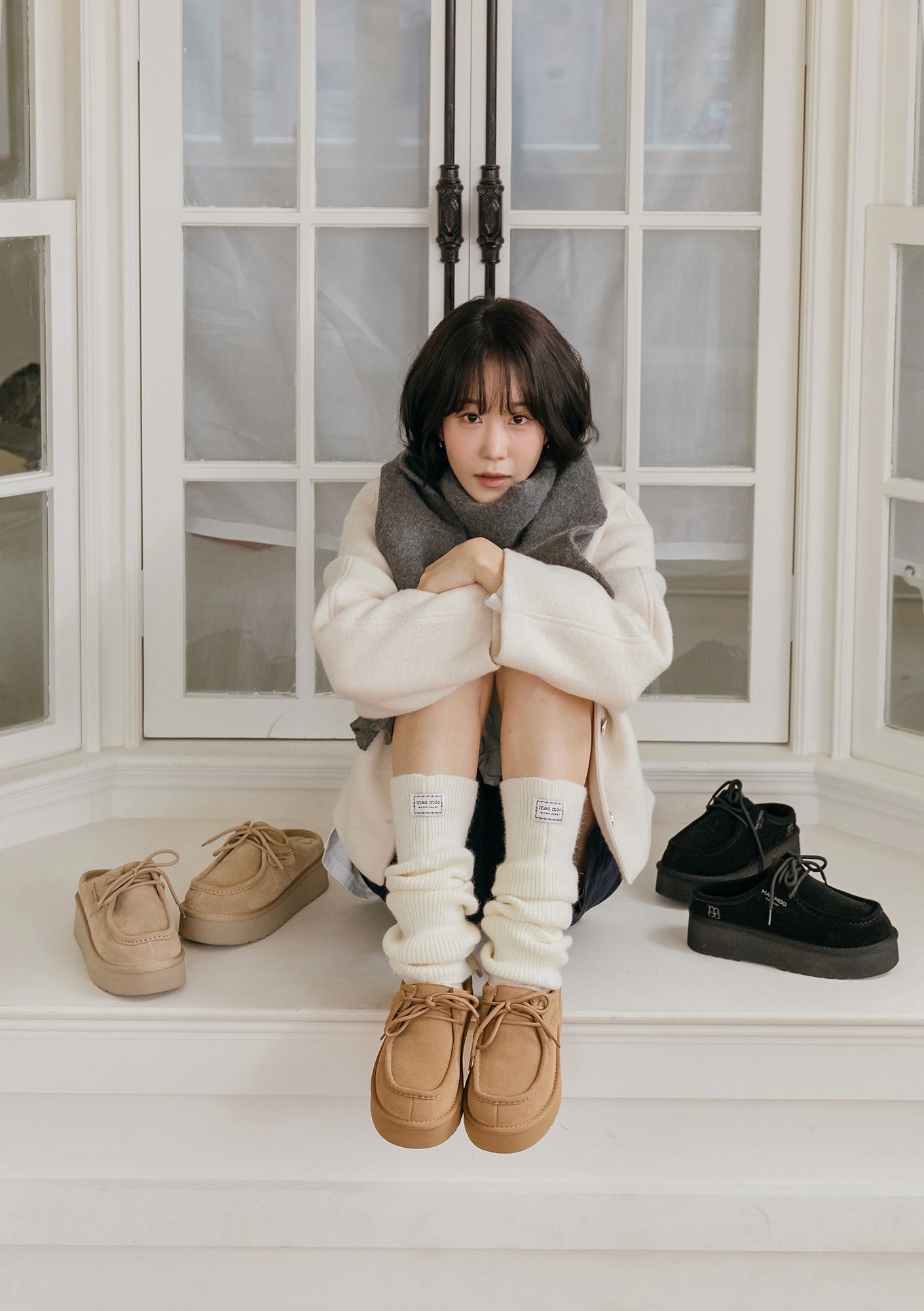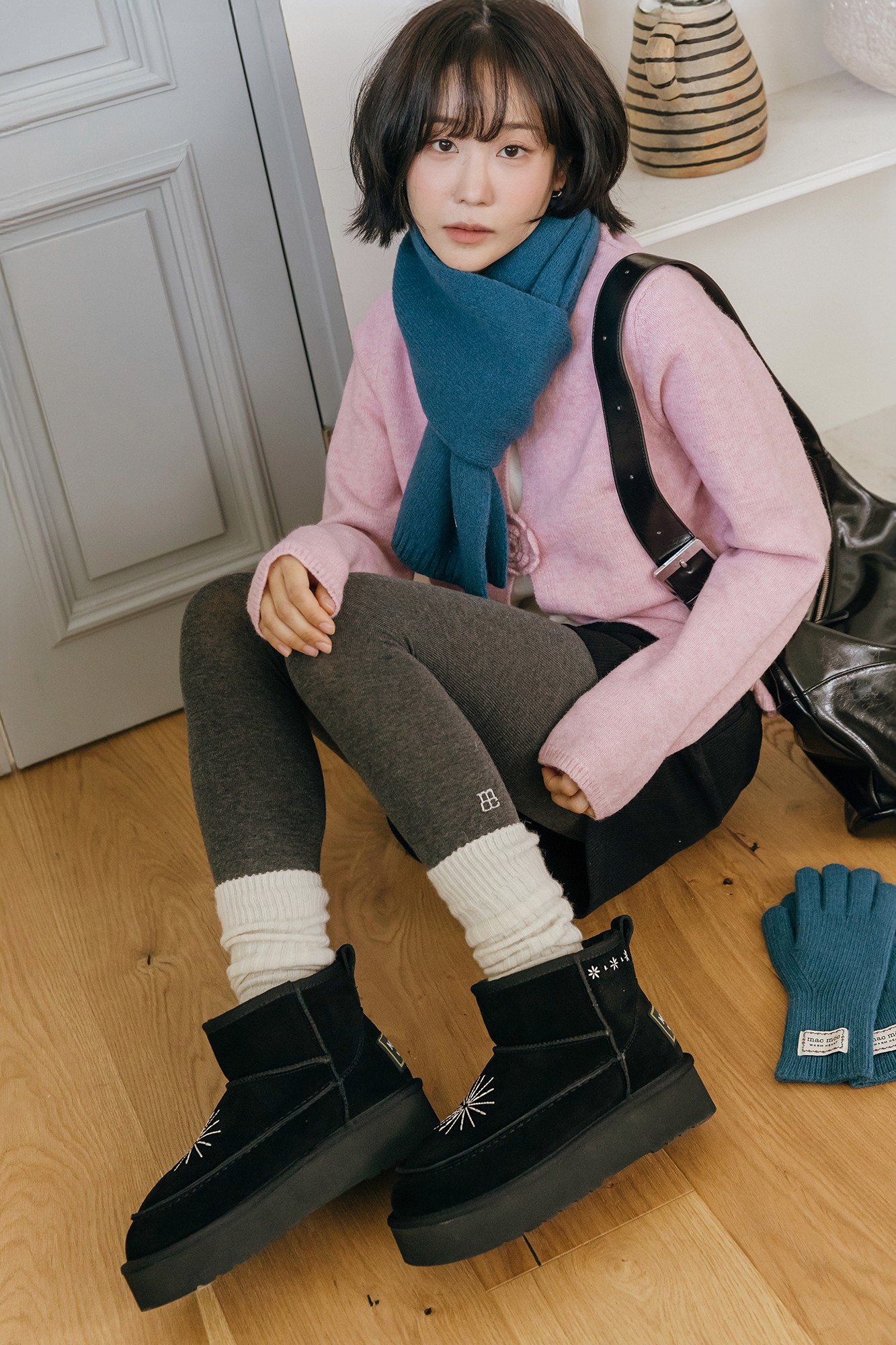 많이 신는 미들 어그 부츠에 새로운 스토리텔링을 녹여낸 것이 특징이에요. 기존 마크모크의 겨울을 상징하는 요소가 눈 위에 손가락으로 그린 하트였다면, 이번 시즌에는 눈꽃에서 영감을 받아 모티프로 풀어냈죠. 말랑한 질감의 포근한 부츠도 구성했는데요. 기본과 롤업 투웨이로 연출 가능한 아이템으로 신선한 컬렉션을 구성하는 데 중점을 두었습니다.