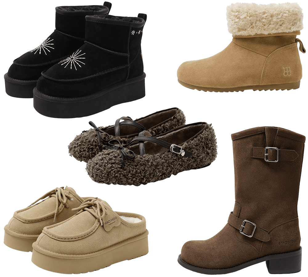 이번 협업 상품 5가지 각자의 다른 매력을 갖고 있어서 하나만 추천하기 어려운데요. 사랑스러움과 따스함을 모두 놓칠 수 없다면 멜로우 미들 어그 부츠와 눈꽃 미들 부츠를 추천해요. 또, 어디서나 편하게 신을 겨울 슈즈를 찾고 있다면 두근 어그 슬리퍼도 좋은 선택지가 될 것 같아요.