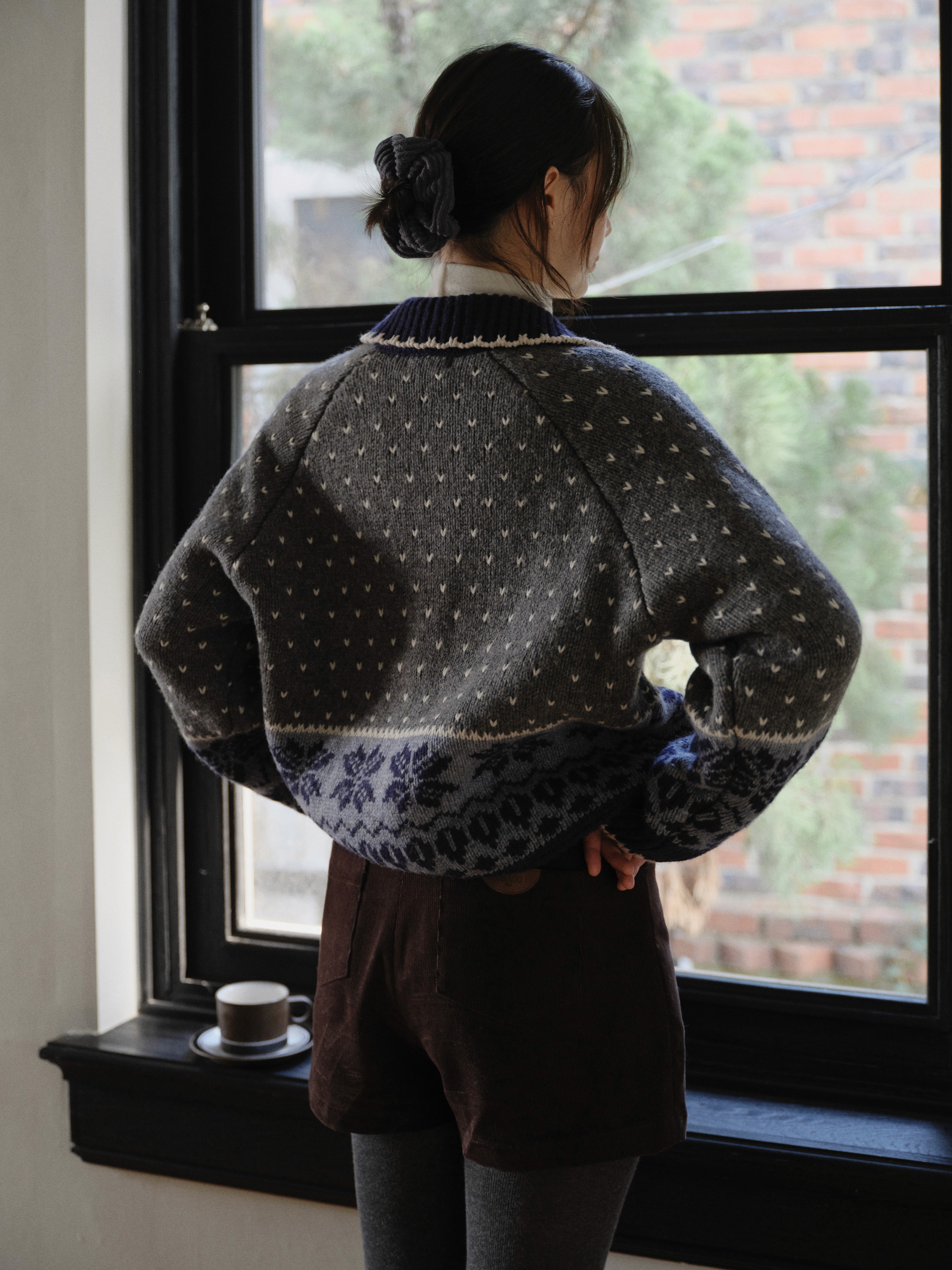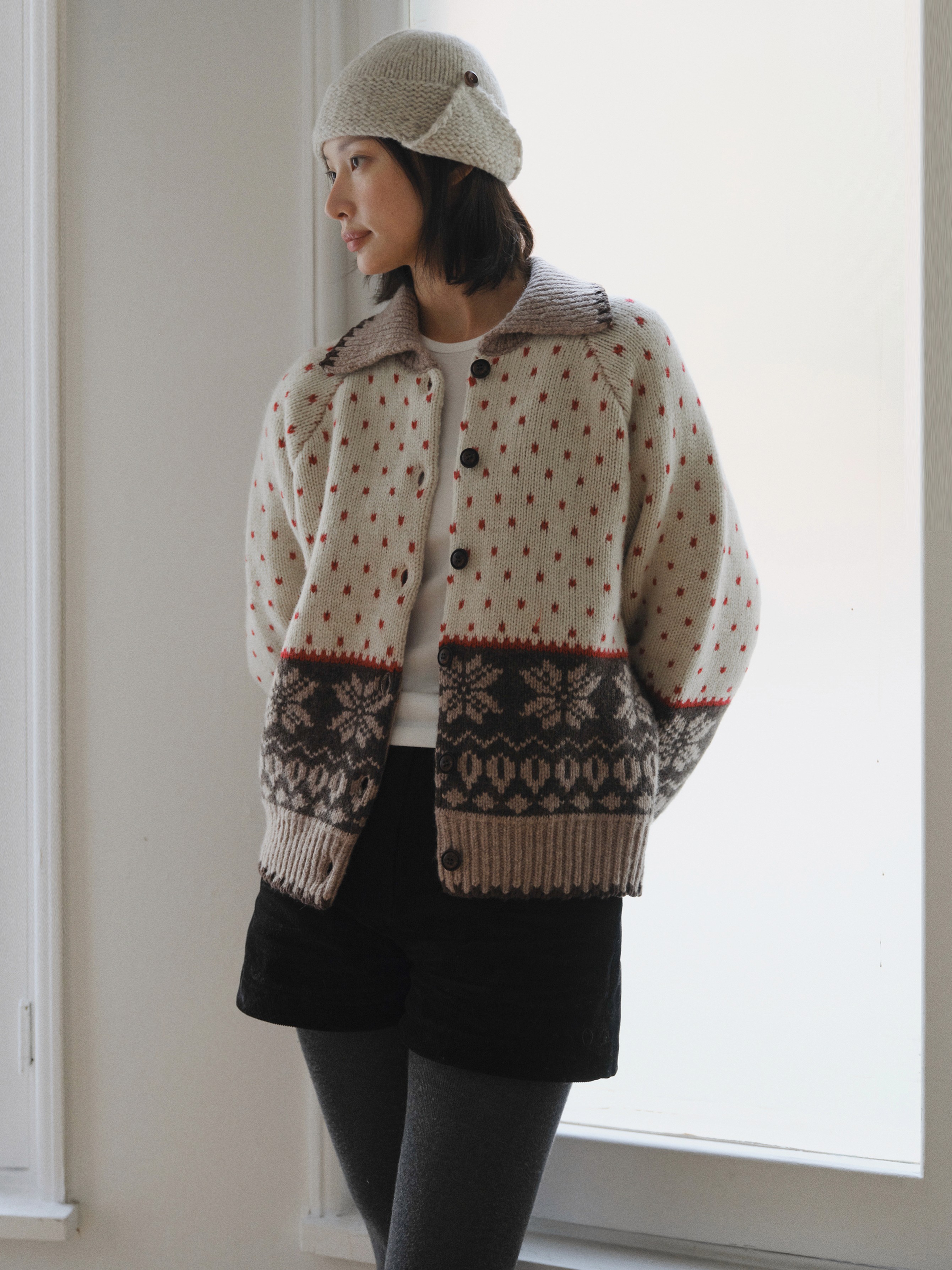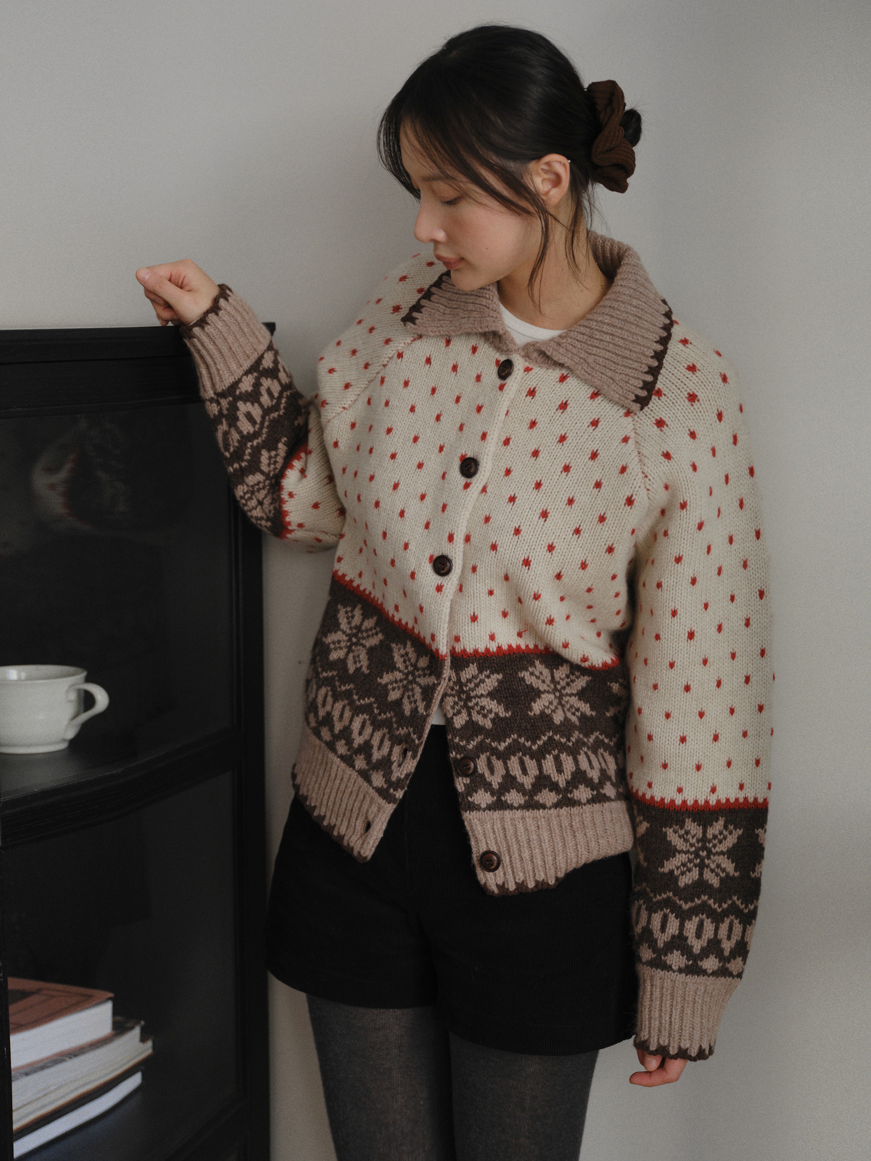 Heart jacquard collar cardigan
