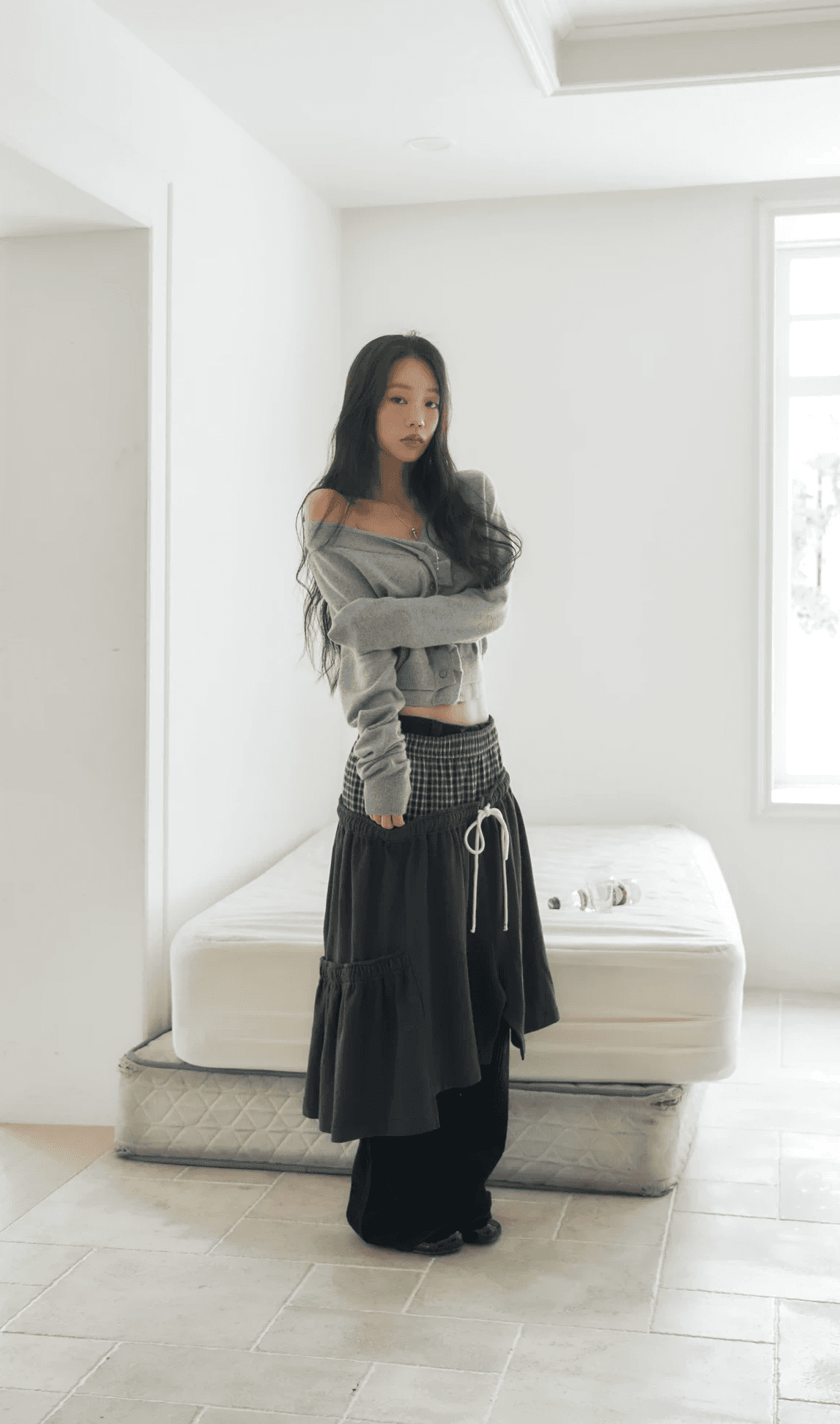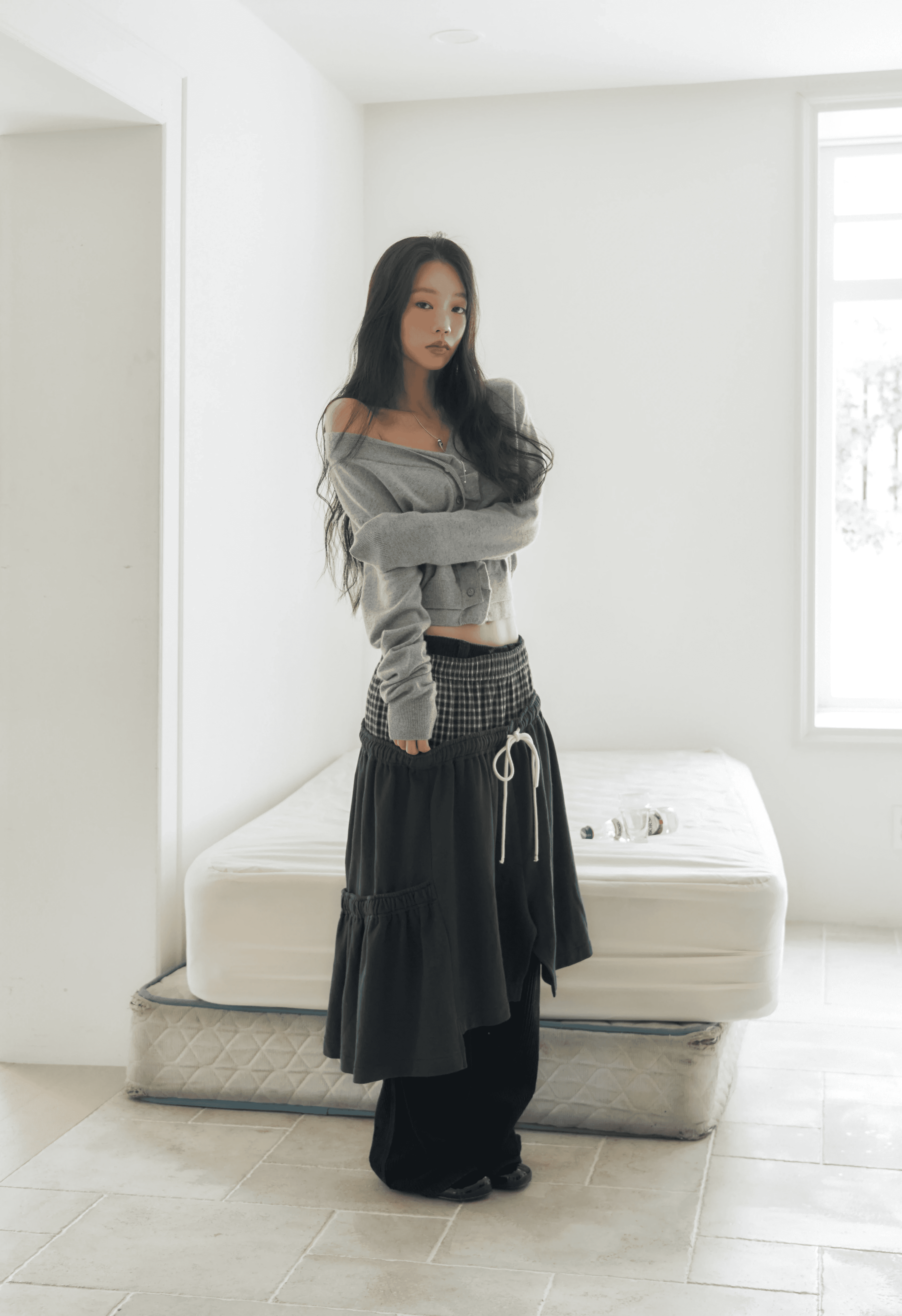 DOUBLE-LAYER WAVY CARDIGAN (MELANGE GREY)