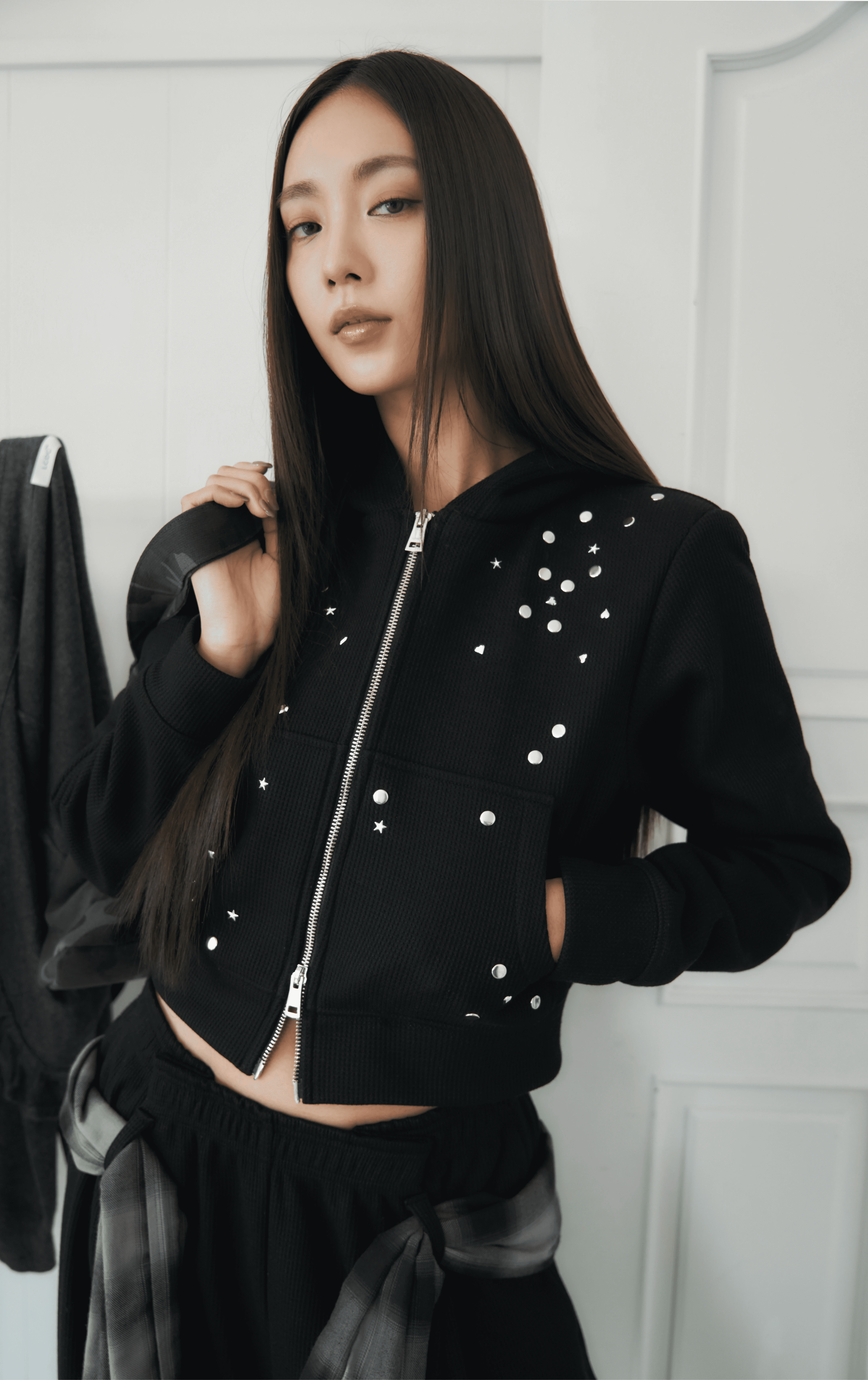 SPARKLE ZIP-UP HOODIE (BLACK)