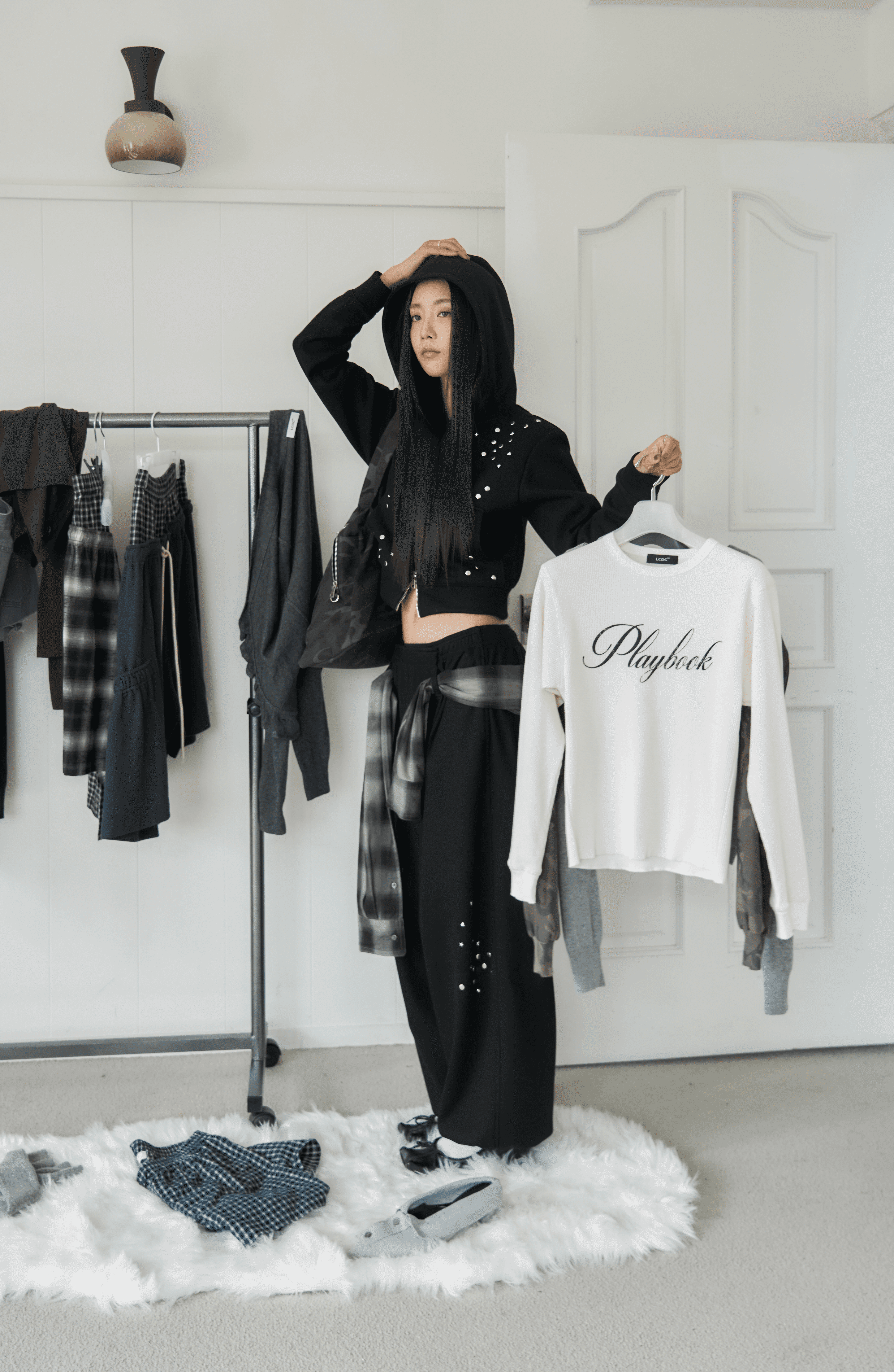 저는 스팽글 포인트 셋업을 가장 추천해요. 편안한 실루엣 위에 은은한 스팽글 디테일이 더해져 일상에서도 자연스러운 포인트를 줄 수 있는 매력적인 상품이에요.