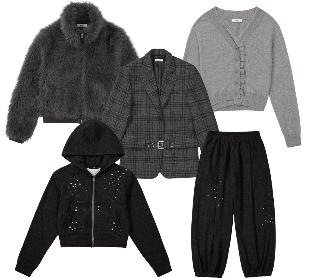 29EDITION은 페이크퍼 재킷, 카디건, 체크 재킷, 스팽글 셋업 총 5가지 상품으로 구성되어 LCDC TM의 다채로운 매력을 느낄 수 있어요. 그중 제가 가장 추천하는 상품은 바로 ‘NEW FUR ZIP-UP JACKET’이에요. 단조로운 룩에는 포인트가 되어주고, 차분한 그레이 컬러가 고급스러워 이번 시즌 손이 자주 갈 것 같아요.