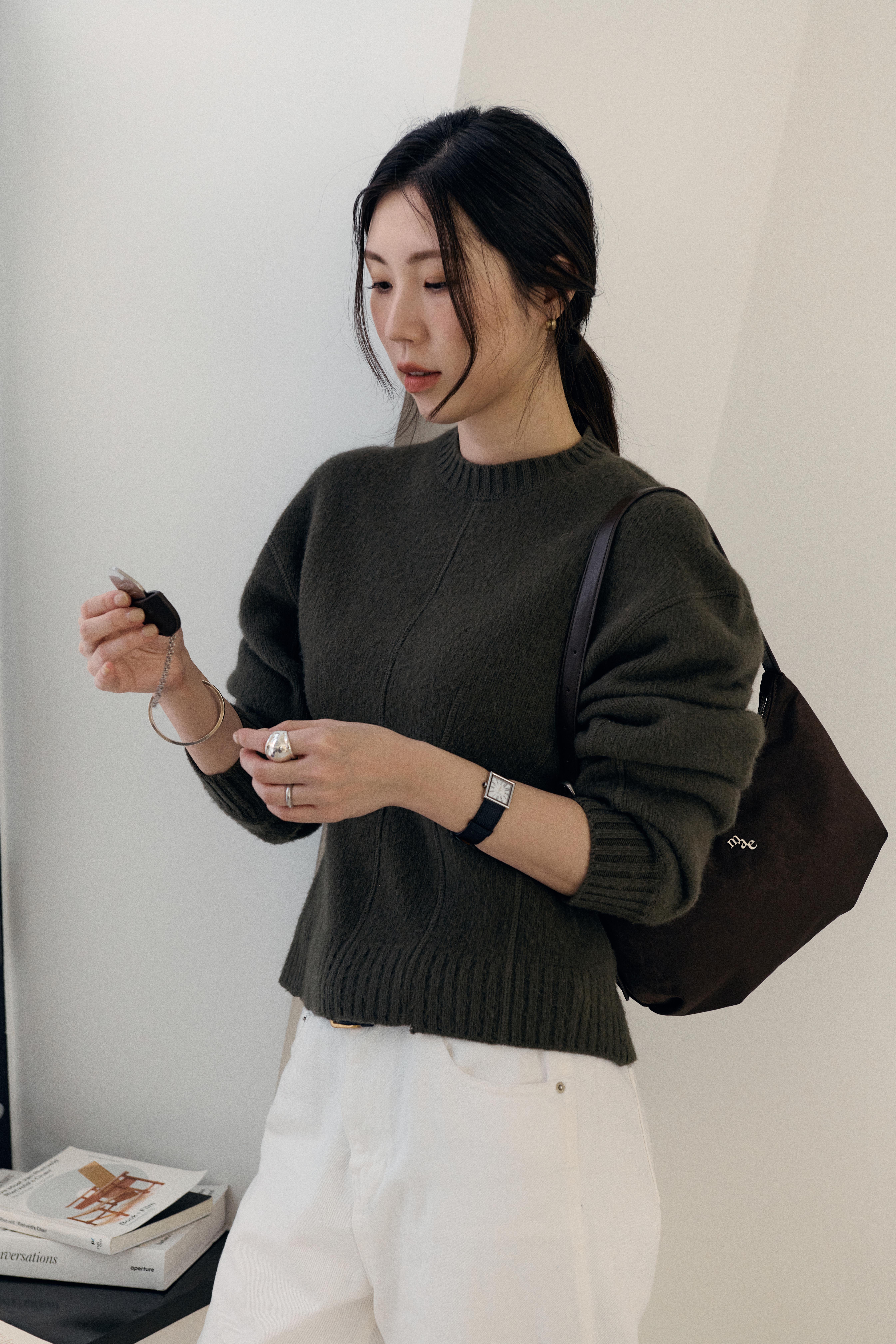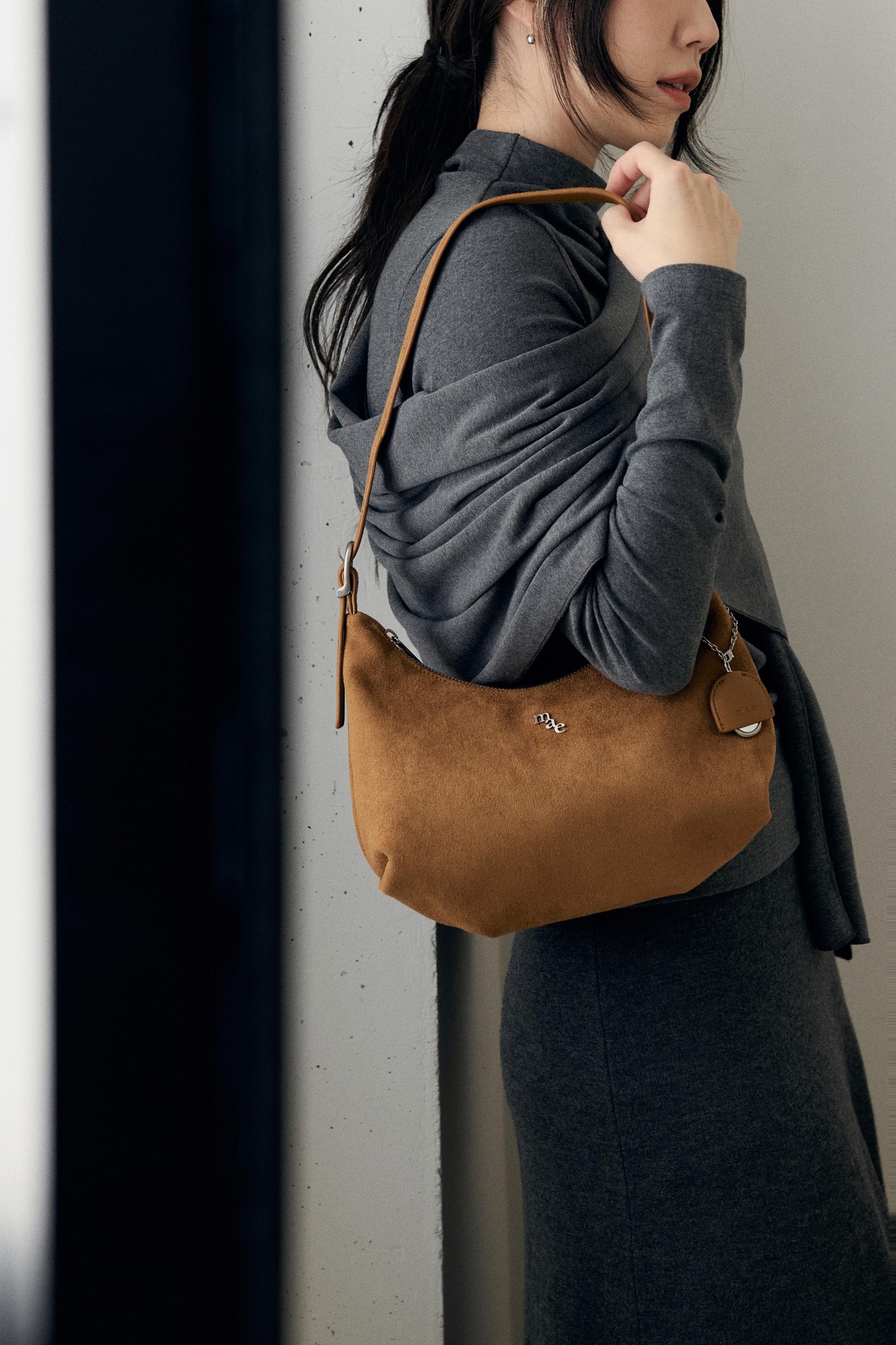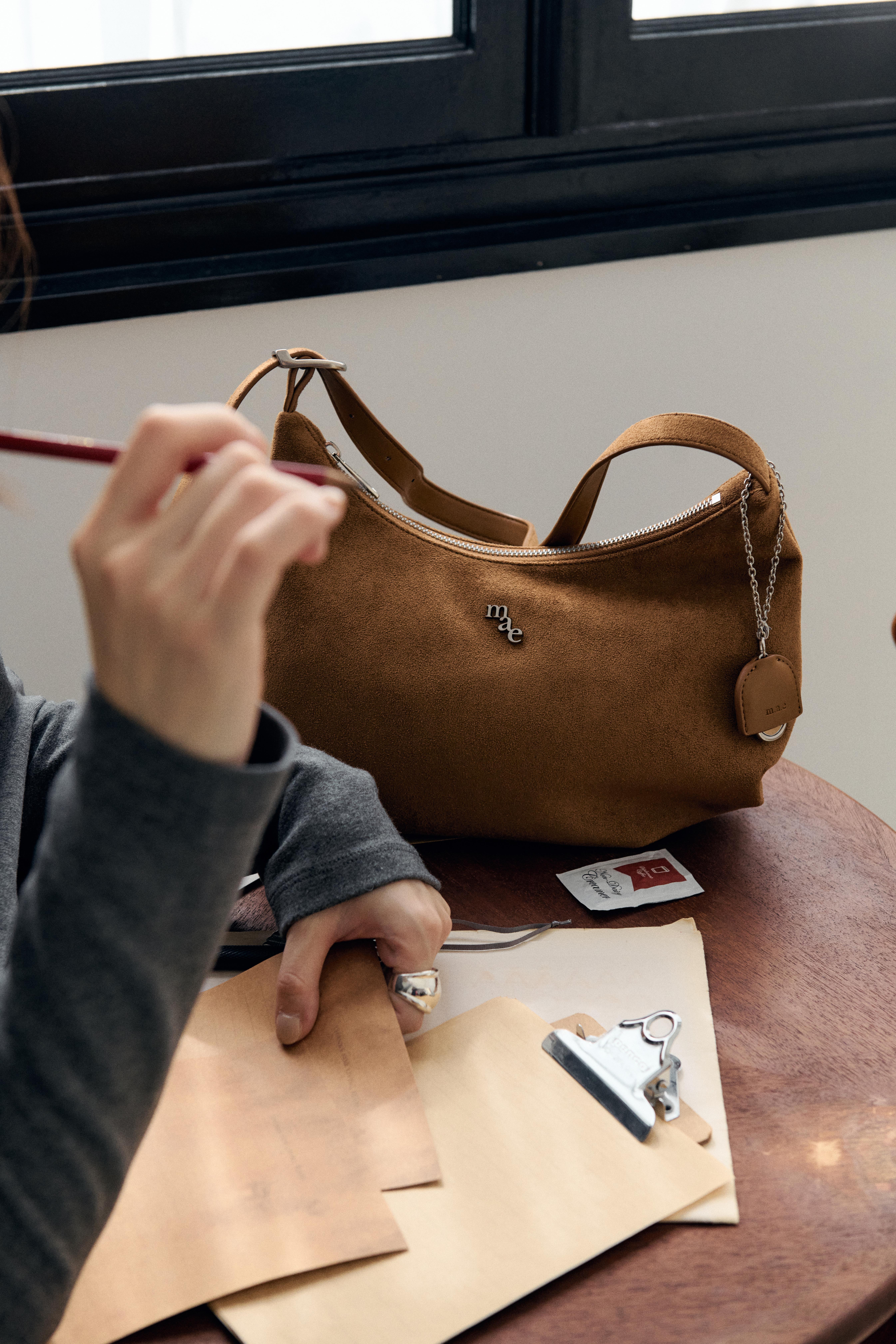 수납력과 디자인, 두 가지를 모두 만족시킬 수 있도록 정말 많이 고민했어요. 특히 짐이 많은 이른바 '보부상' 분들도 편하게 사용하실 수 있도록 사이즈와 내부 공간에 신경을 많이 썼습니다. 세 가지 상품 모두 진심을 담아 준비했지만, 그중에서도 일상에서 가장 자주 손이 가는 건 다이어널 호보백이라고 생각해요. 숄더백과 크로스백으로 모두 연출할 수 있어서 활용도가 높고, 어떤 스타일에도 부담 없이 어울리는 차분한 컬러가 정말 매력적이에요. 개인적으로는 은은한 올리브 컬러가 가장 마음에 들어요. 과하지 않으면서도 포인트가 되는 색이라, 다양한 룩에 자연스럽게 매치할 수 있거든요.