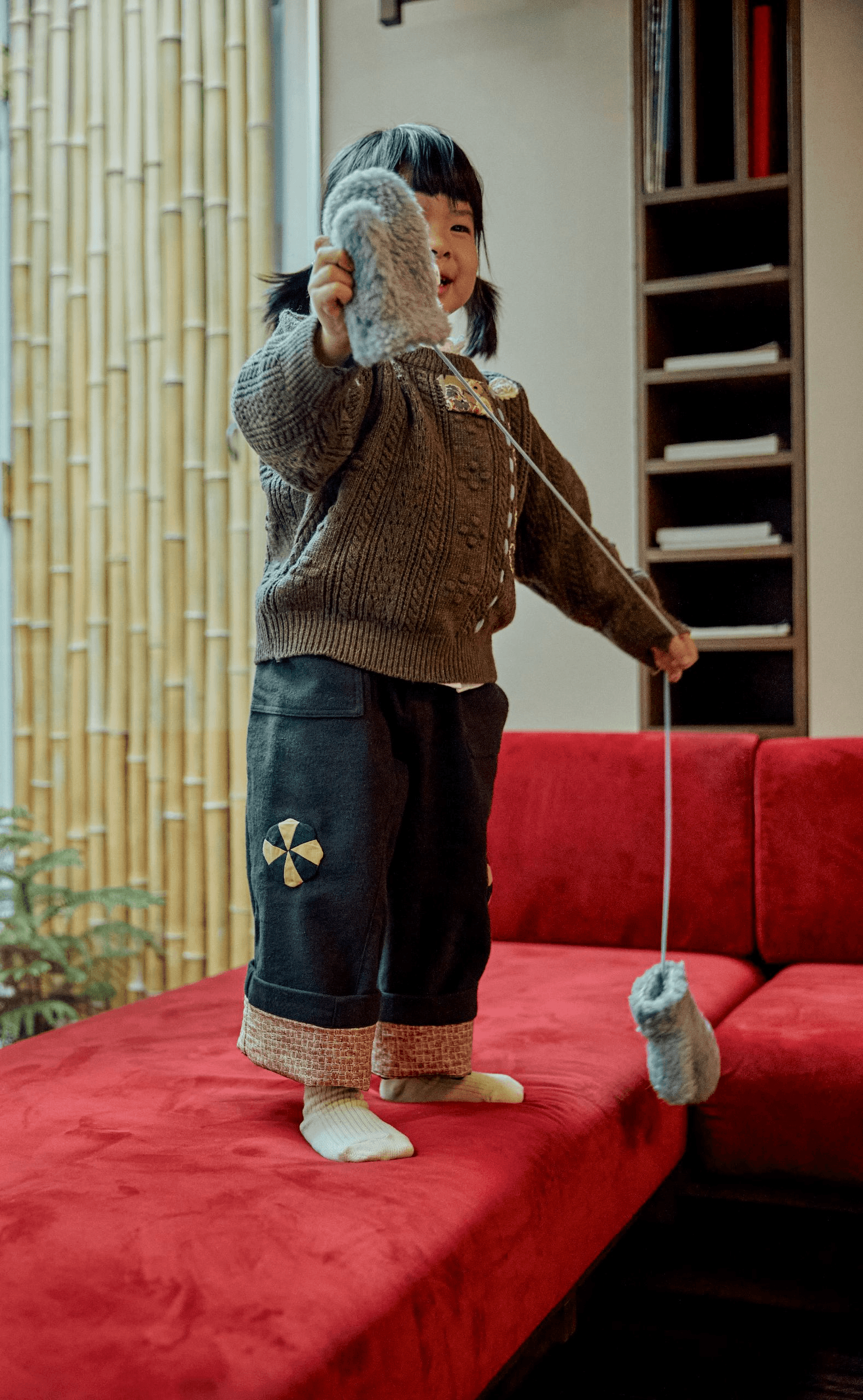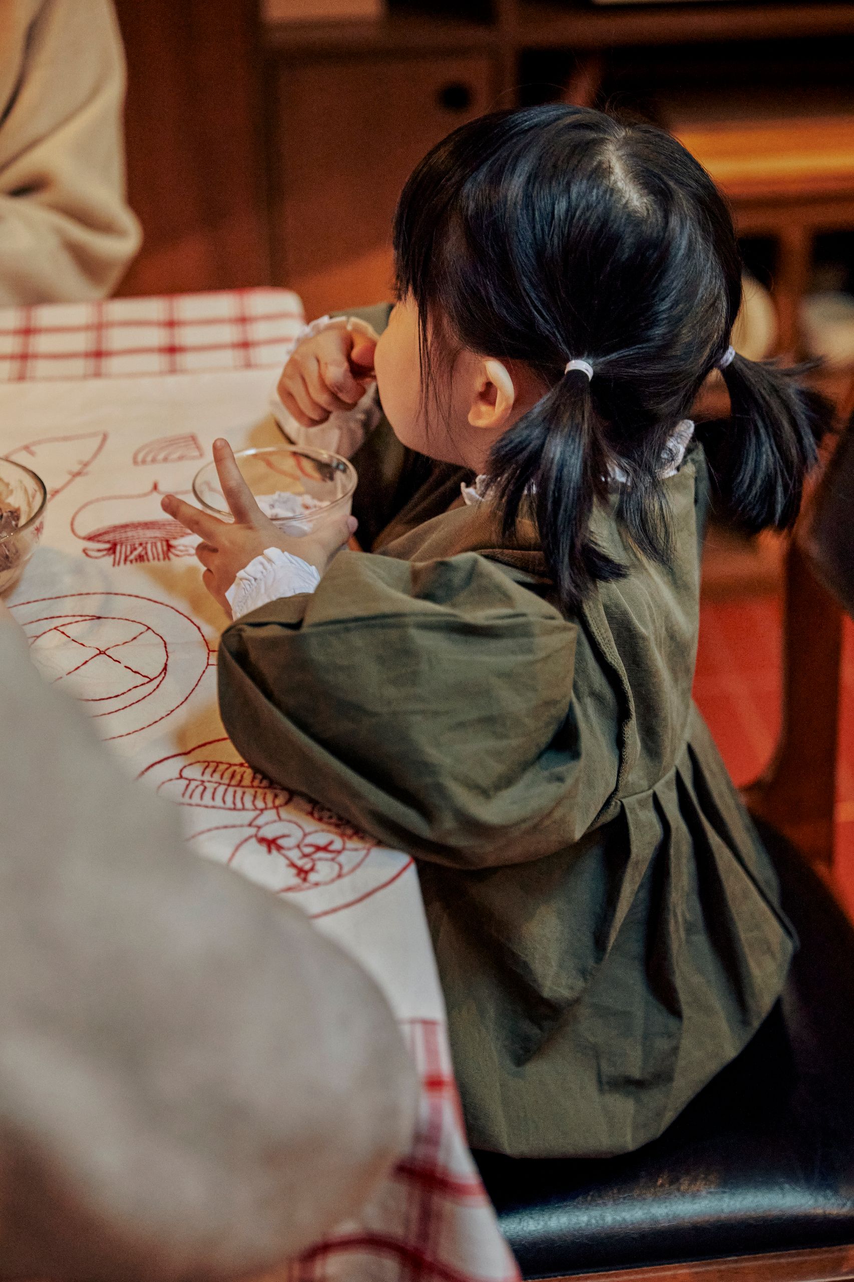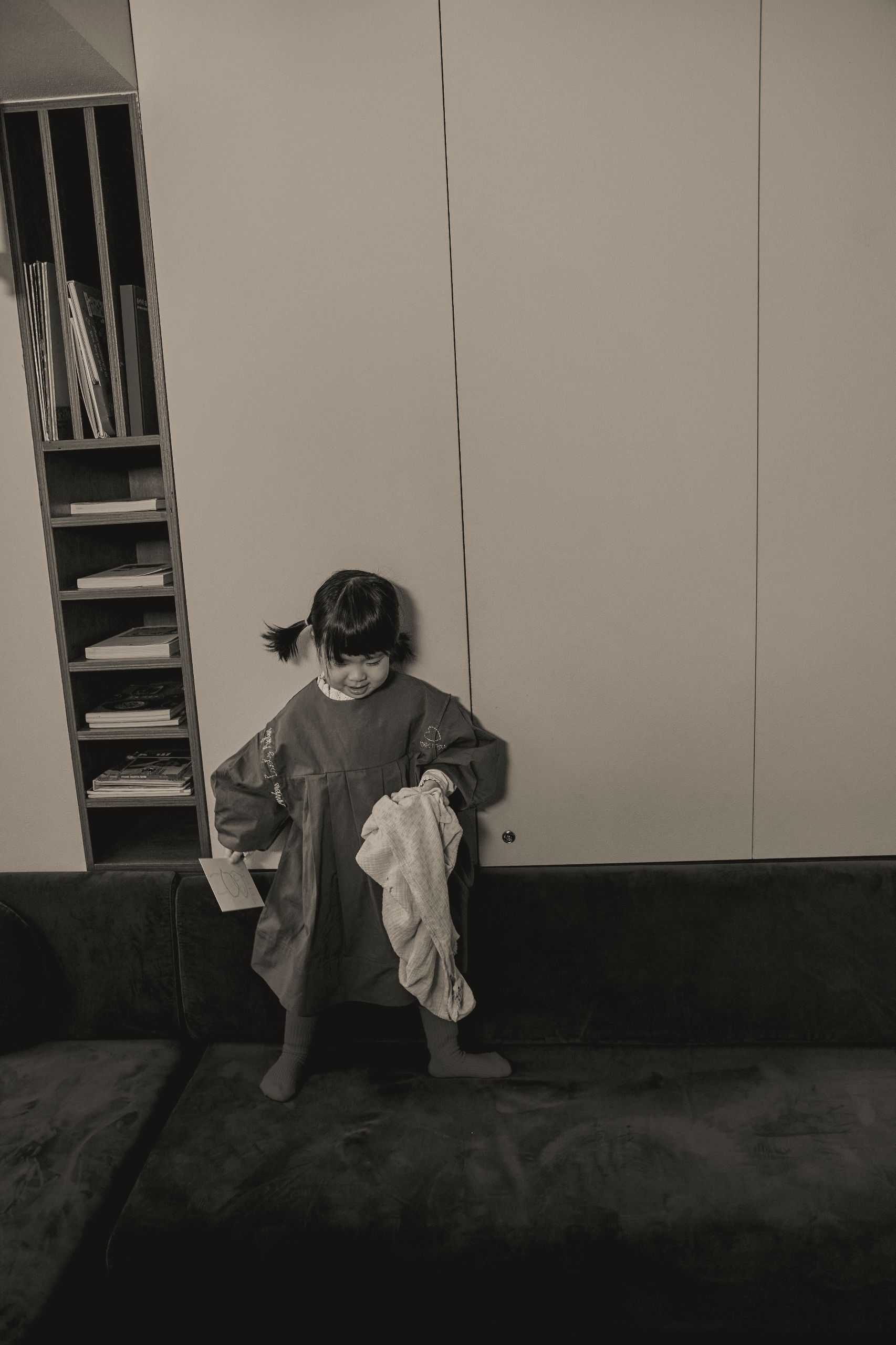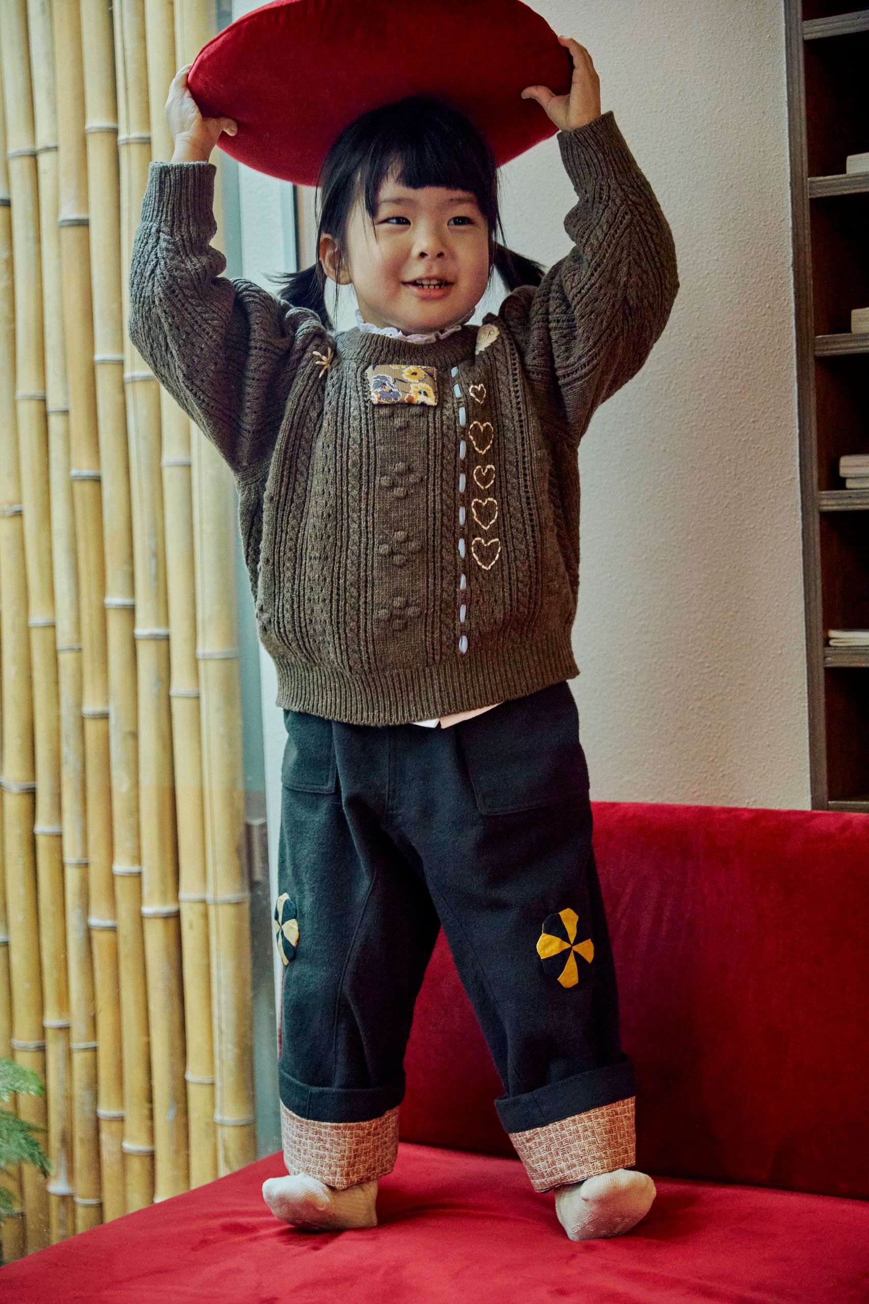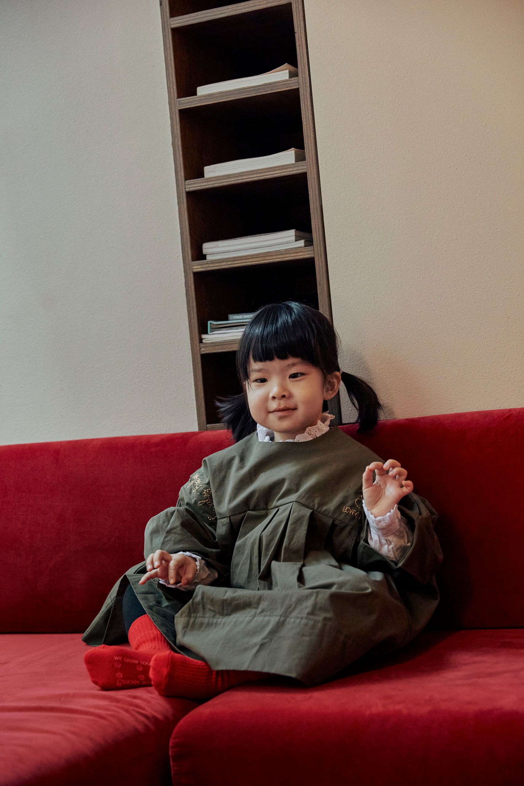 엄마 아이의 이미지가 뚜렷하다 보니 옷 같은 경우에는 편안한 색감에 자연스러운 실루엣의 스타일로 많이 입혀요. 시와도 편안한 지 좋아하고요. 샤랄라한 공주 스타일은 별로 안좋아해요. 요즘엔 약간의 포인트를 주고 싶어 편안하면서도 퀼트 디테일이 있는 탐베레 옷을 자주 입히고 있어요.