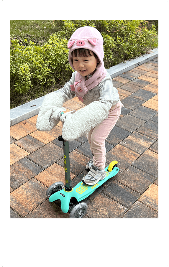 엄마 밝고 적극적인 아이로 자랐으면 좋겠어요. 엄마 아빠가 늘 옆에 있으니 두려워하지 않고 뭐든 마음껏 시도해 볼 수 있게 도와주려 해요.
