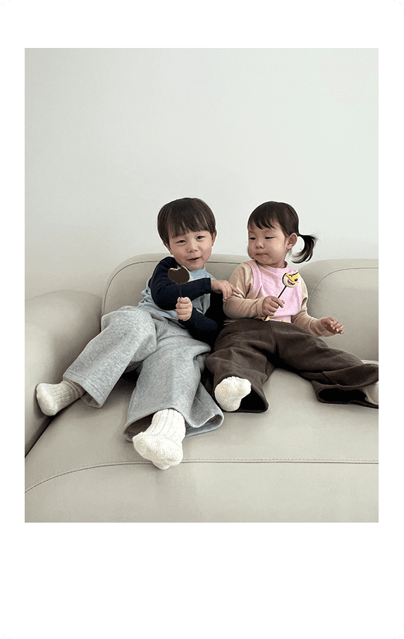 엄마 첫째가 딸이길 원했는데, 딸보다 더 예쁜 아들이 태어났어요. 외모로도 어디를 가나 주목받고 정말 순한 아이예요. 은서는 애교가 많고 눈웃음이 사랑스러운 아이예요. 우리 집 귀여움 담당이죠. 둘이 쫑알쫑알 대화하는 모습을 보고 있으면 너무 행복해요.