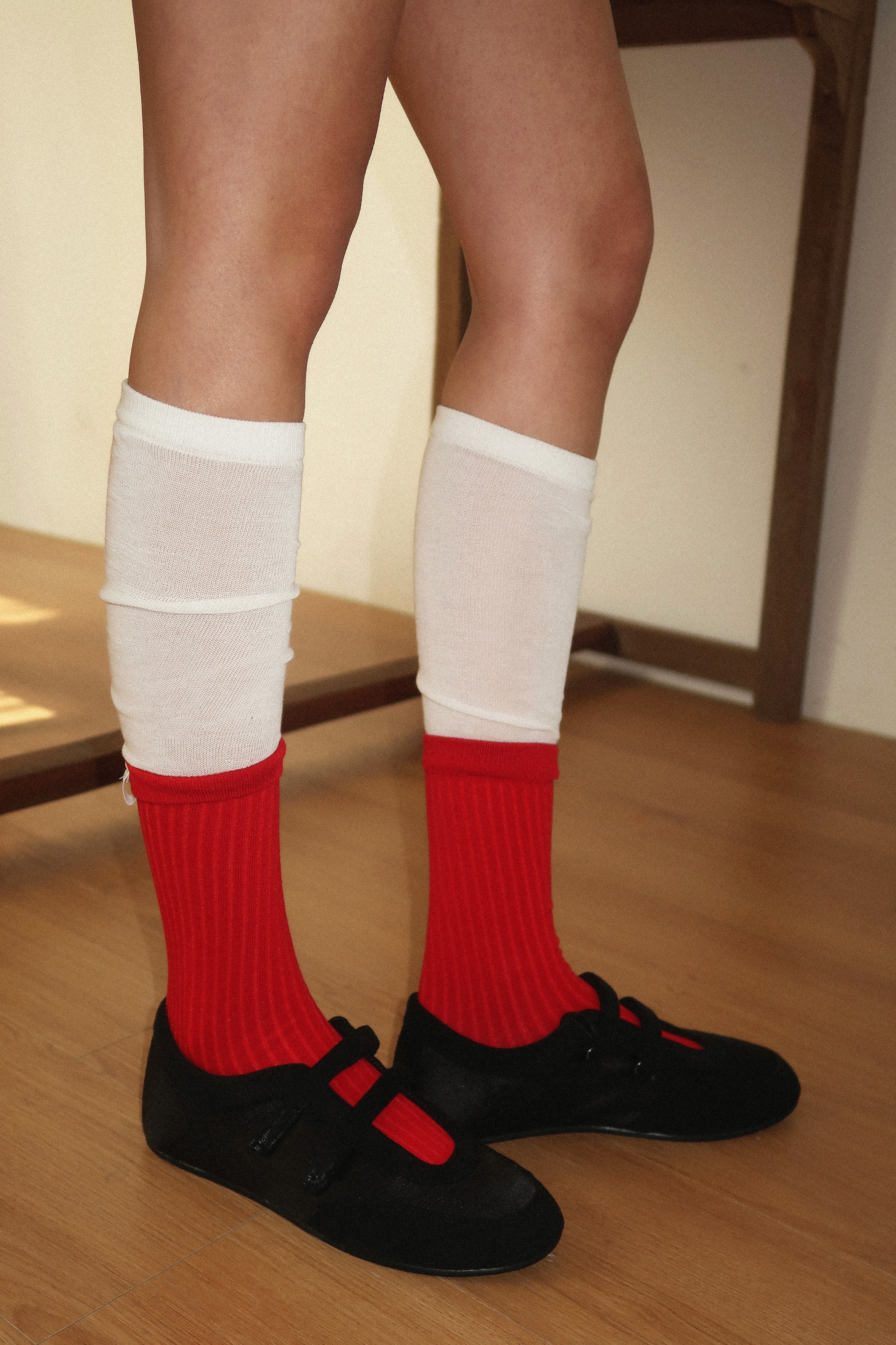 겹쳐 신은 듯한 디자인의 감각적인 니삭스