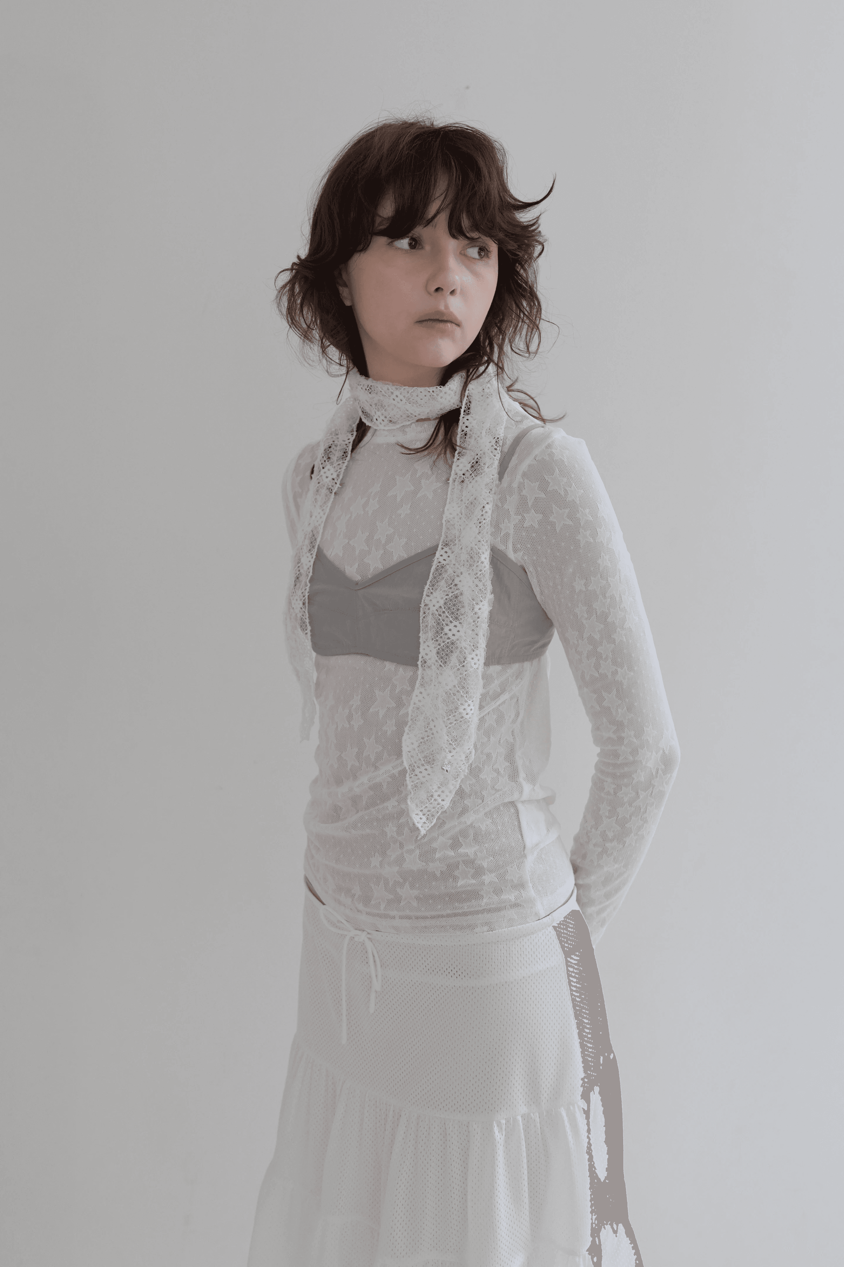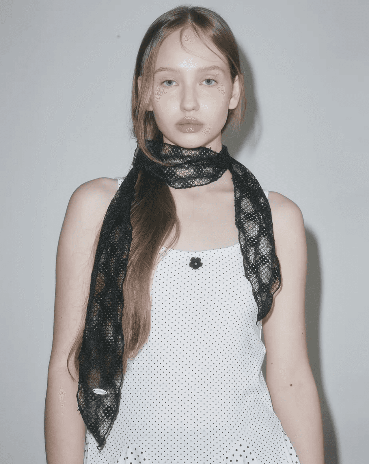 은은한 포인트가 되어줄 체크 패턴 레이스 스카프