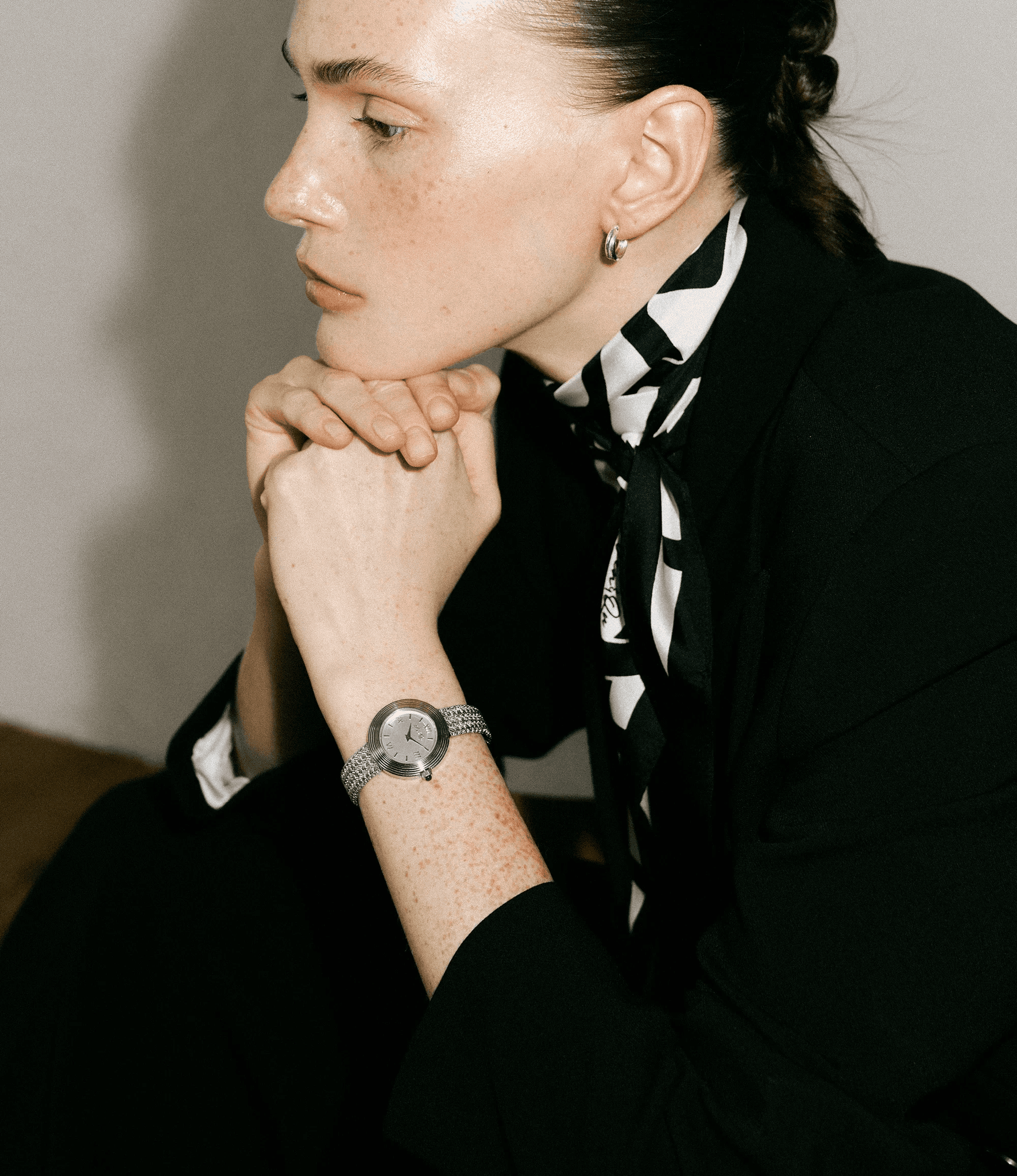 각도에 따라 다른 빛을 내는, 심플한 듯 화려한 실버 워치
