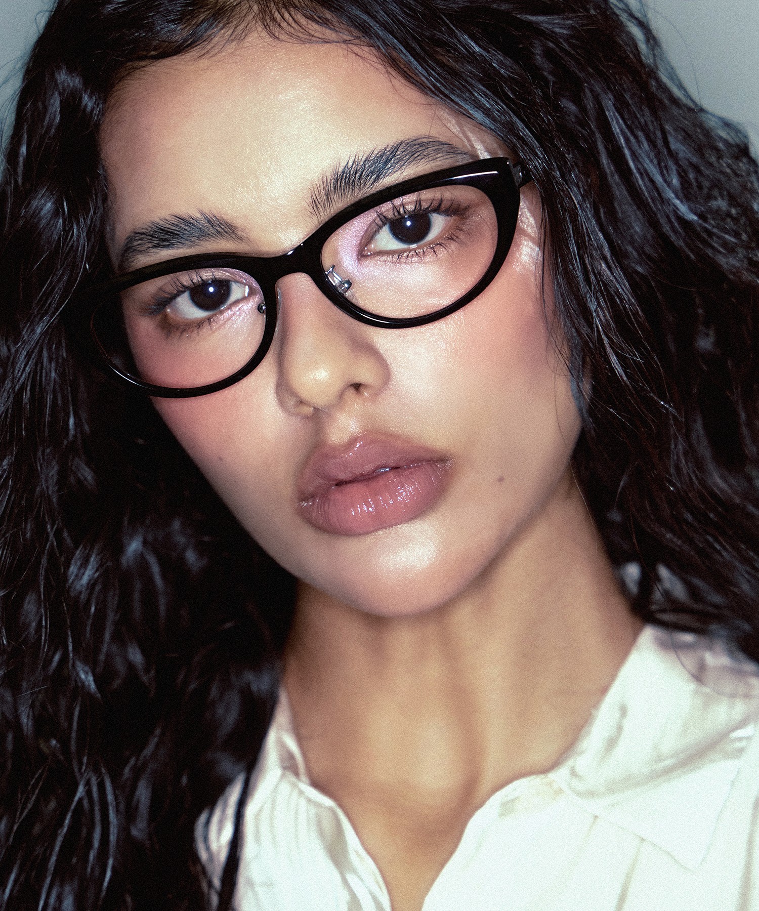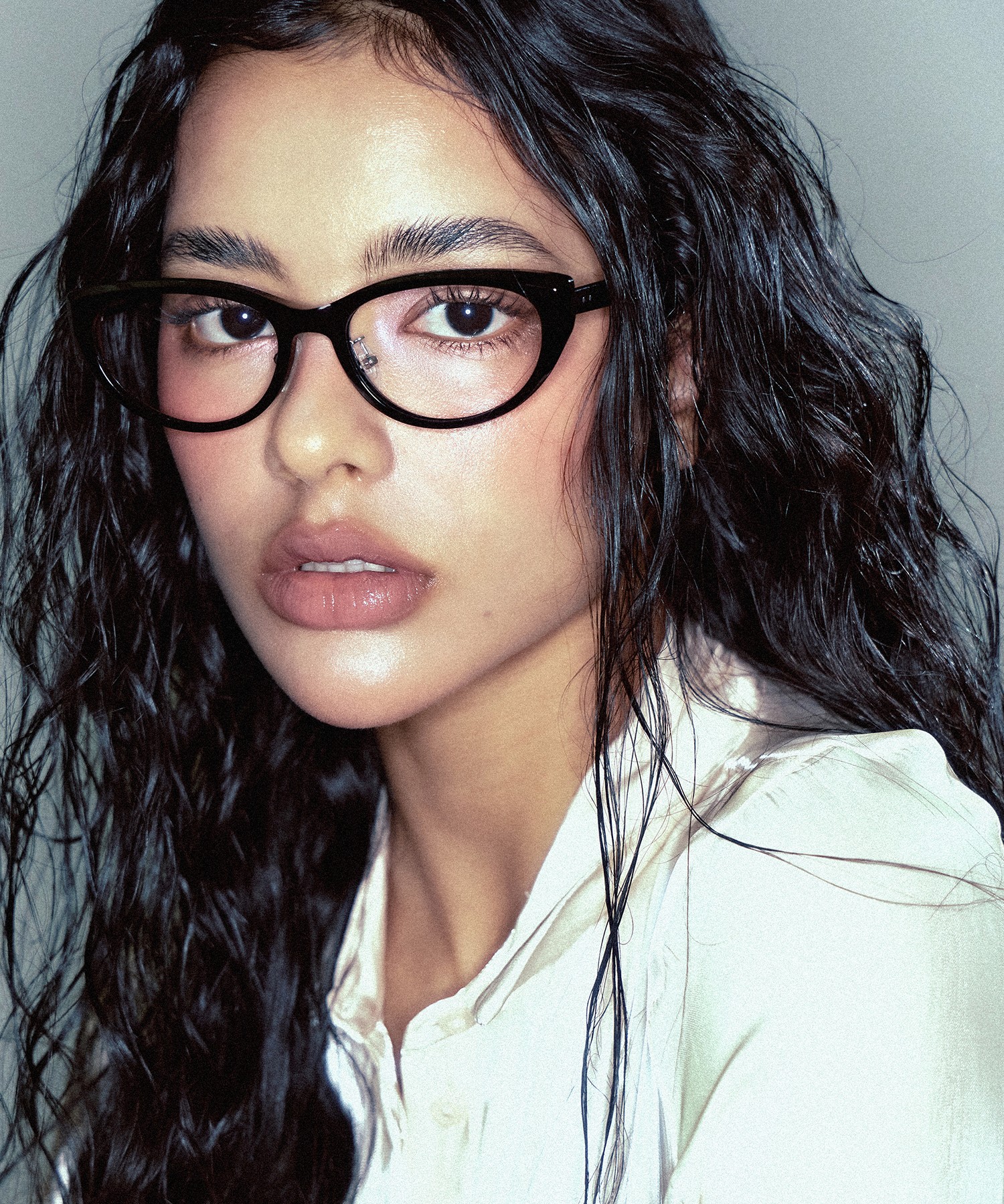 지성미와 트렌디함을 모두 담은 캣아이 프레임의 뿔테 안경