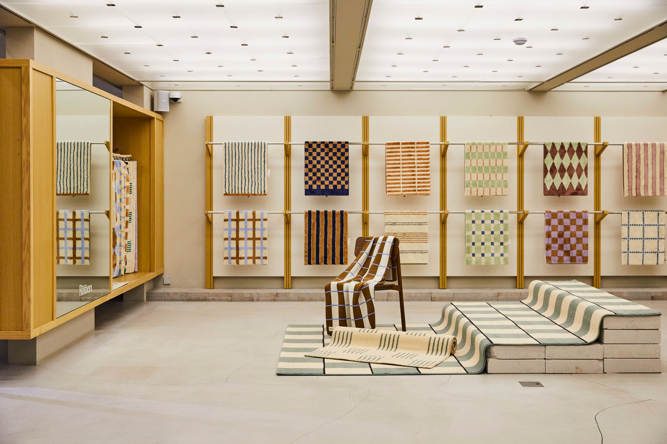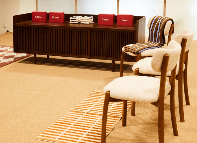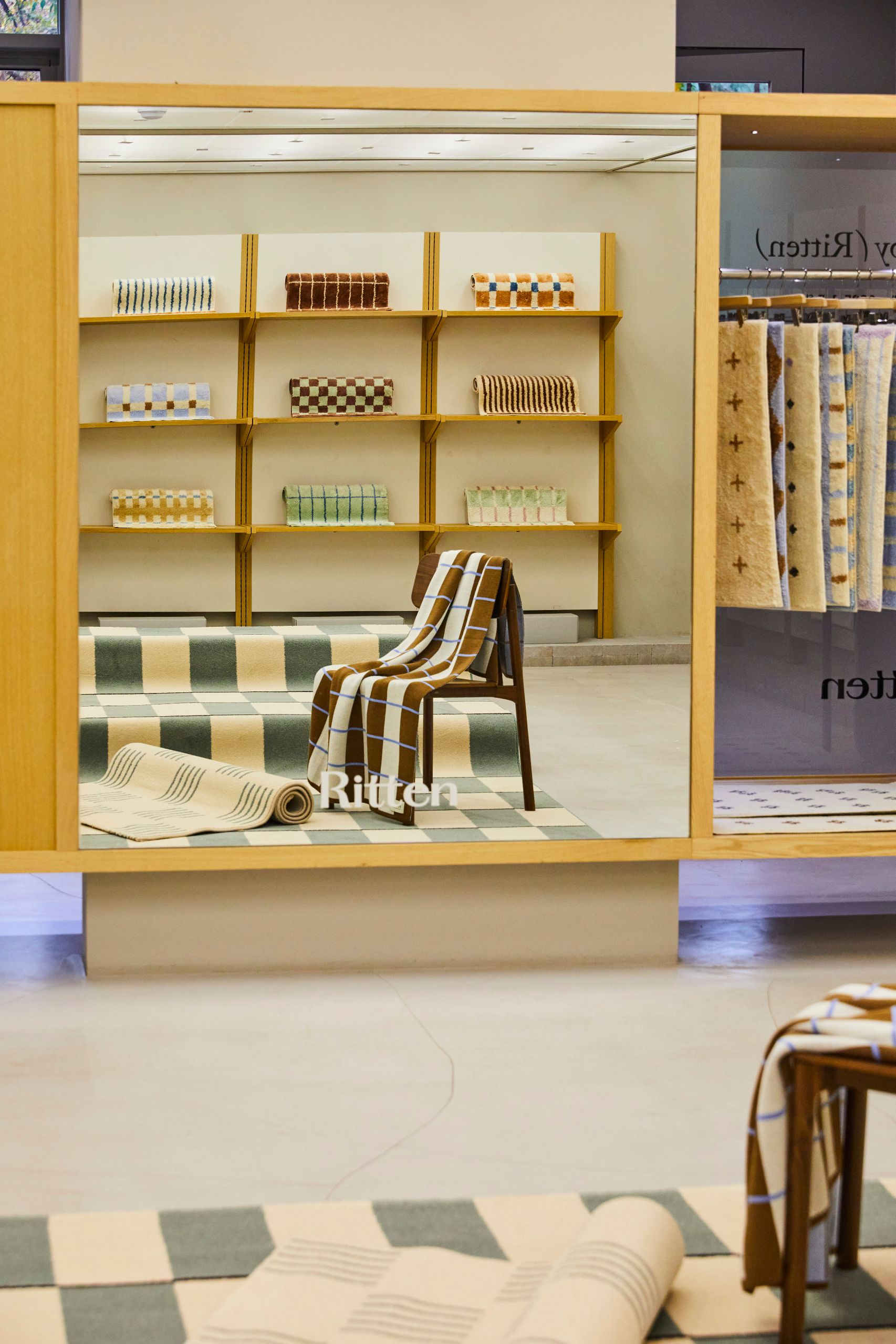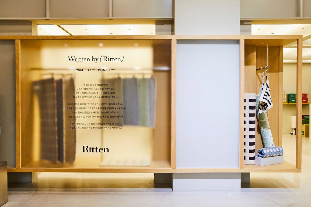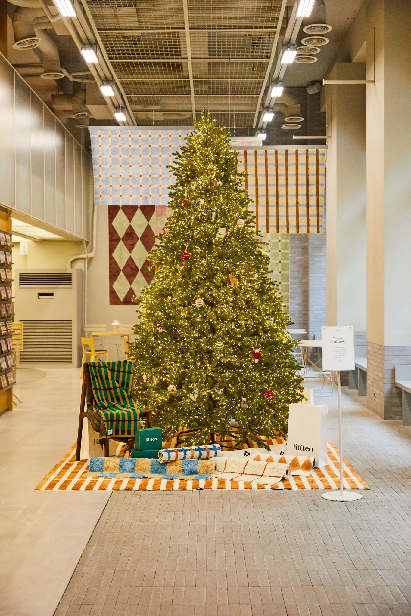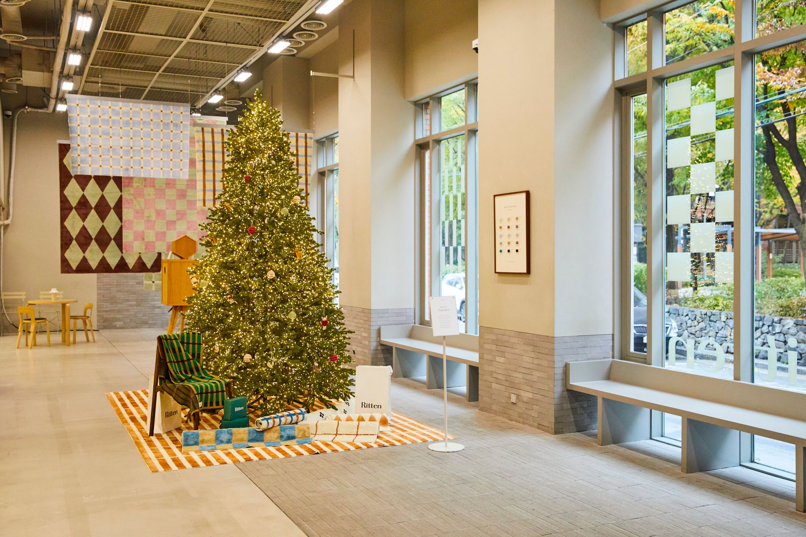 메인 포토 존에서는 리튼의 대형 러그로 홀리데이 무드가 가득하며, 신규 및 베스트 캐리오버 아이템이 준비된 쇼룸이 마련되어 있습니다.