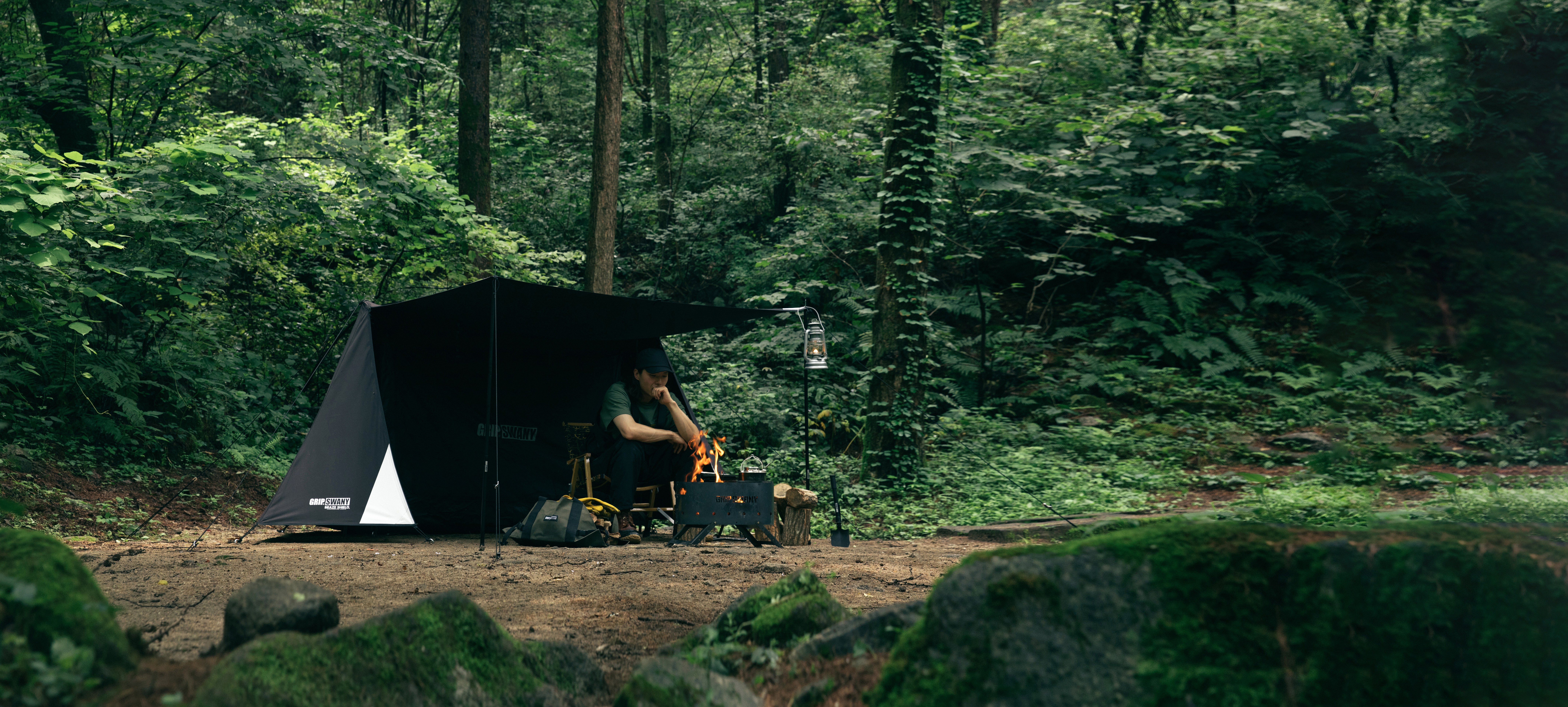 텐트를 세우고 장작과 페더스틱을 만들어 불을 피웁니다. 모든 것이 나의 손을 거쳐 탄생합니다. 이곳은 내가 구축한 아늑한 안식처이자 세계입니다.