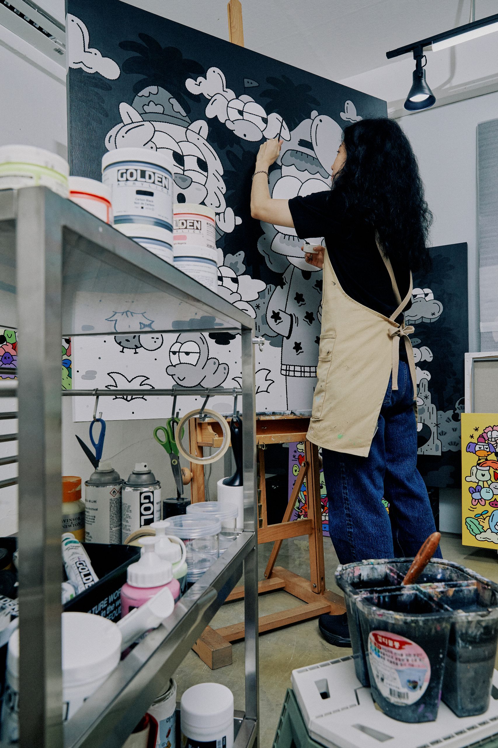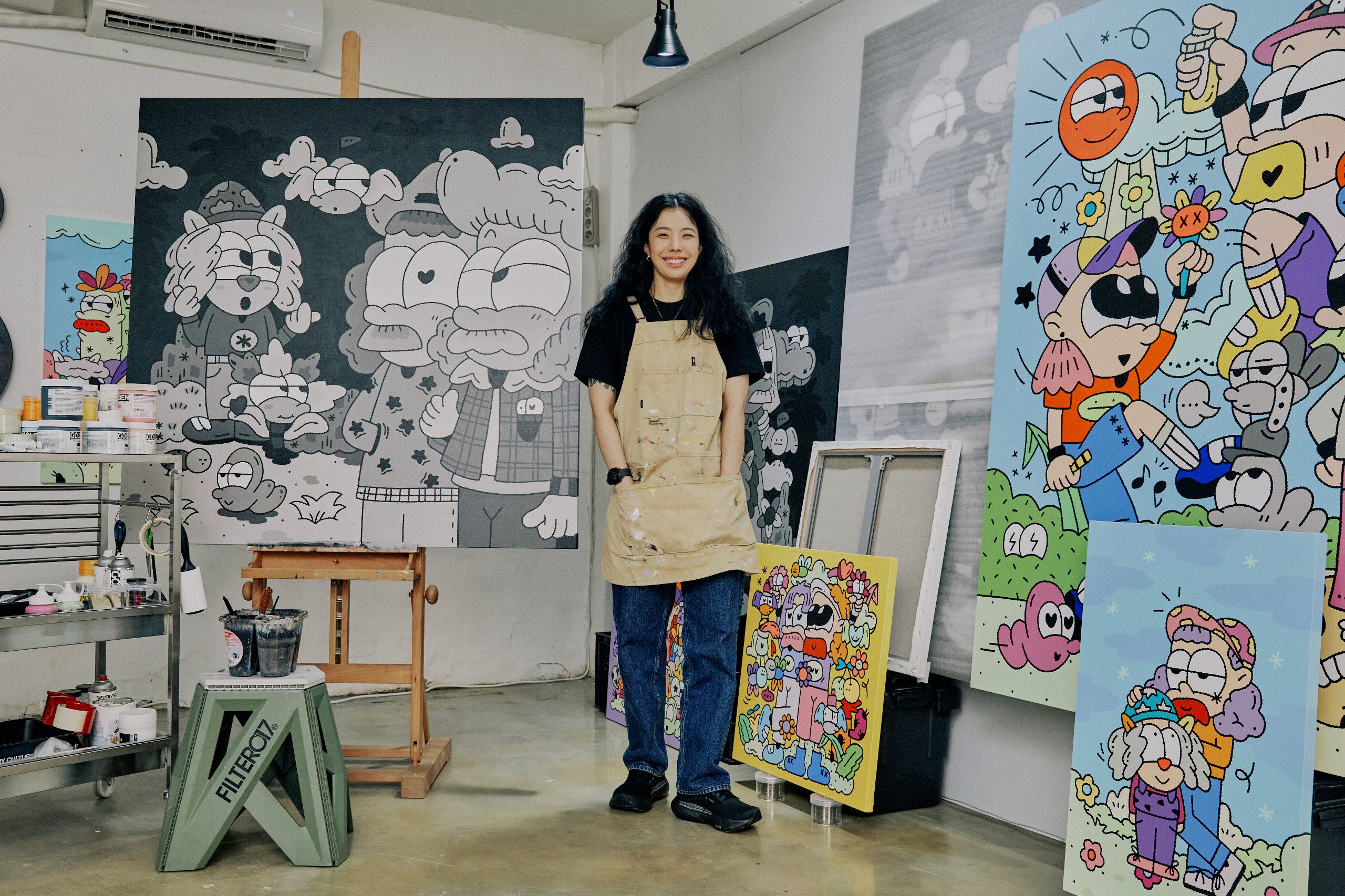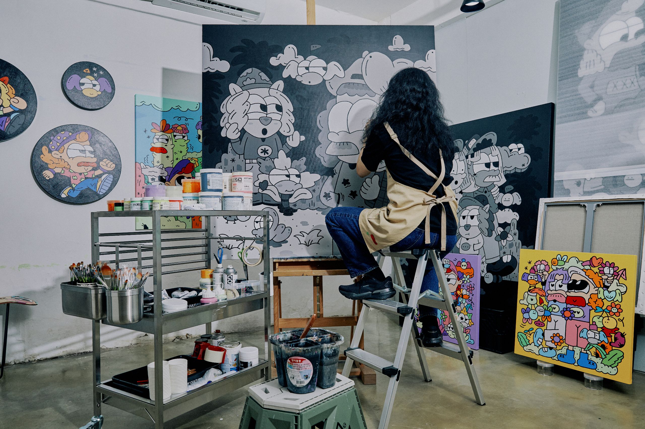 페인터로서 활동한 지는 10년 정도 되었어요. 처음에는 작은 종이나 캔버스에 그림을 그리다가 그래피티와 같은 큰 규모의 작업도 도전하며 활동 영역을 점차 넓혀갔어요. 제가 할 수 있는 모든 것에 도전해 봤던 것 같아요. 그 과정에서 큰 유명 브랜드와 협업할 기회가 생겼고, 이 작업을 통해 제 작품을 널리 알릴 수 있게 되었어요. 이후로도 지속적으로 다양한 작업을 시도했고, 그 과정에서 얻는 성취감과 긍정적인 피드백들이 저를 앞으로 나아가게 만드는 원동력이 되었습니다.