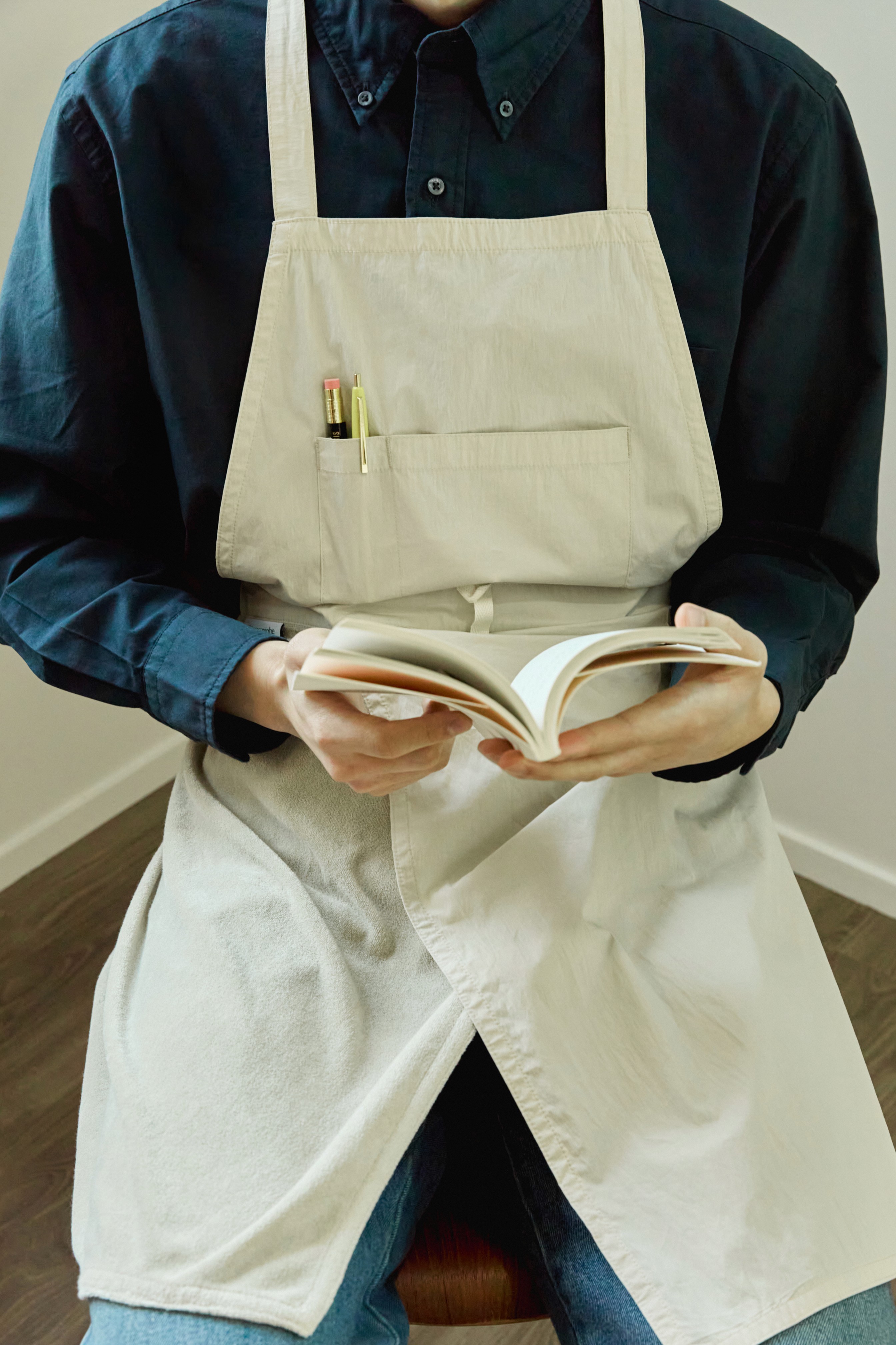 올라운더 에이프런은 앞면에는 부드러운 테리 원단을 덧대어 손을 닦기 위해 수건을 찾는 순간조차 생략할 수 있도록 만들었습니다. 가벼운 원단과 유연한 핏은 움직임을 따라 자연스럽게 흐르며 동선을 방해하지 않습니다.