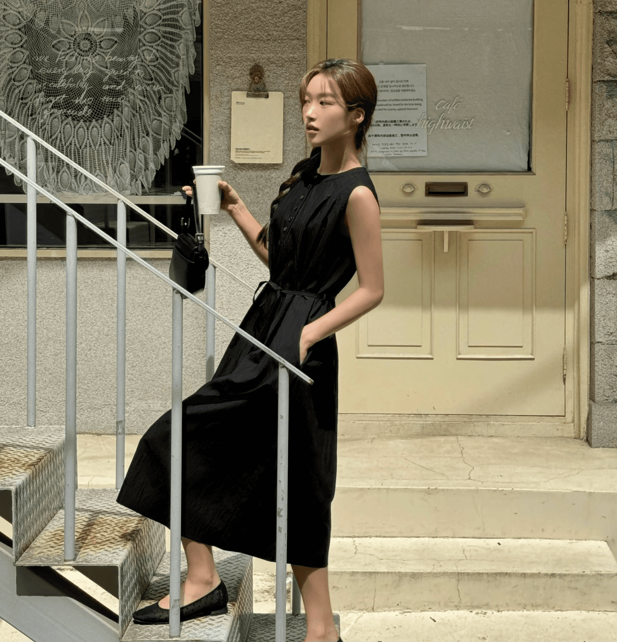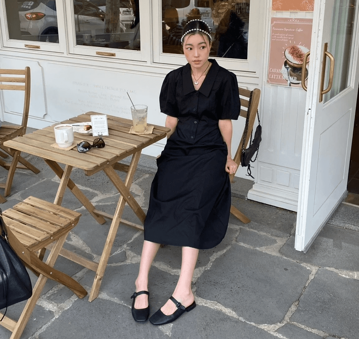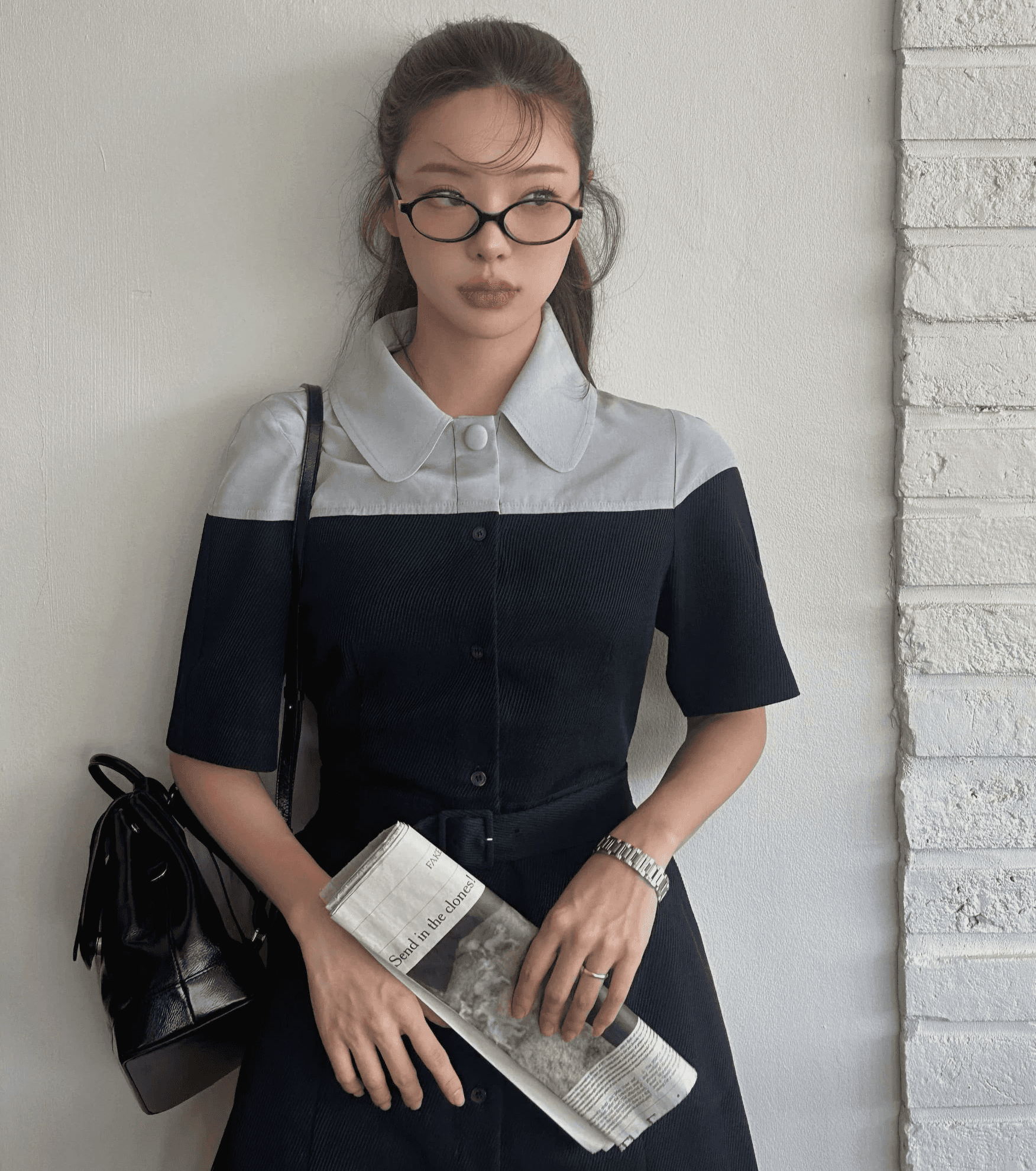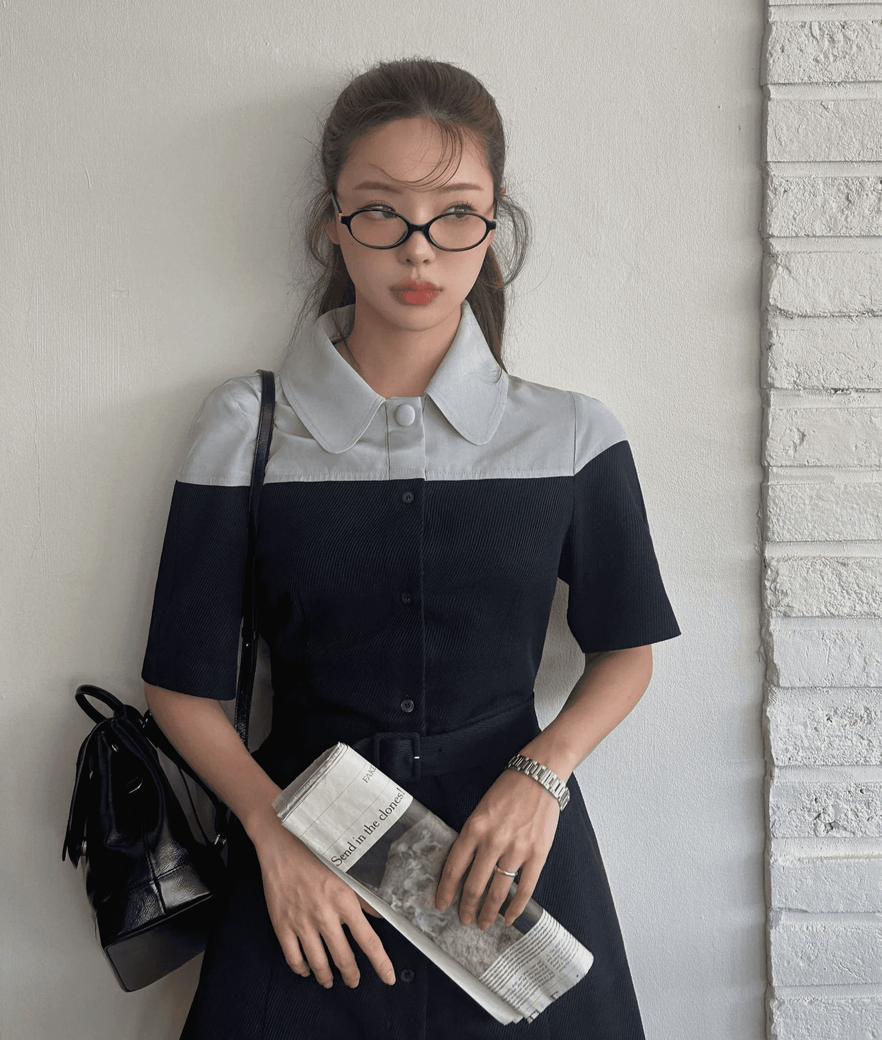 채원이 직접 입고 추천하는 마조네의 크링클 칼라 원피스에요.
