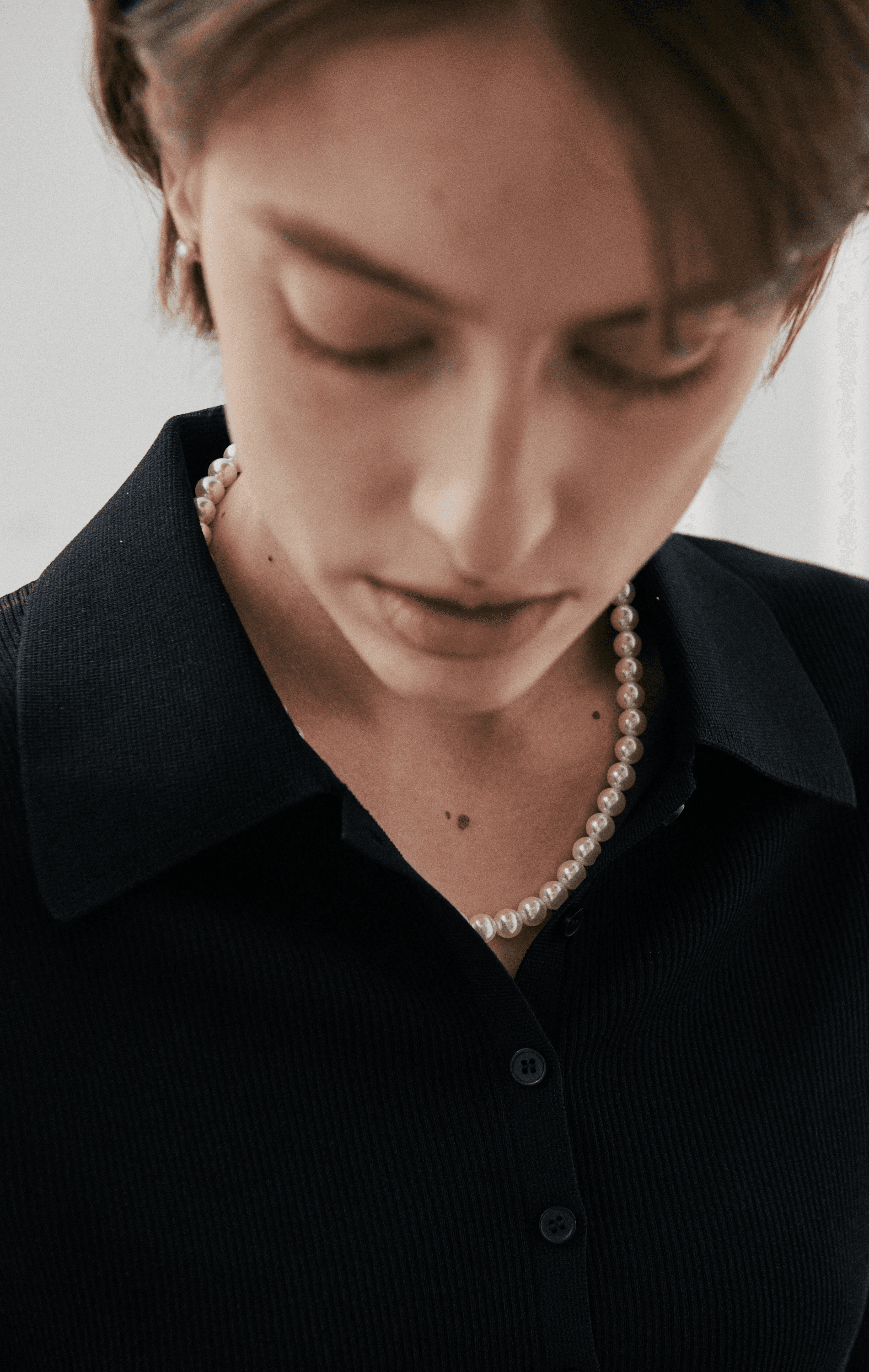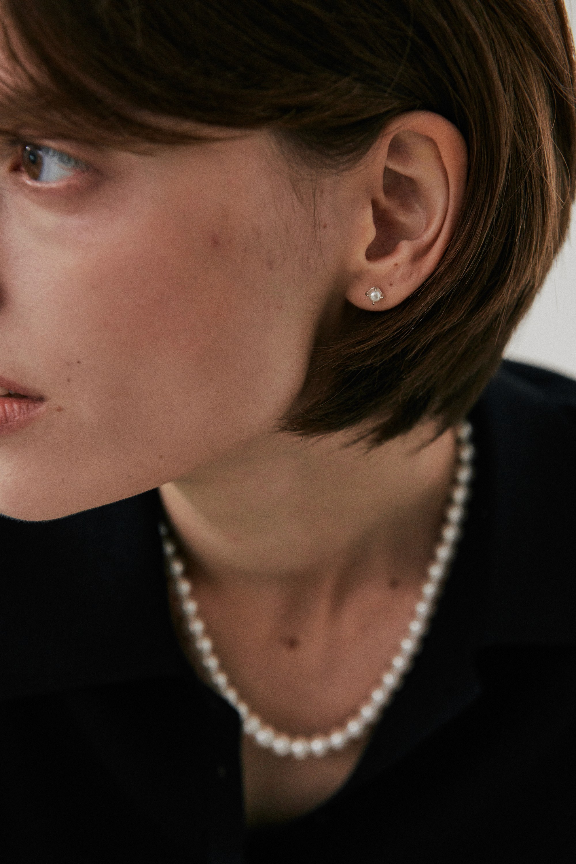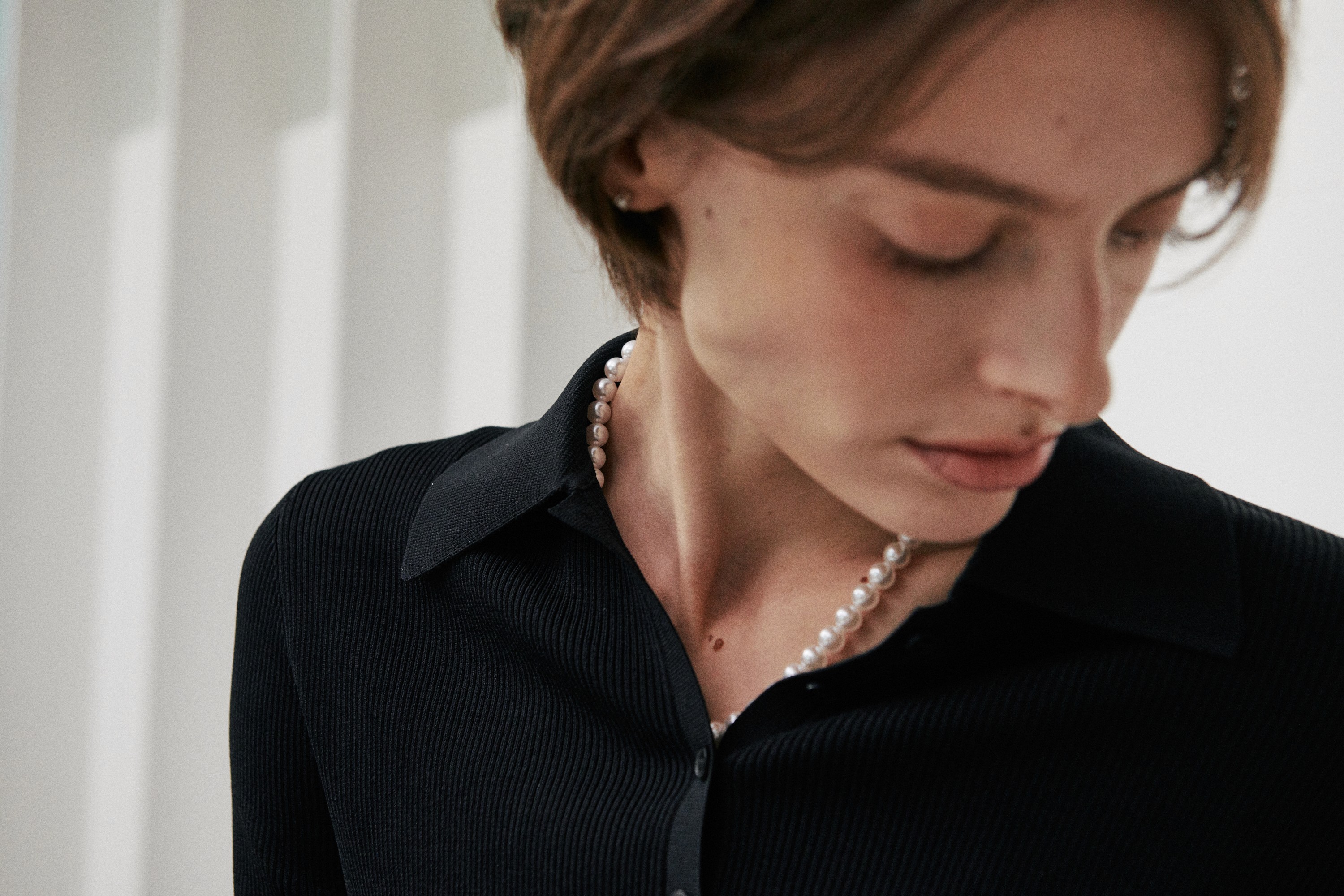 Summer, lightly but with a clear presence. A sense of faintness like the summer air and a clear overlap on top of it. Expressing the space of silhouette between blurriness and clarity. Boldly reduced silver lines, transparently overlapping pearls, bold shapes containing the flow of summer.