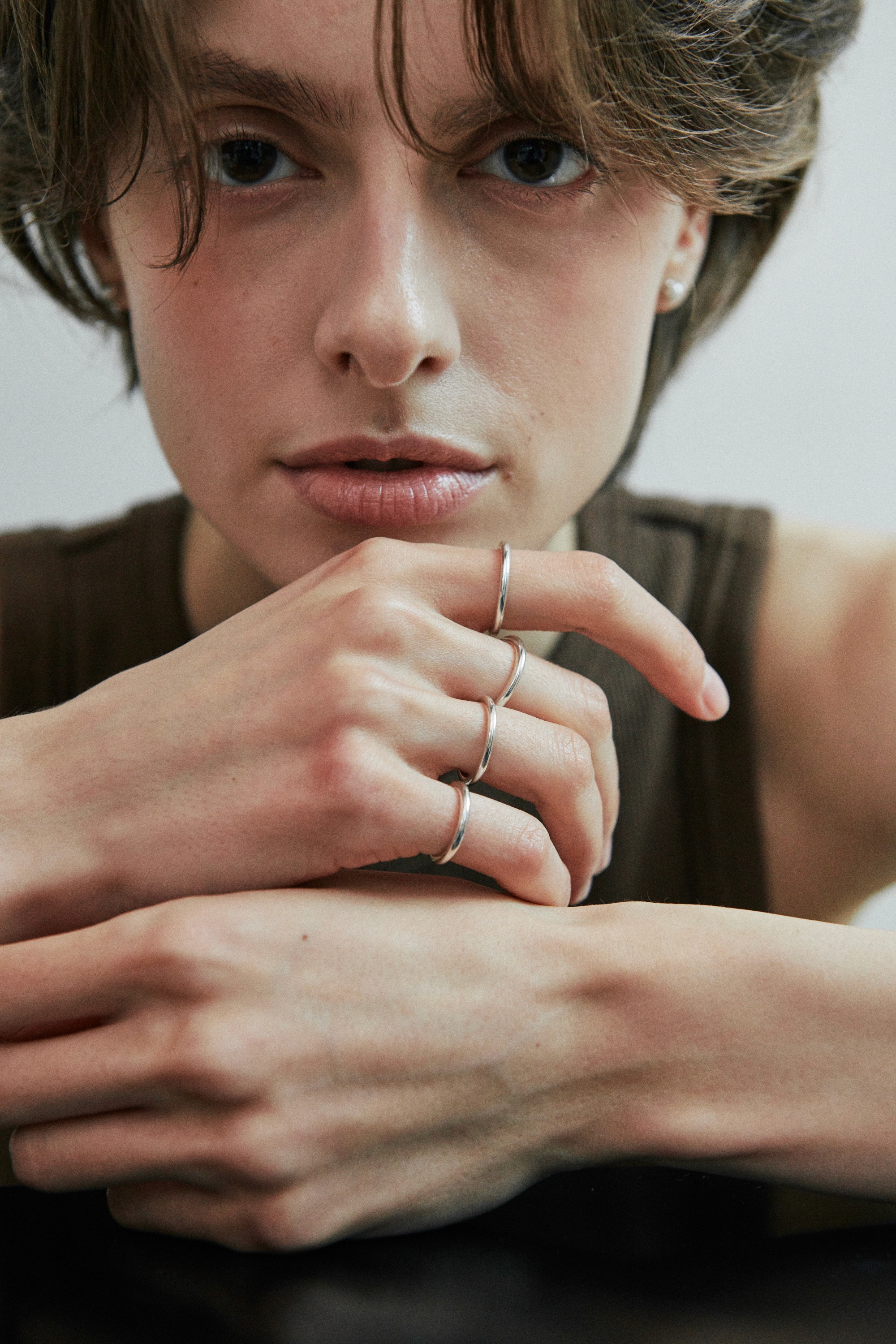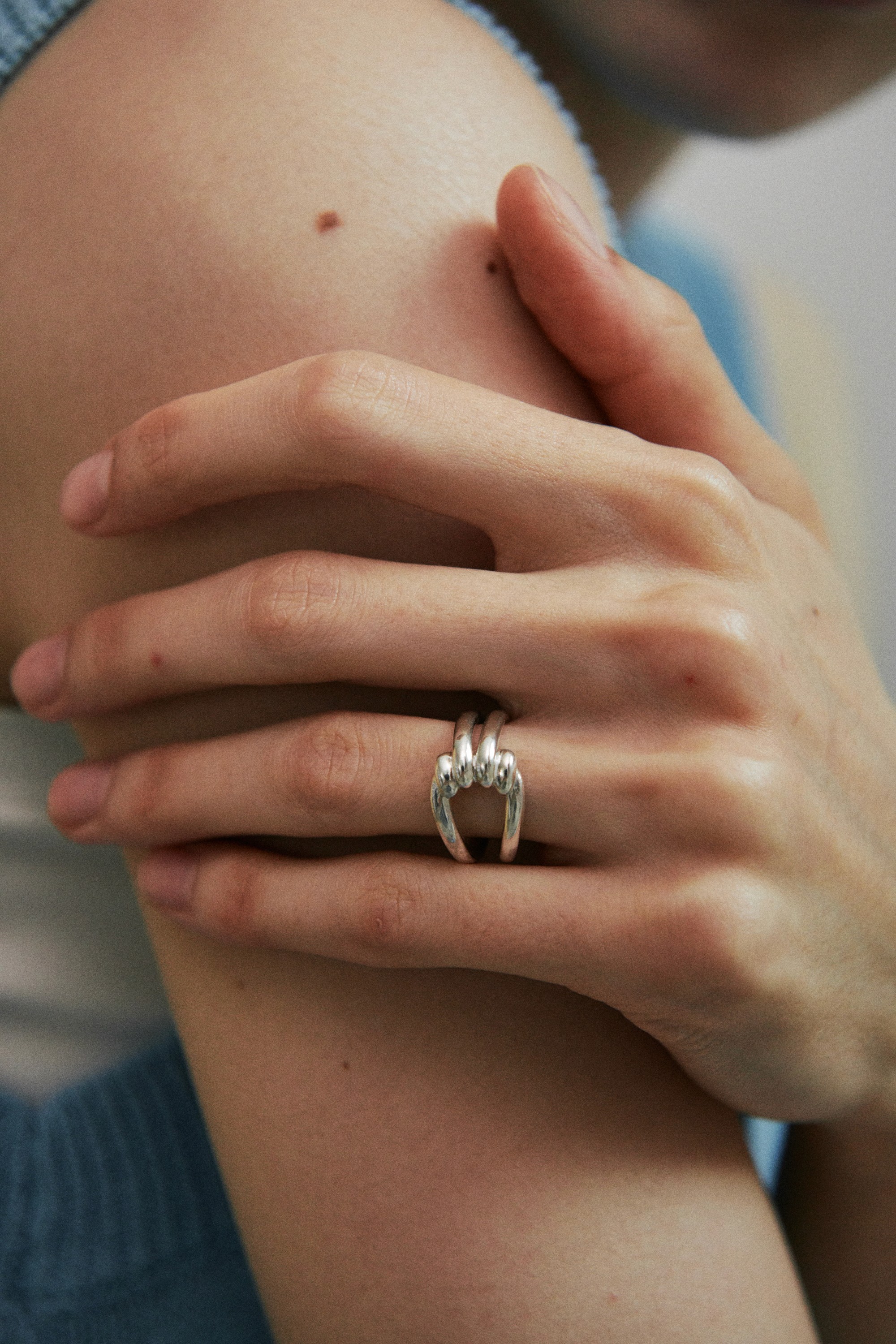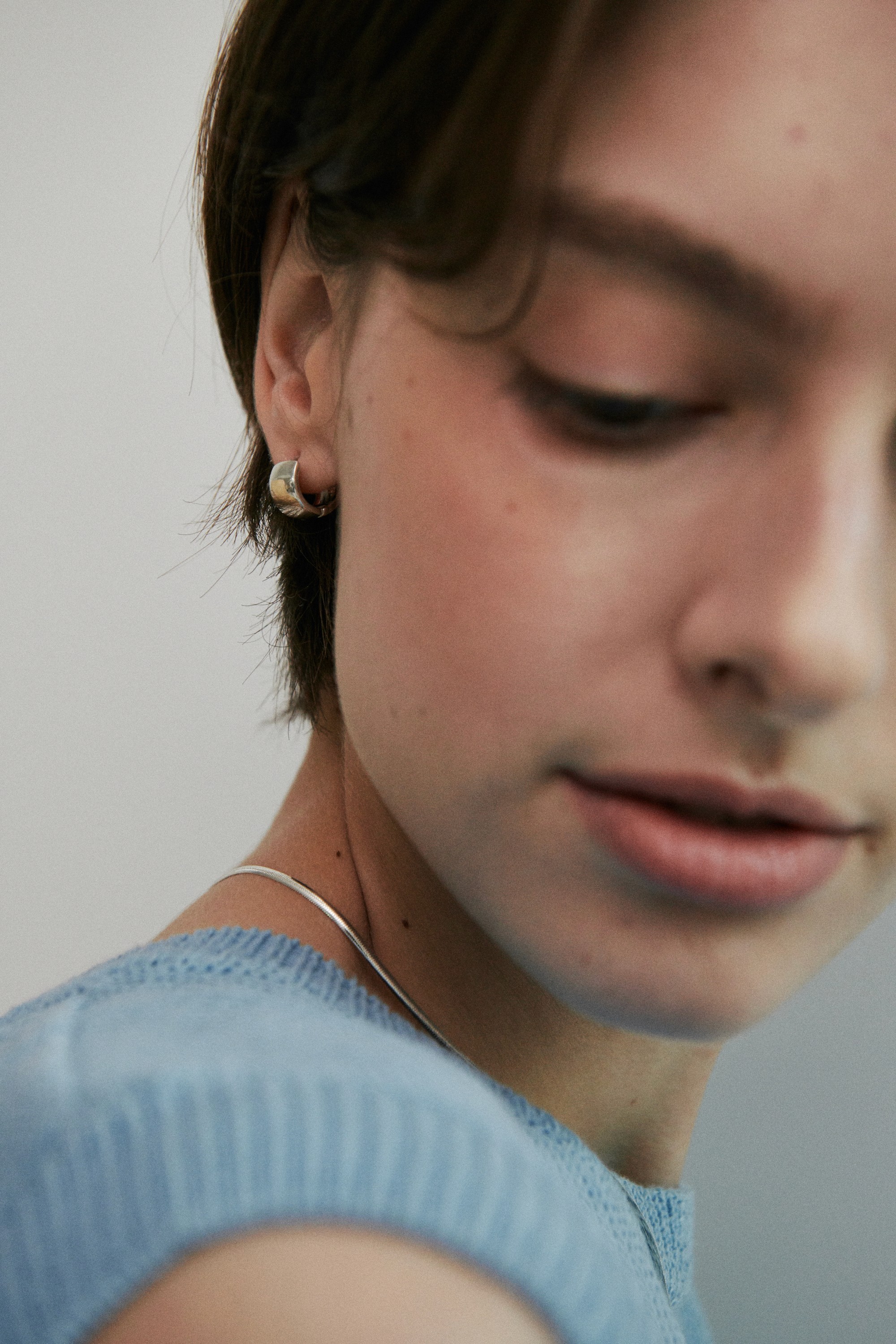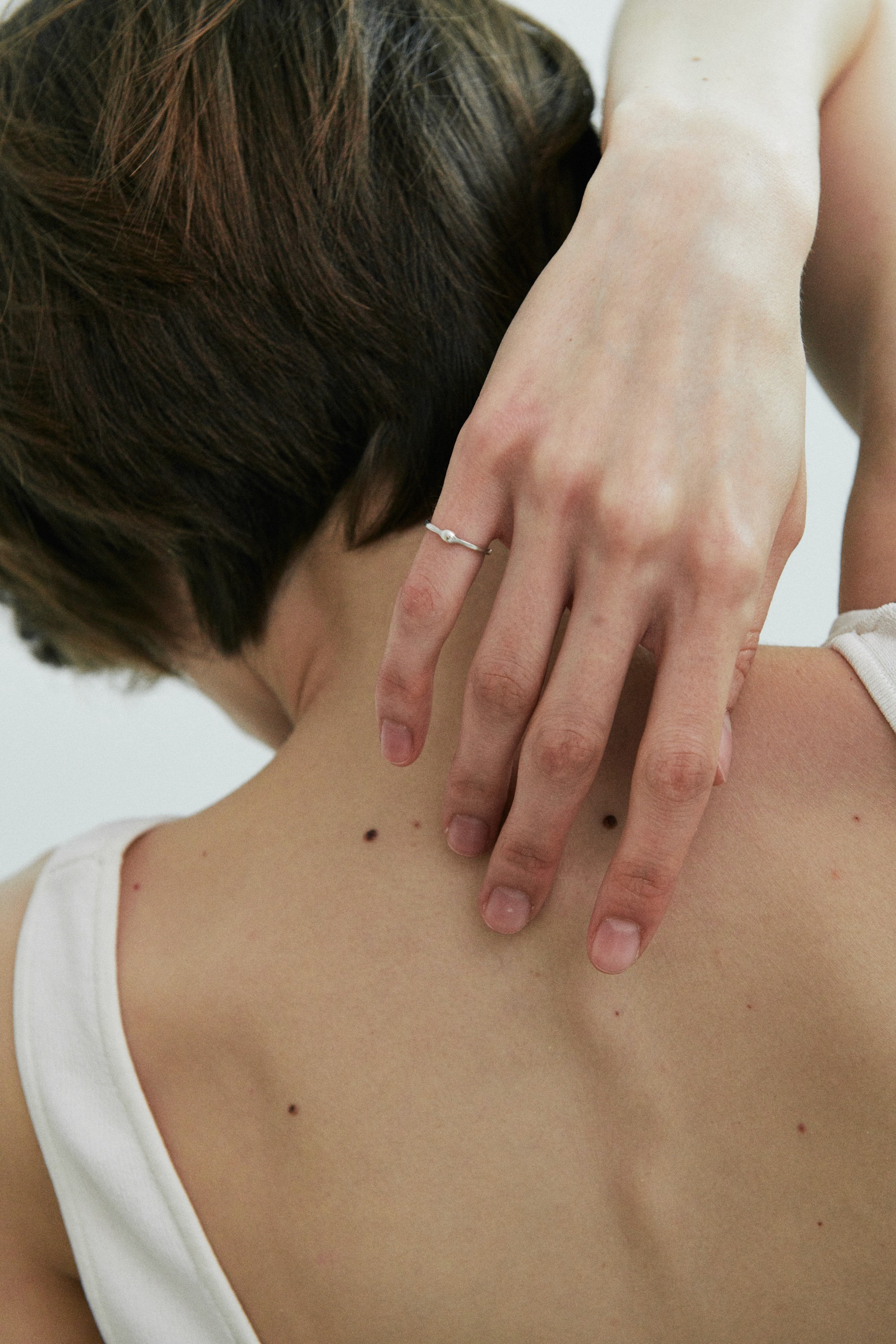 Summer, lightly but with a clear presence. A sense of faintness like the summer air and a clear overlap on top of it. Expressing the space of silhouette between blurriness and clarity. Boldly reduced silver lines, transparently overlapping pearls, bold shapes containing the flow of summer.