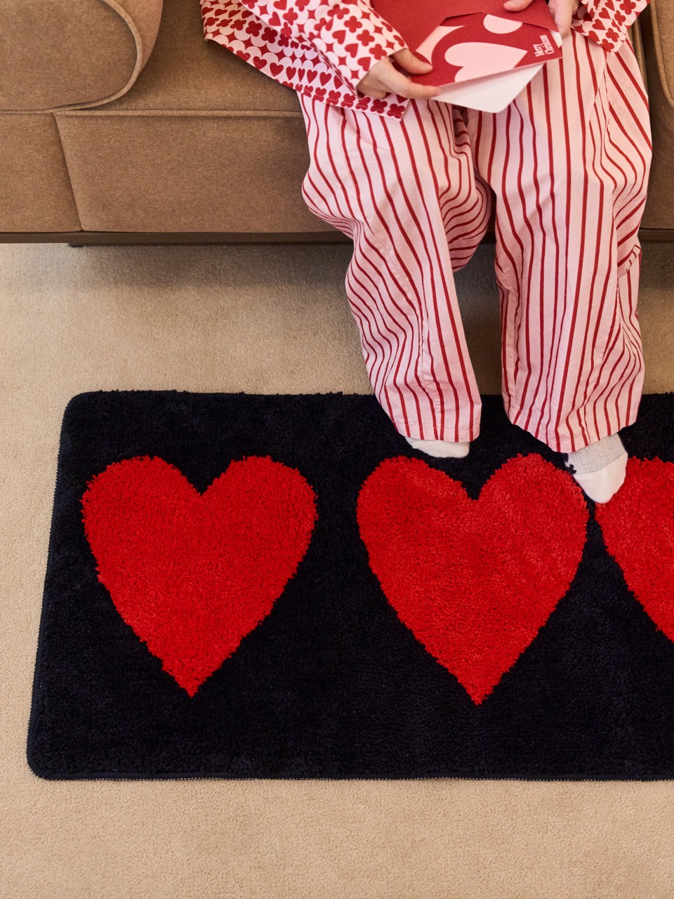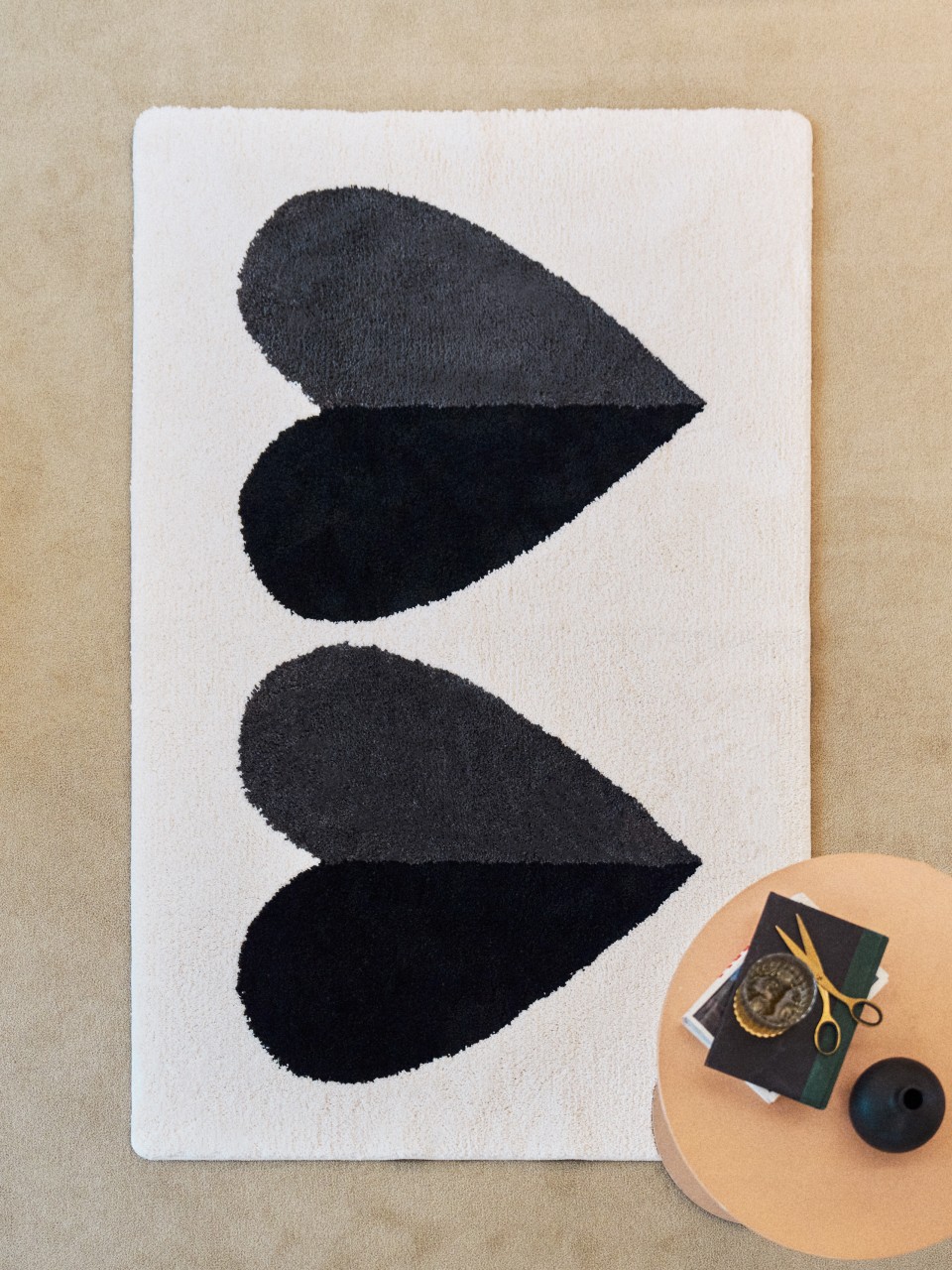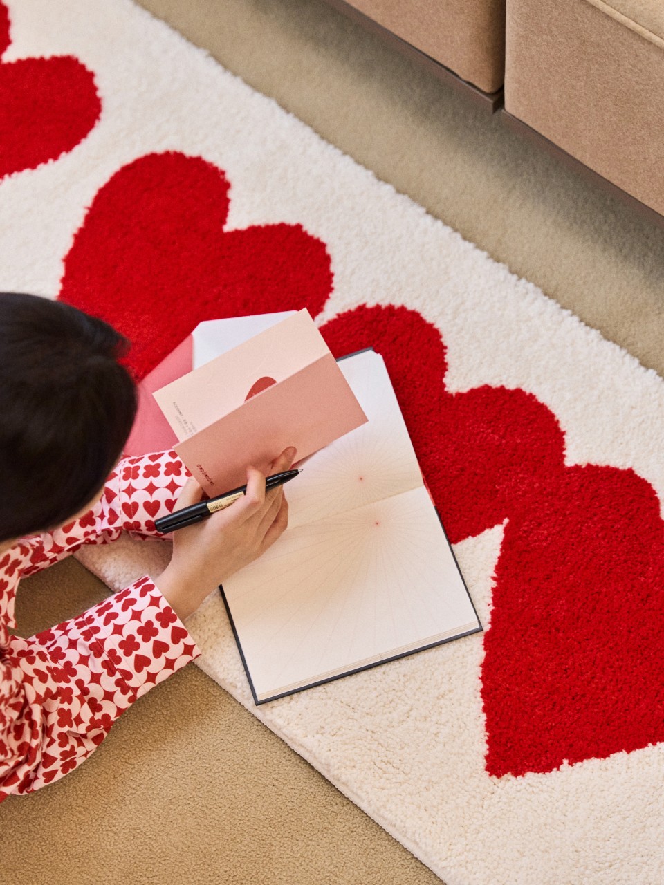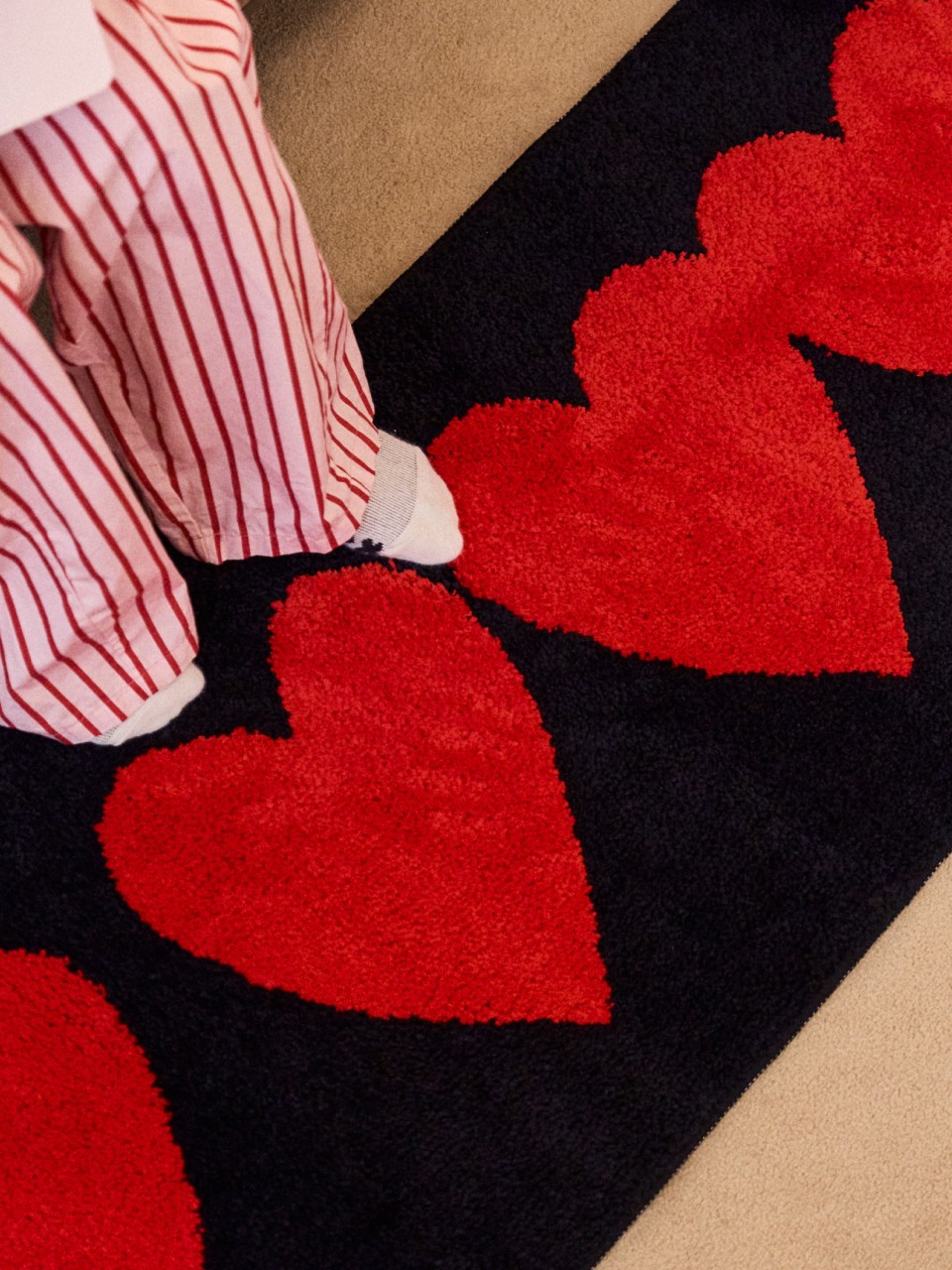 드롭드롭드롭이 전하고 싶은 연결의 순간을 하트 그래픽으로 표현했어요. 어디서든 인테리어의 중심이 되어줄 러그를 소개해요.