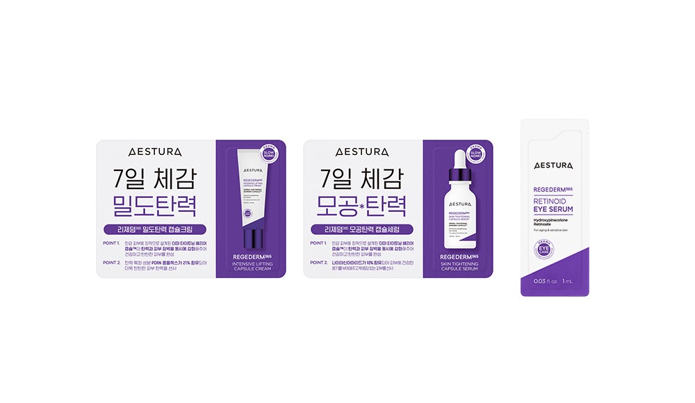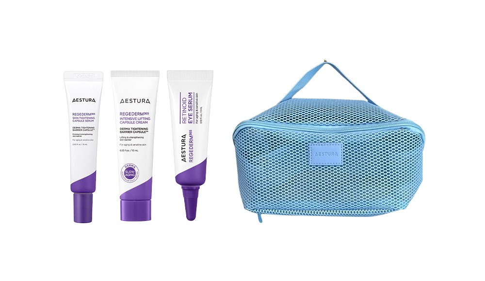 사은품 I 리제덤 365 캡슐세럼 15ml, 리제덤 365 밀도탄력 캡슐크림 10ml, 리제덤 365 레티노이드 아이세럼 3ml, 에스트라 메이크업 메쉬 파우치 1개 기간 I 2025. 11. 3. - 11. 16.
