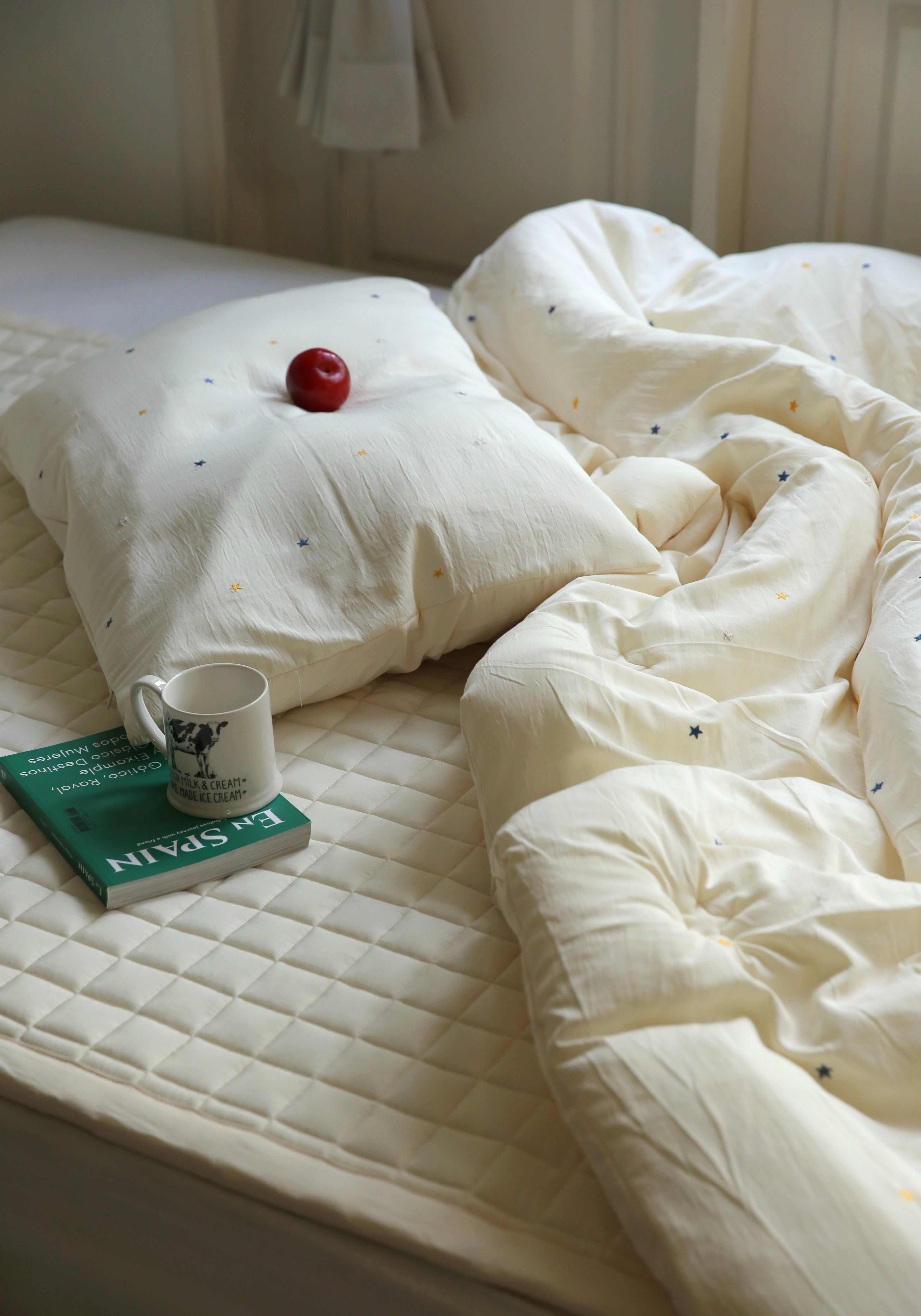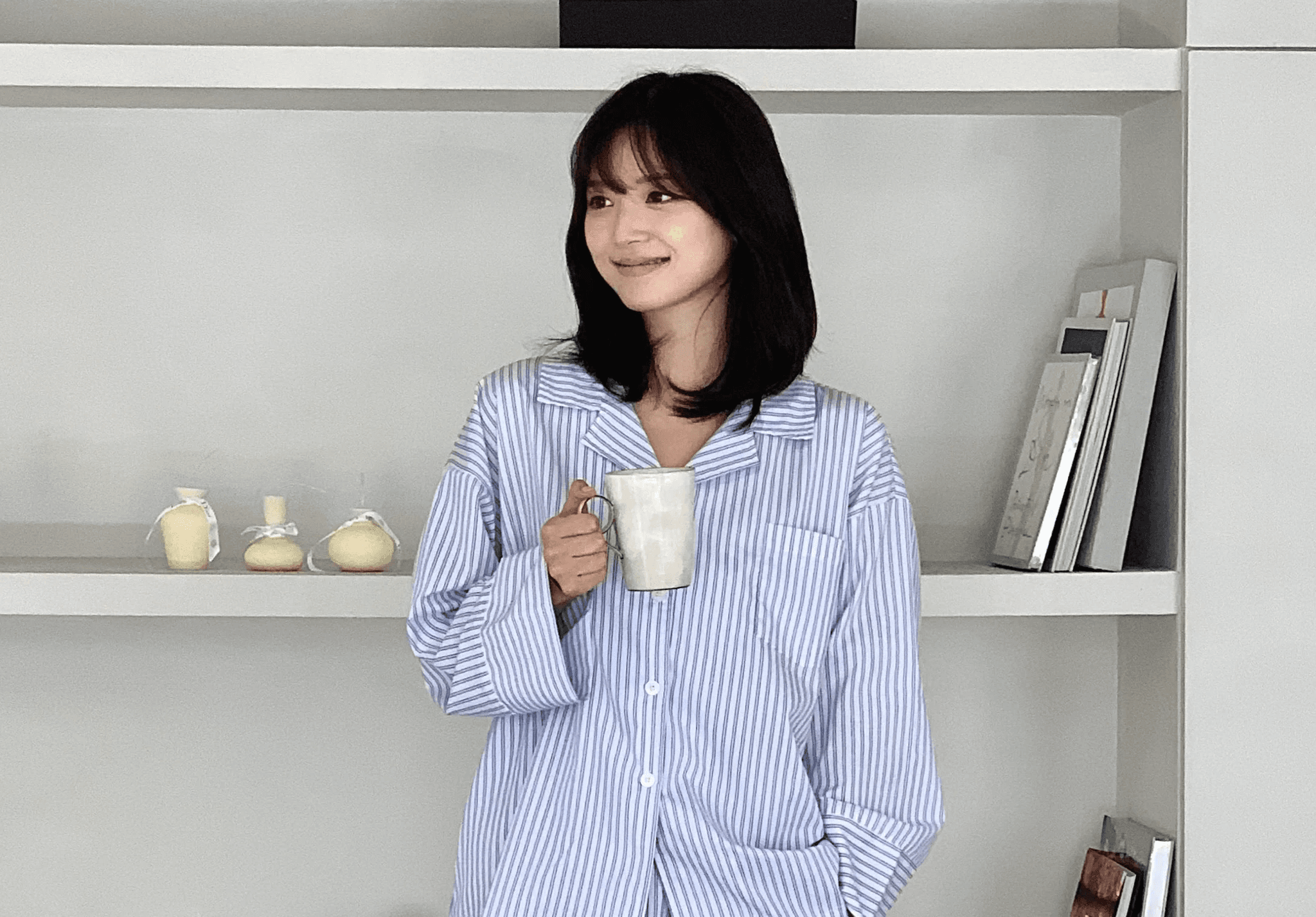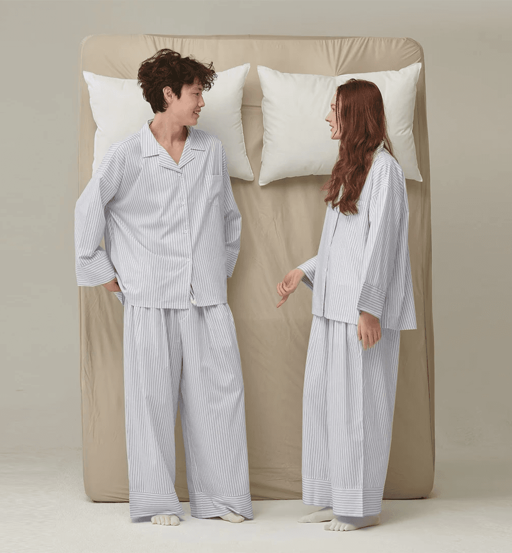 부드럽고 차분한 느낌의 파자마 입고 폭닥한 이불과 러그 사이에서 가을 감성 느끼기