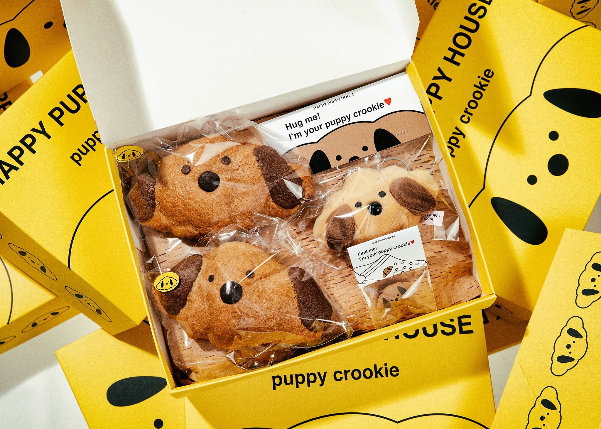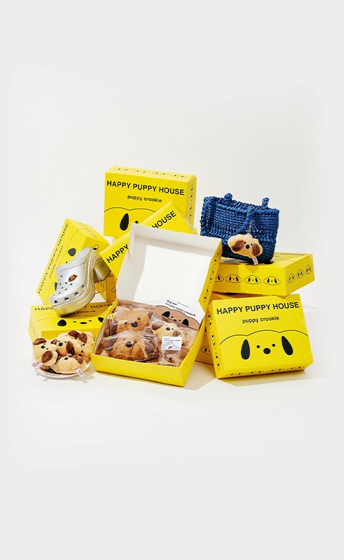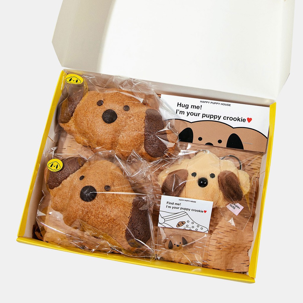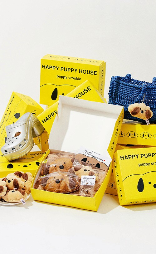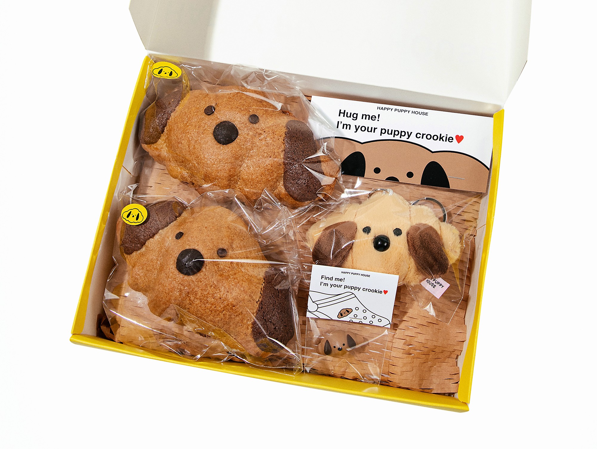 행복을 선물하는 베이커리 기프트숍 해피퍼피하우스에서 인기 디저트 메뉴인 퍼피 크루키와 더불어 새로운 퍼피 키링, 퍼피 해피참 굿즈를 패키지로 선보입니다.