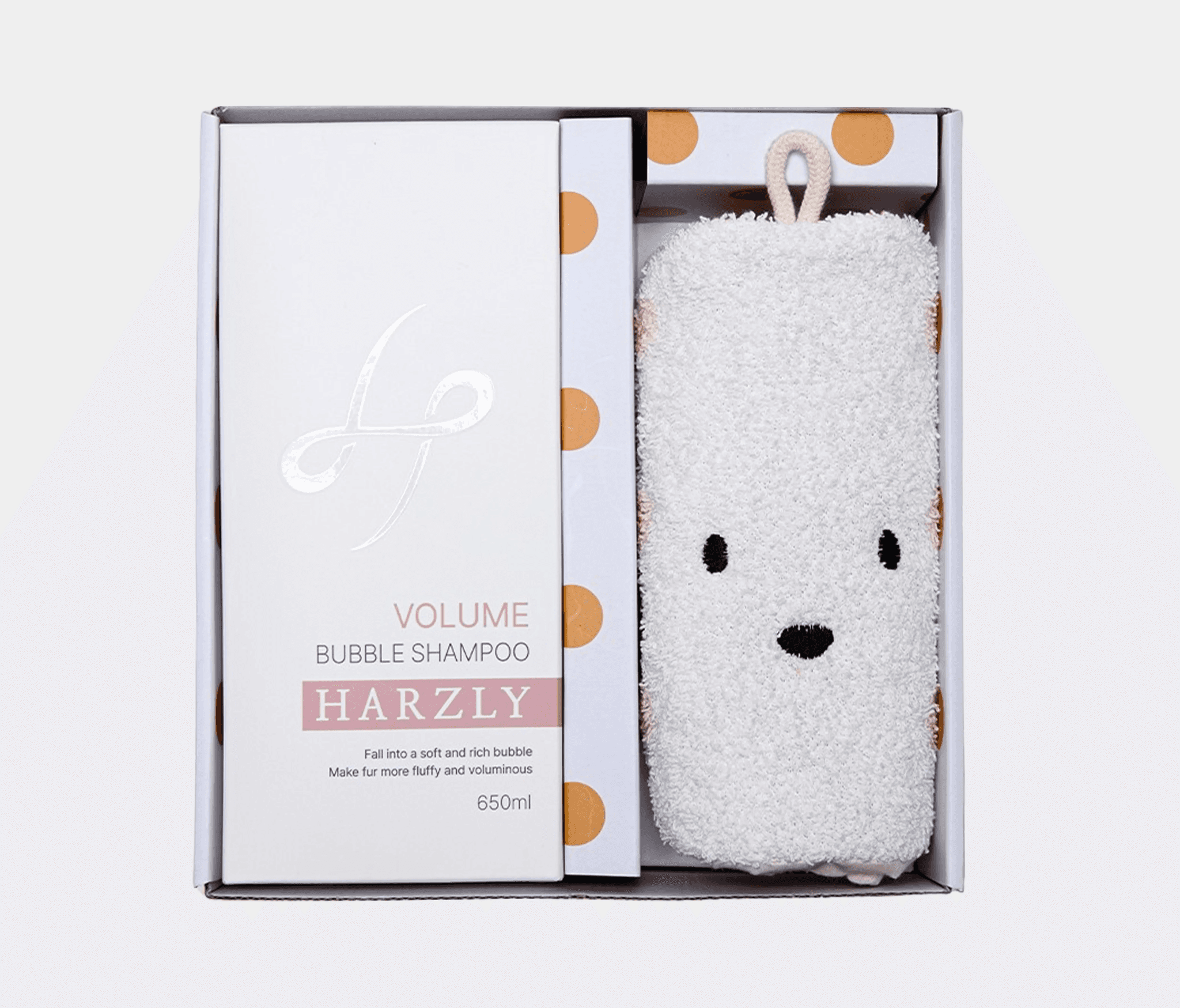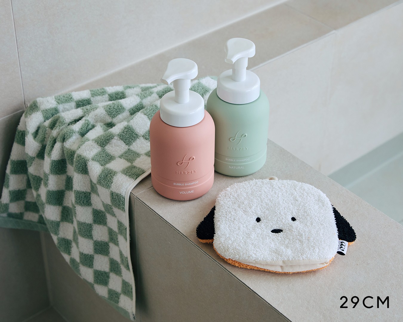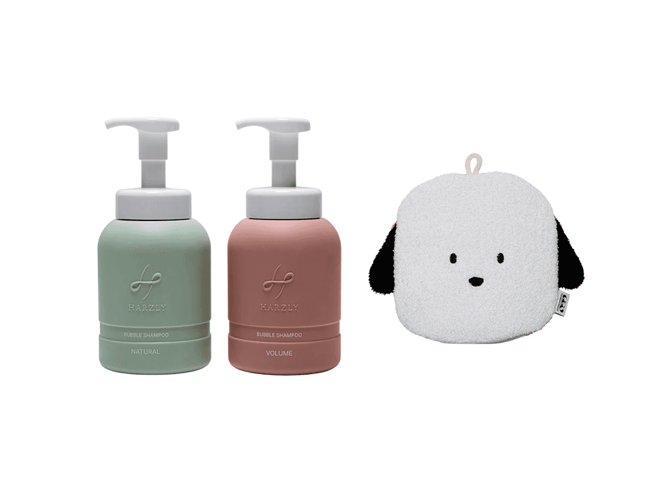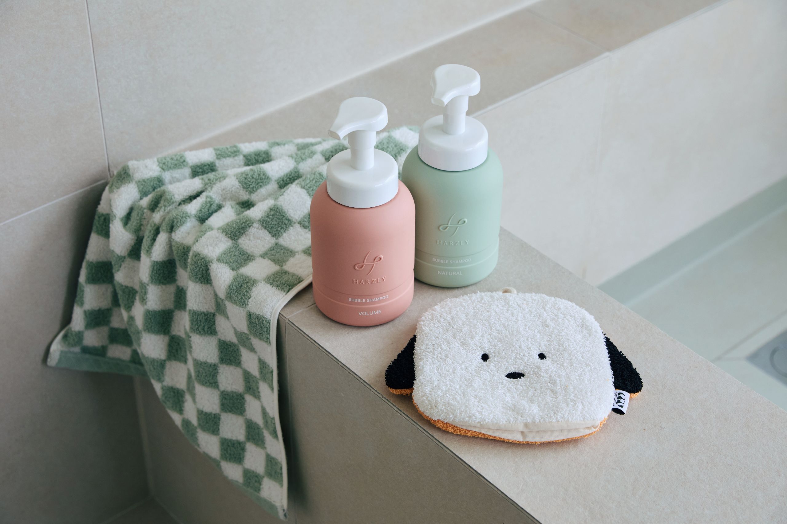 하즐리의 버블 샴푸와 고그린 오브젝트의 발 타월로 산책 루틴을 산뜻하게 완성해 보세요.