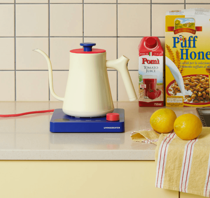 안 좋아할 수가 없는 컬러 조합으로, 주방의 포인트가 되는 아이템. 차 마실 때, 물 끓일 때 신나는 기분!
