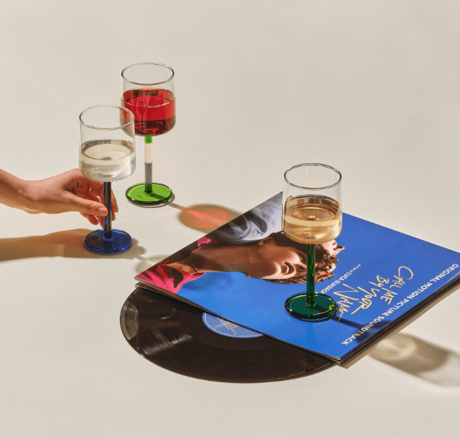 세상에 단 하나뿐인 핸드메이드 와인 잔. 다채로운 컬러를 세련된 조합으로 맞추면 특별한 식사를 만들 수 있어요.