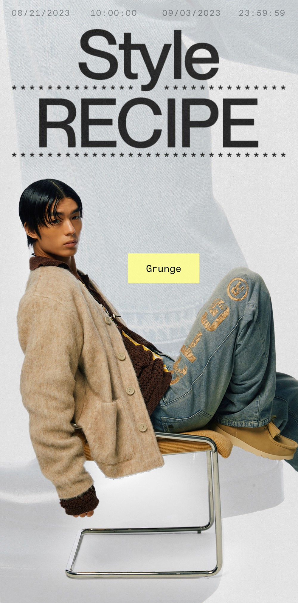 반항기 가득한 그런지 룩이 다시 트렌드로 급부상 중입니다. 그런지의 아이콘 하면 록 밴드 '너바나'의 보컬 커트 코베인이 절로 연상되죠. 그는 빈티지한 카디건, 늘어난 티셔츠, 물 빠진 청바지, 플란넬 셔츠와 같은 아이템을 즐겨 입었습니다. 스트리트부터 캐주얼한 스타일까지 아우르는 그런지 룩은 그처럼 무심한 듯 쿨한 애티튜드를 장착해야 비로소 완성되죠. 자신만의 개성을 드러내고 싶다면 현대판 그런지 룩에 도전해보세요.