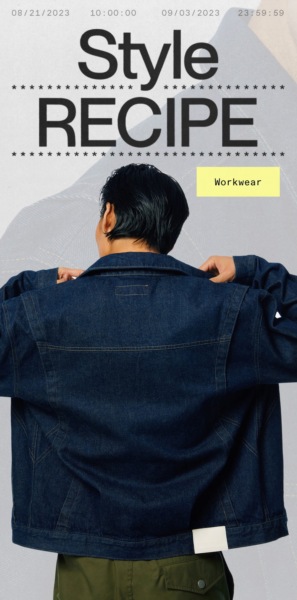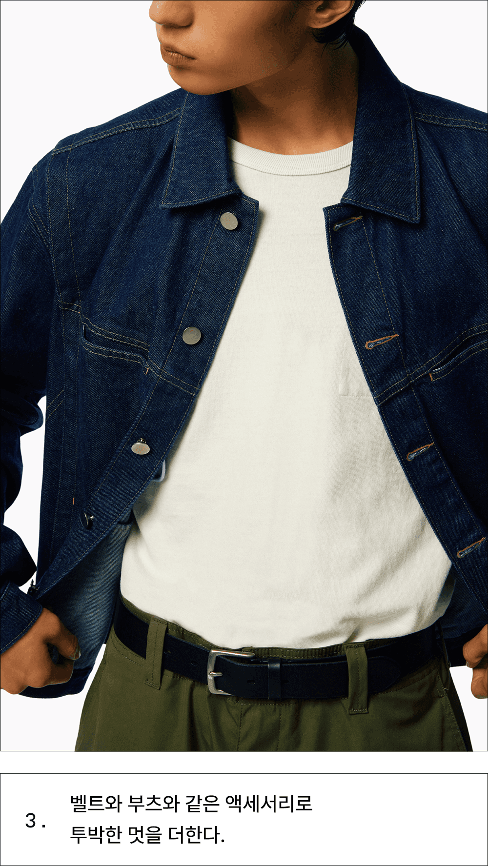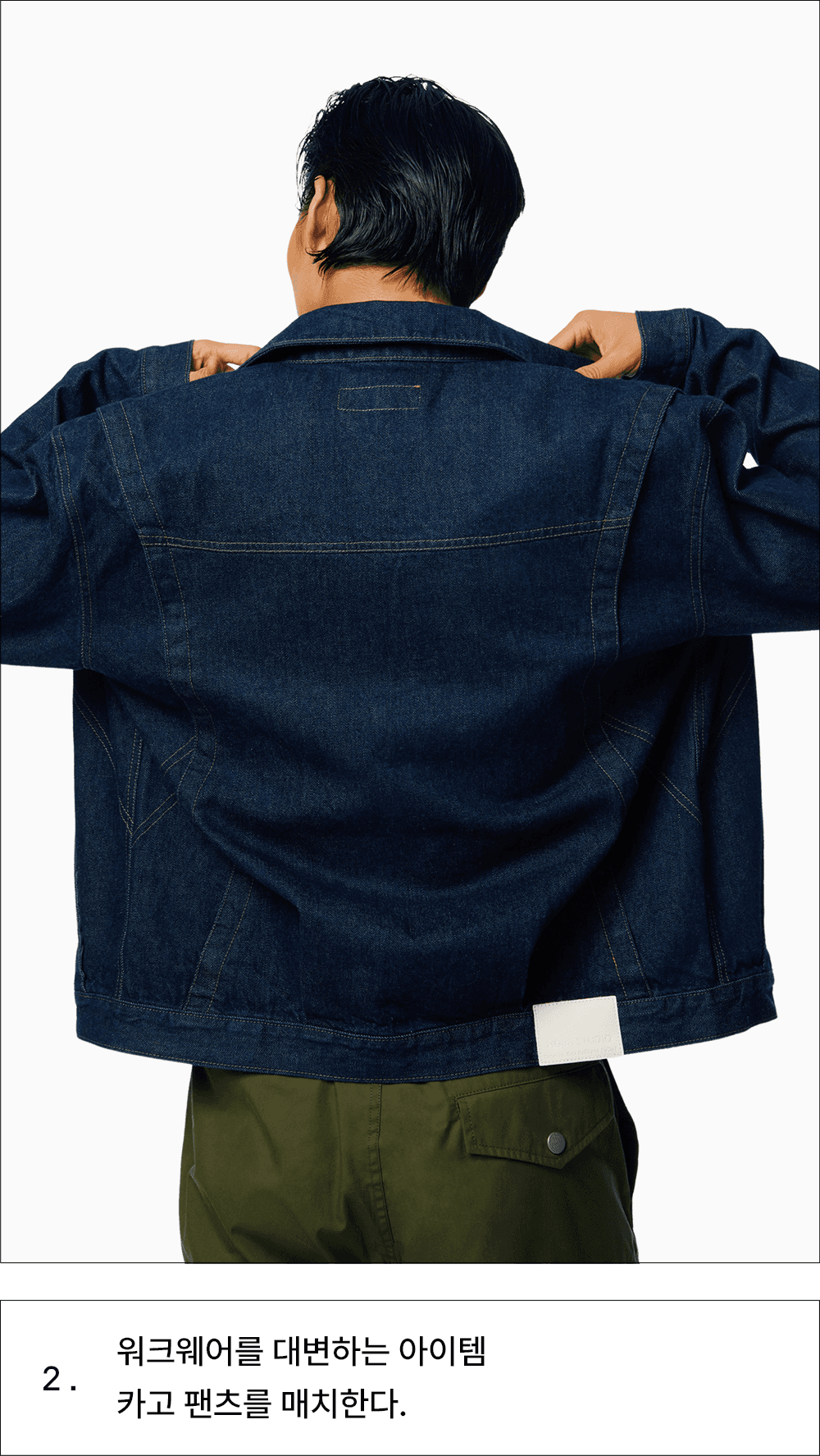 워크웨어 스타일은 1910년대부터 미국 지역에서 노동자들이 즐겨 입는 것에서 유래했습니다. 말 그대로 일할 때 입는 작업복을 뜻하기 때문에 불편함이 없고 쉽게 상하지 않는 내구성이 우수한 원단을 사용하고, 다양한 소지품을 수납할 수 있는 포켓이 장착되어 있는 게 특징입니다. 데님 재킷, 데님 팬츠, 카고 팬츠, 부츠 등은 워크웨어 스타일을 대변하는 아이템이죠. 일터의 분위기를 그대로 자아내는 거칠고 투박한 워크웨어의 멋을 완성해보세요.