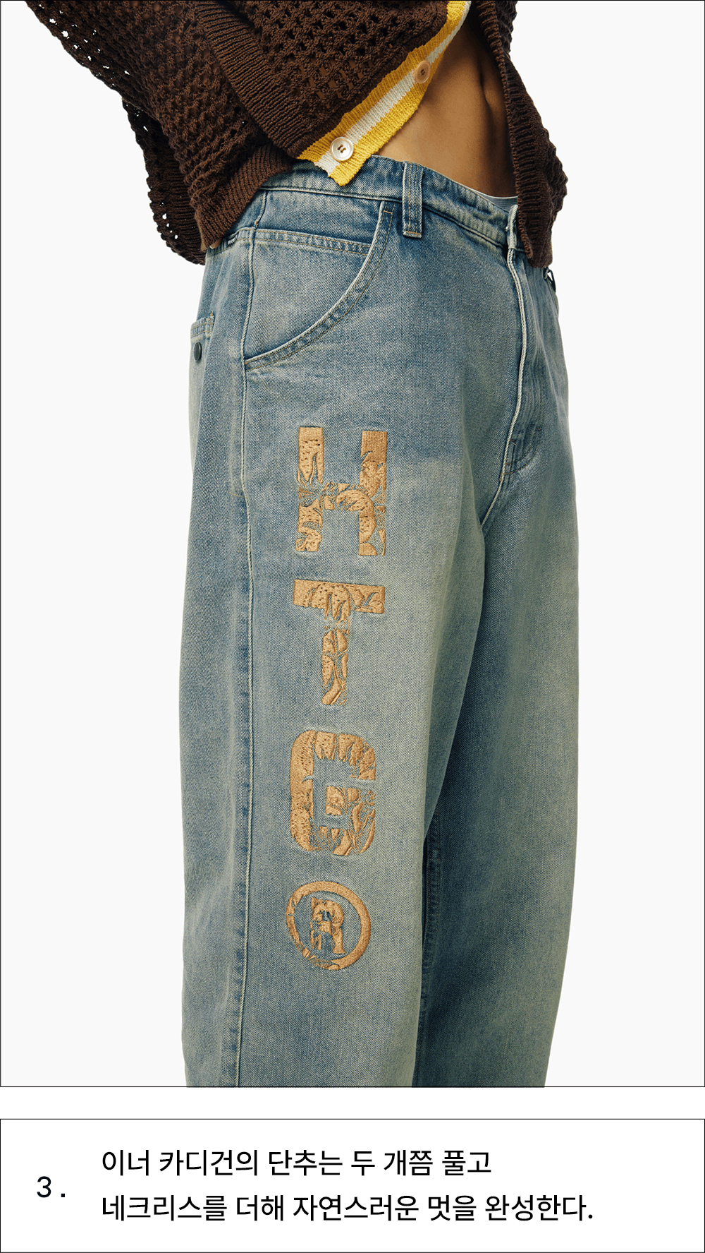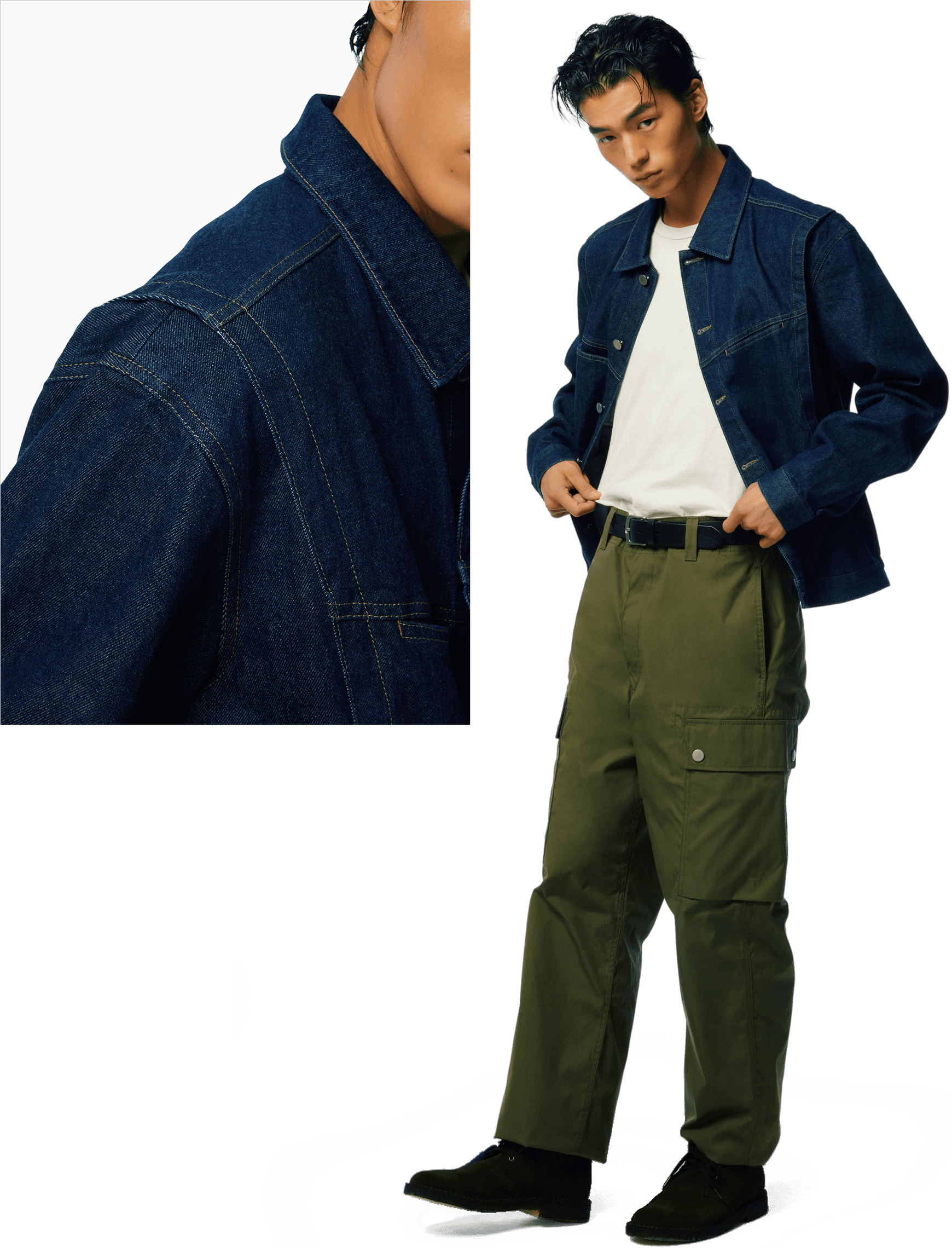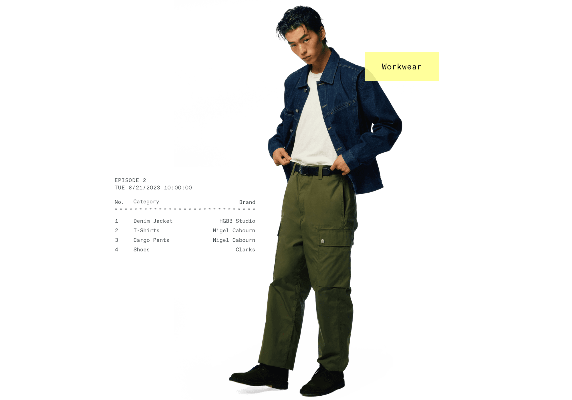 워크웨어 스타일은 1910년대부터 미국 지역에서 노동자들이 즐겨 입는 것에서 유래했습니다. 말 그대로 일할 때 입는 작업복을 뜻하기 때문에 불편함이 없고 쉽게 상하지 않는 내구성이 우수한 원단을 사용하고, 다양한 소지품을 수납할 수 있는 포켓이 장착되어 있는 게 특징입니다. 데님 재킷, 데님 팬츠, 카고 팬츠, 부츠 등은 워크웨어 스타일을 대변하는 아이템이죠. 일터의 분위기를 그대로 자아내는 거칠고 투박한 워크웨어의 멋을 완성해보세요.