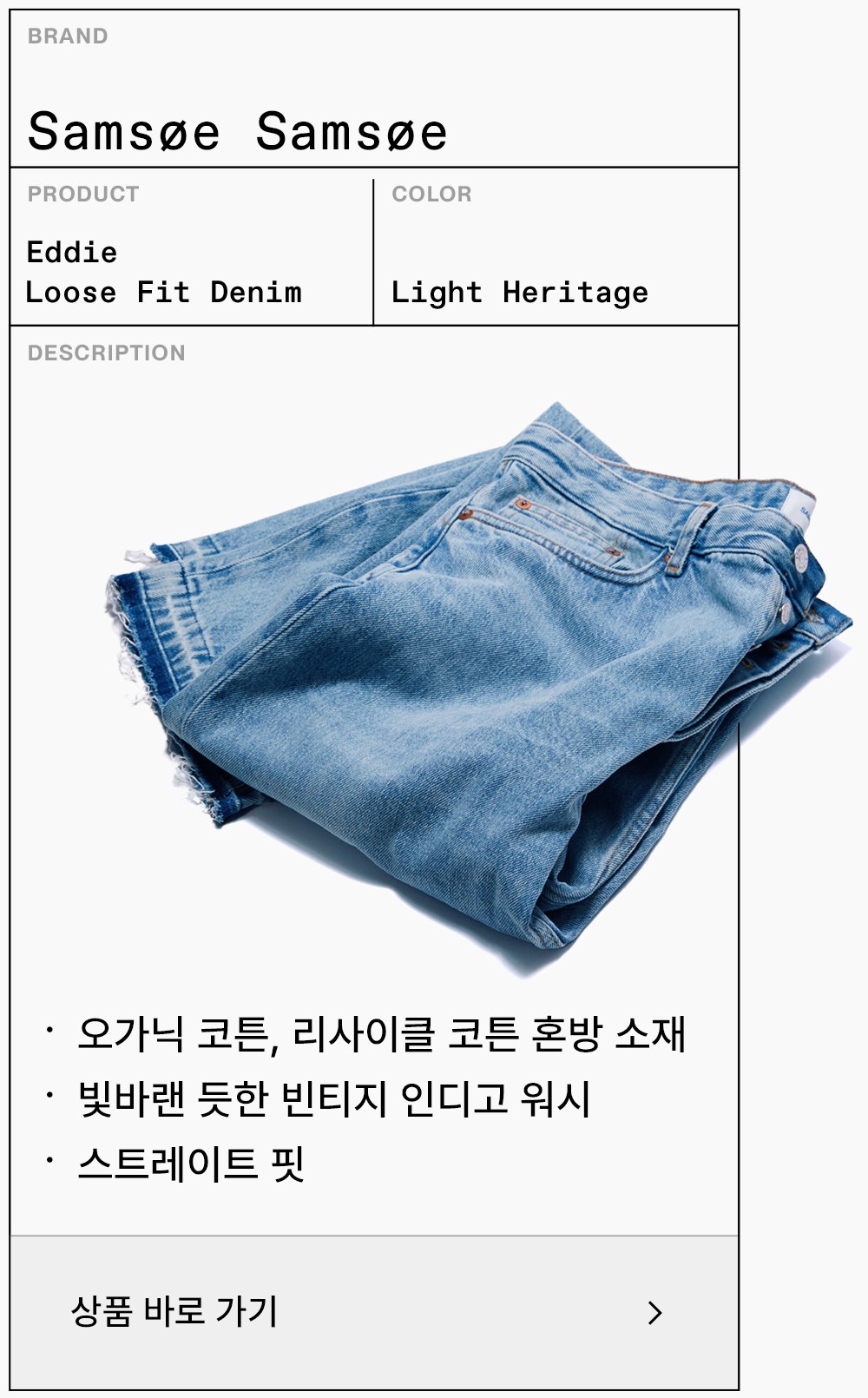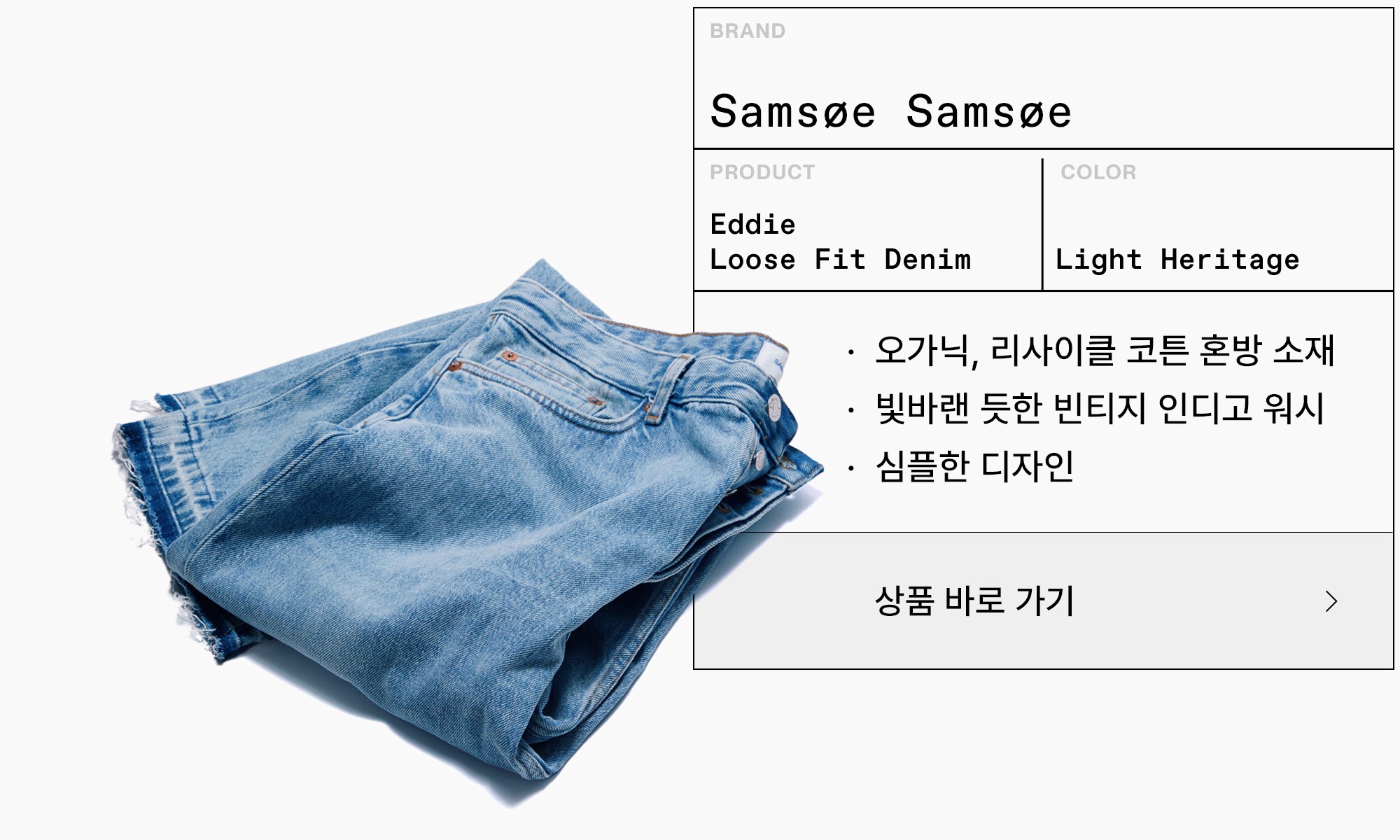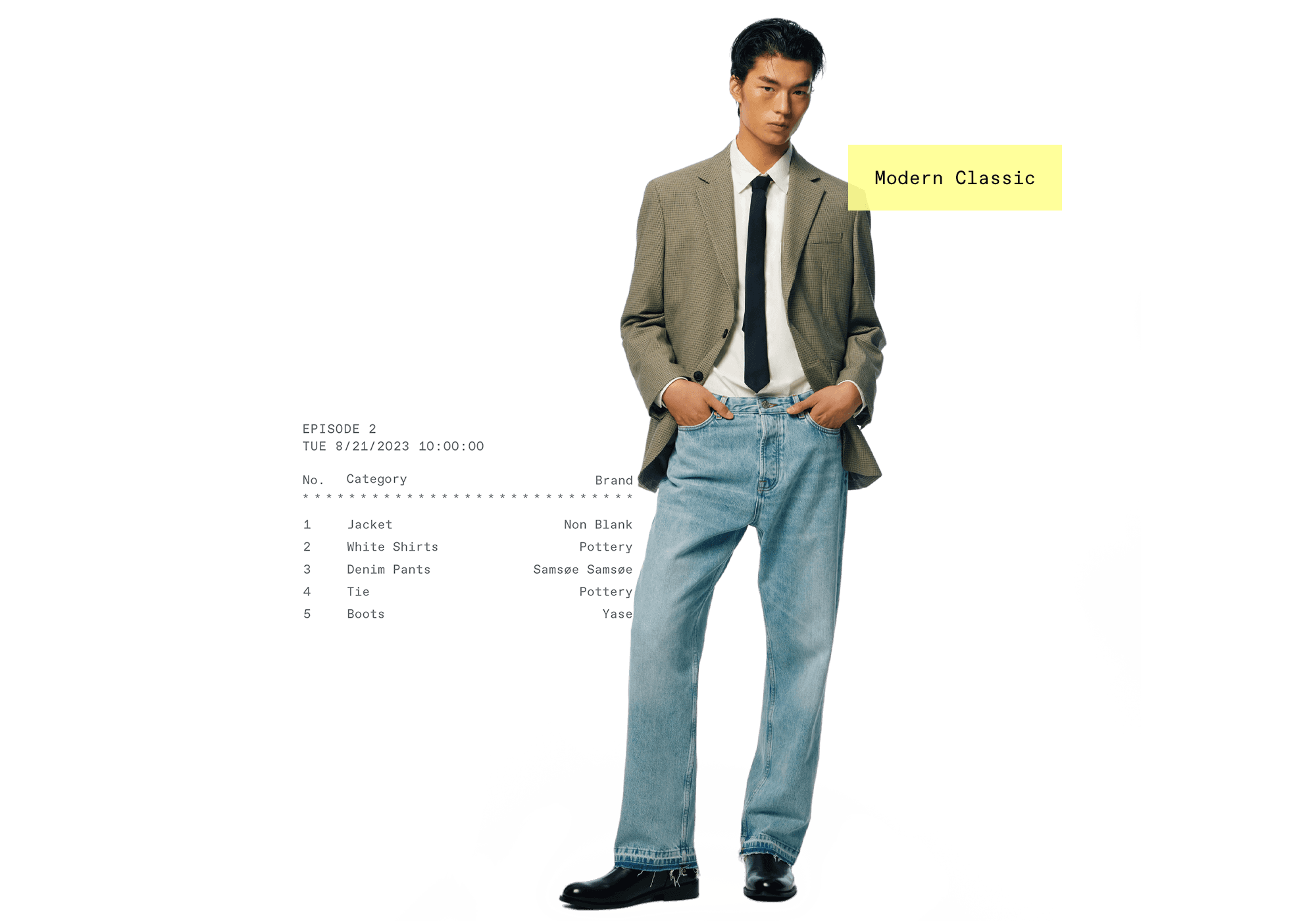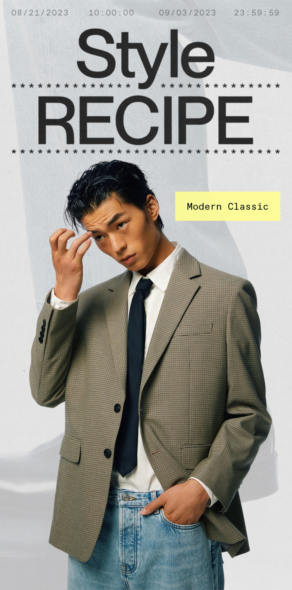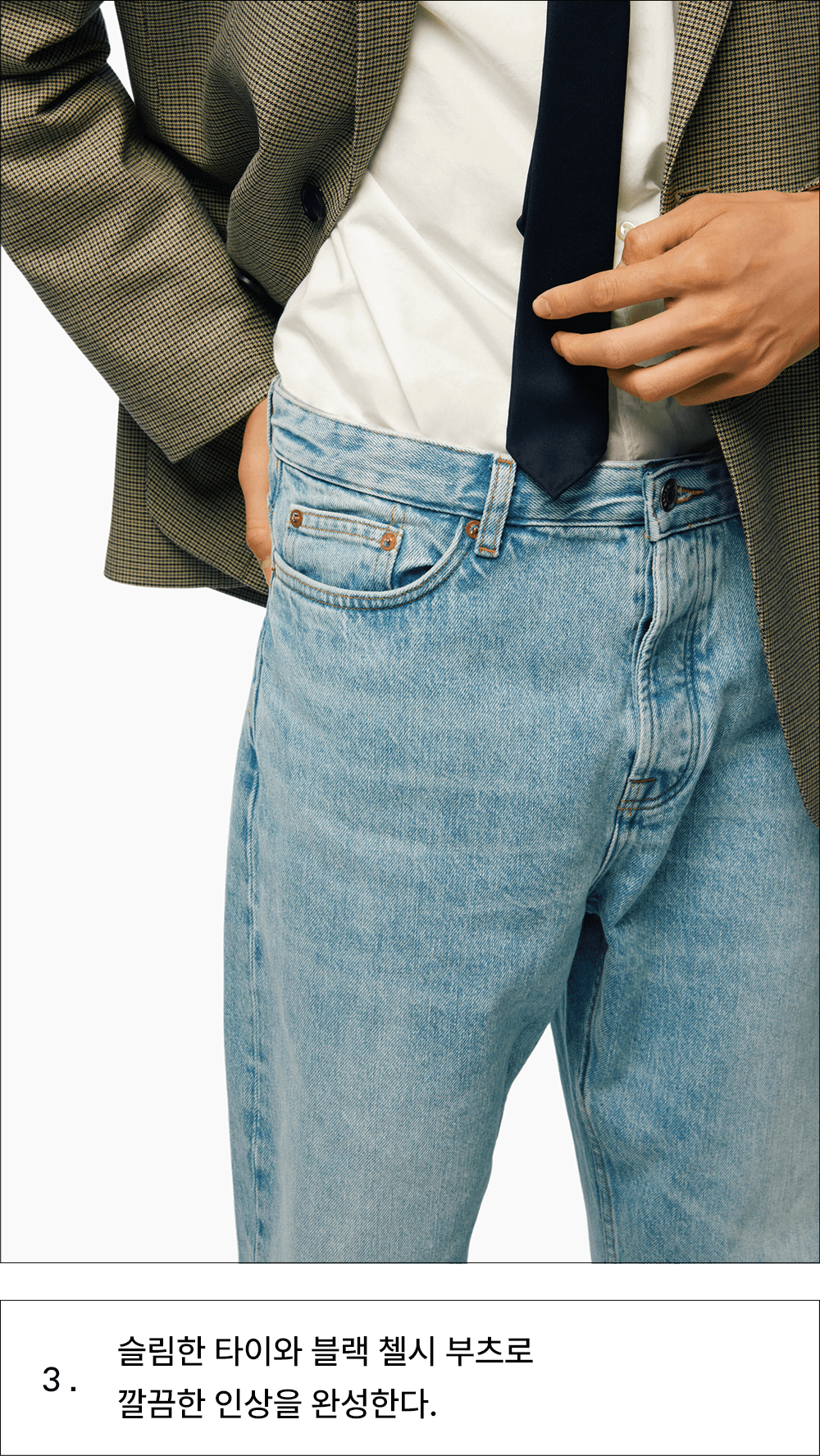 클래식한 스타일을 현대적으로 재해석한 패션을 뜻하는 '모던 클래식'. 영원불멸한 클래식 스타일에는 아름다움과 우아함이 깃들어 있습니다. 오래 입어도 질리지 않는 은은한 체크 패턴의 재킷, 화이트 셔츠, 데님 팬츠와 같은 간결한 아이템은 입는 이의 개성을 더욱 돋보이게 만들어주죠. 기교는 덜어내고 과하지 않은 담백한 스타일을 완성하고 싶다면 너무 와이드하거나 슬림한 핏보다는 스트레이트 핏의 데님 팬츠를 선택해보세요. 세련된 도시적인 무드를 자아낼 수 있을 거예요.