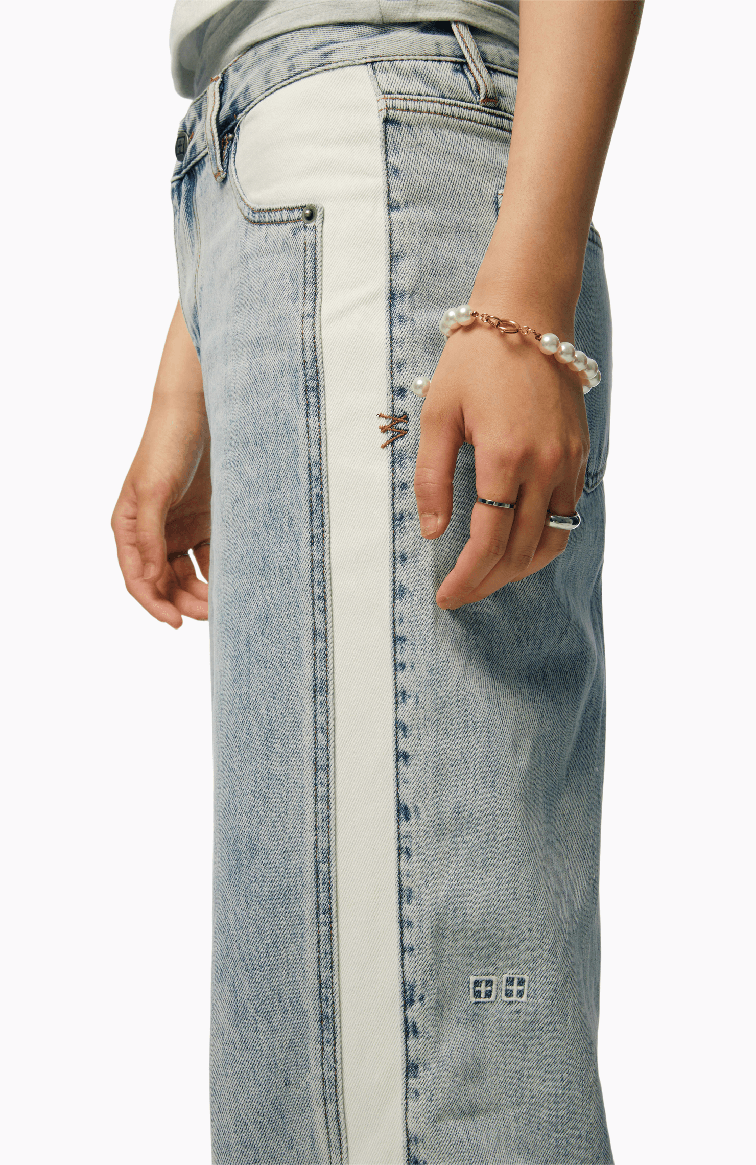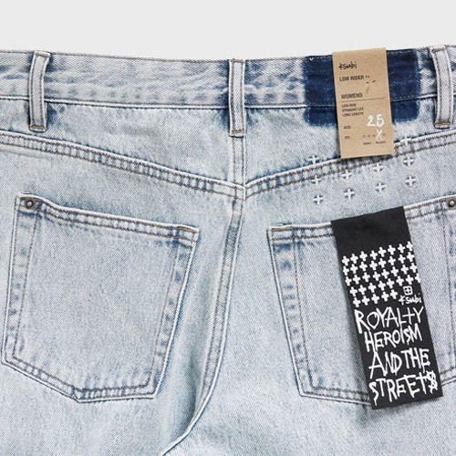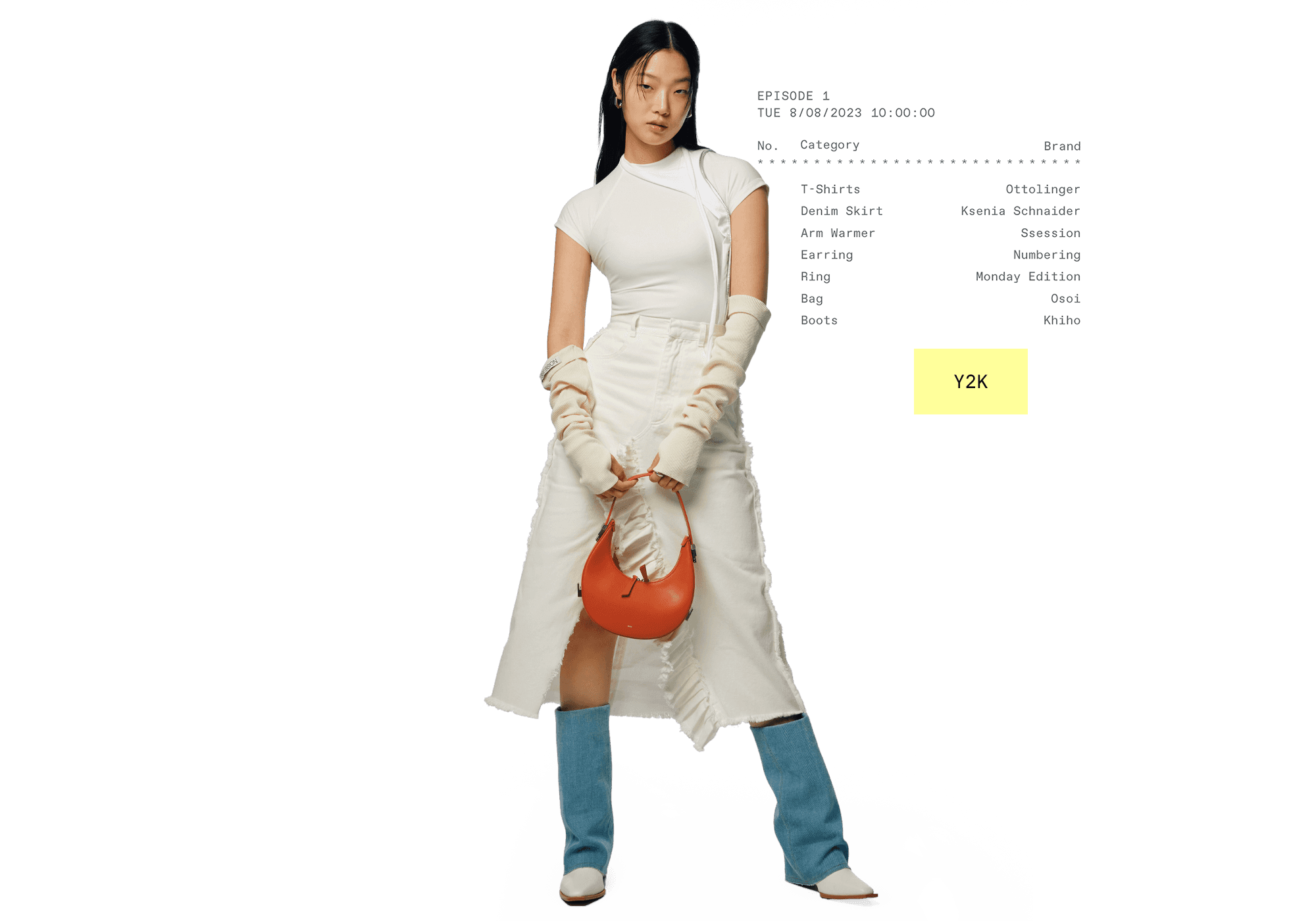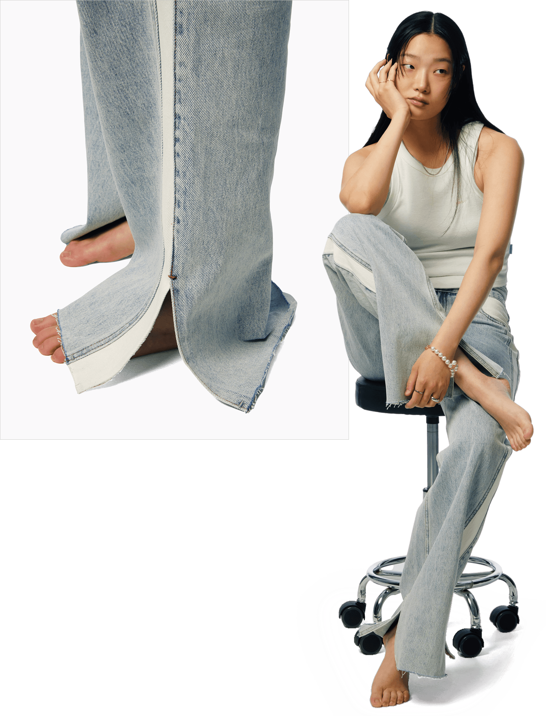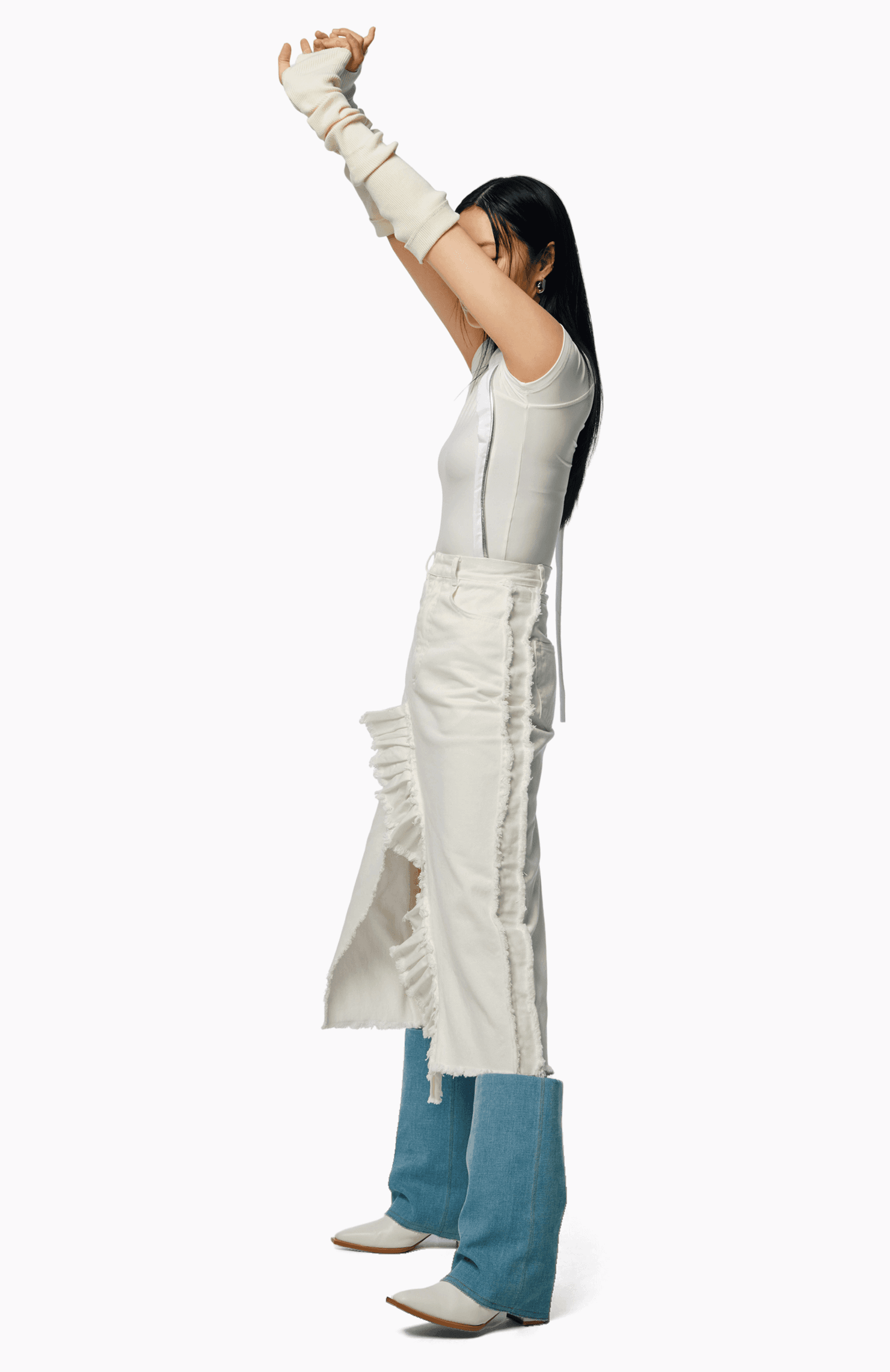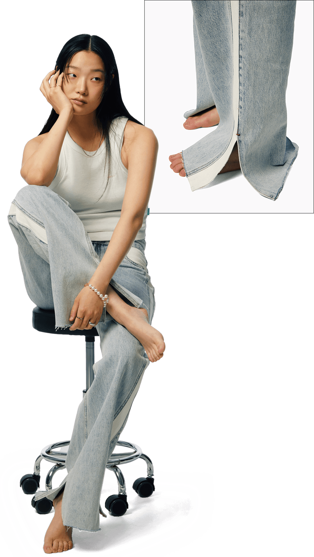 Y2K 트렌드는 여전히 유효합니다. 1990년대 유행했던 찢어진 데님은 Y2K 스타일을 연출하고 싶을 때 유용한 아이템! 깊은 슬릿에 러플 장식의 미디 데님 스커트와 밑단 옆선에 슬릿 디테일의 와이드 데님 팬츠는 하나만으로도 존재감이 강렬해요. 상의는 최대한 심플한 티셔츠를 매치하는 것이 관건입니다. 첫 번째 룩처럼 소재를 다르게 매치하면 컬러는 심플해도 더욱 스타일리시한 룩을 완성할 수 있어요. 화이트, 그레이의 기본 탱크톱을 레이어링한 두번째 스타일링도 참고해보세요.